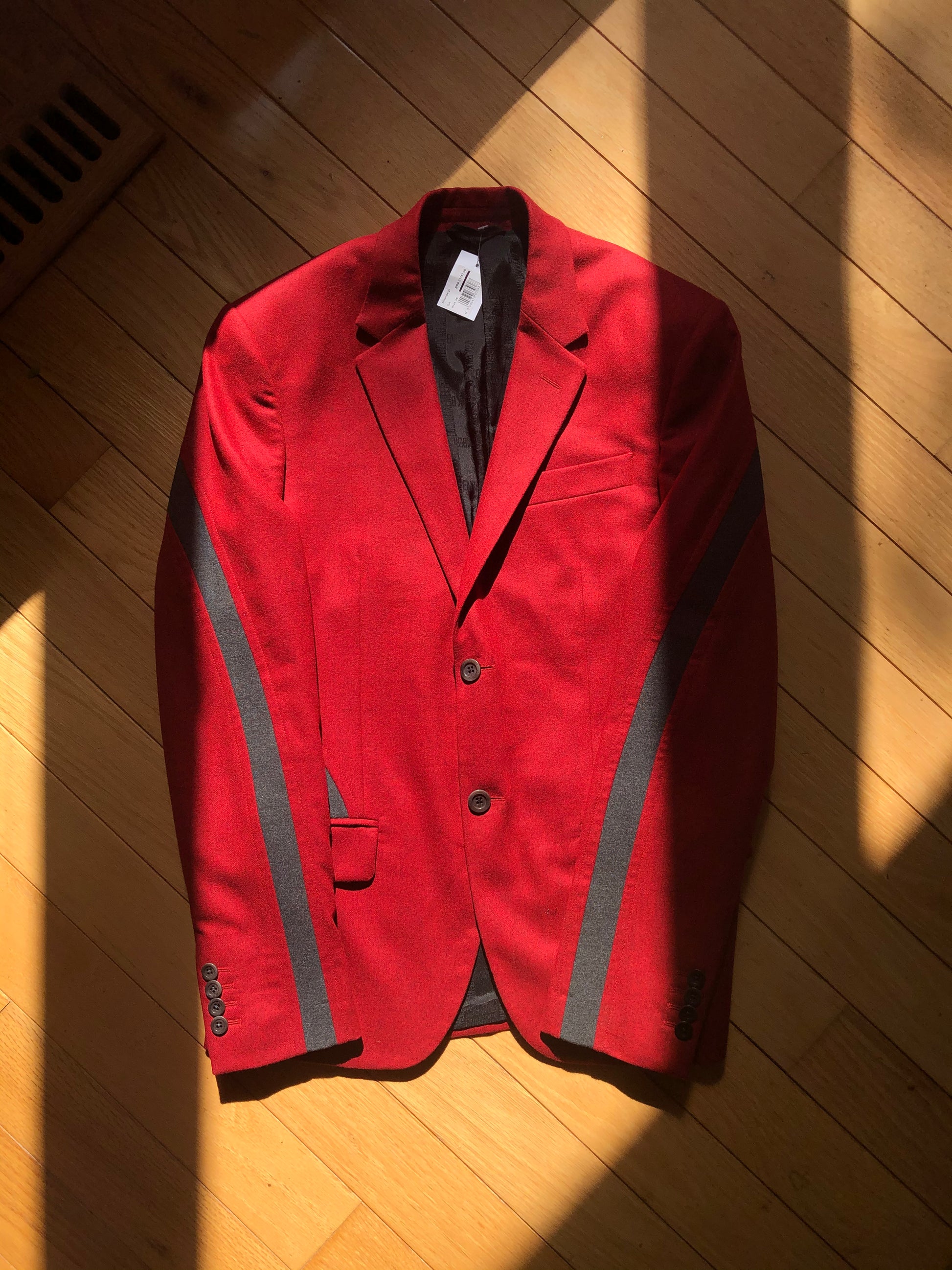 For sale is a beautiful brand new with tags Dirk Bikkembergs wool blazer. As time passes, The Royal Academy of Fine Arts continues to produce some of fashion’s biggest success stories year after year. However, the graduating class of 1982 was something special, even for such a prestigious school. The graduating class of 1981-1982 birthed the iconic Antwerp Six. This group of extremely talented designers went on to create amazing work, and names such as Ann Demeulemeester, and Dries Van Noten, have established a cult following of die-hard consumers. However, Bikkembergs’s work remains largely in the shadows, and has only recently started to gain traction.