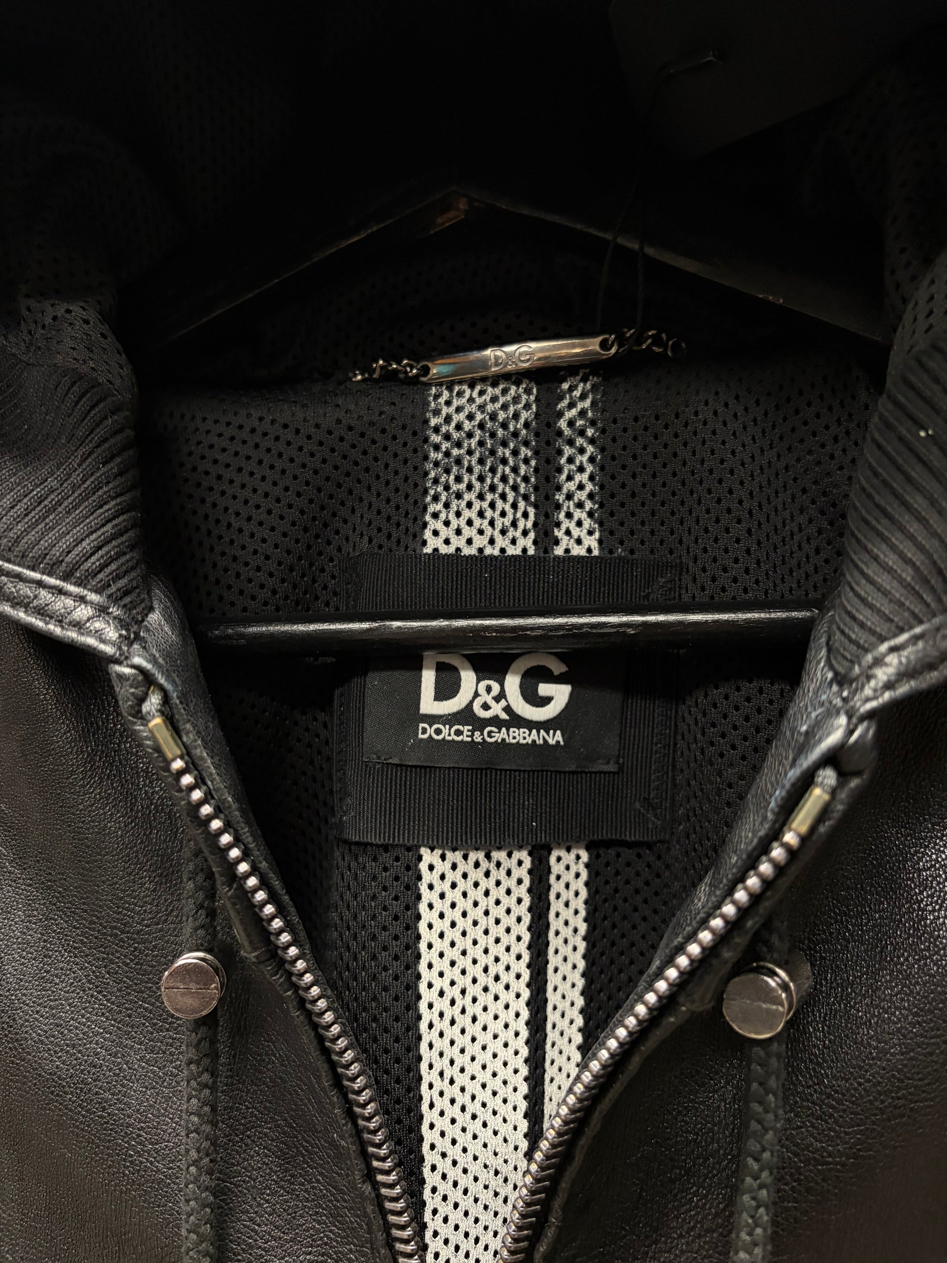 For sale is a 2000s Vintage Dolce & Gabbana Black Lambskin Leather Zip-Up Hoodie