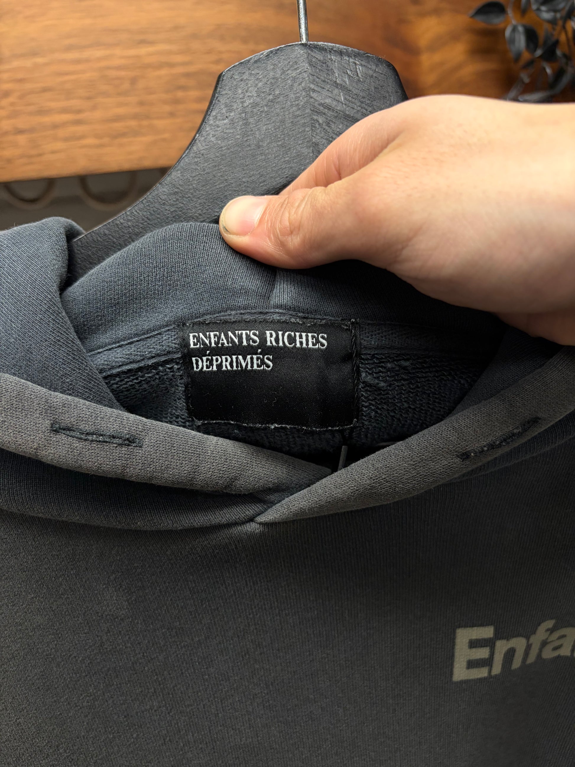 (FOR SALE) an Enfants Riches Deprimes ‘Ticket to Death’ Faded Black French Terry Cotton Hoodie
