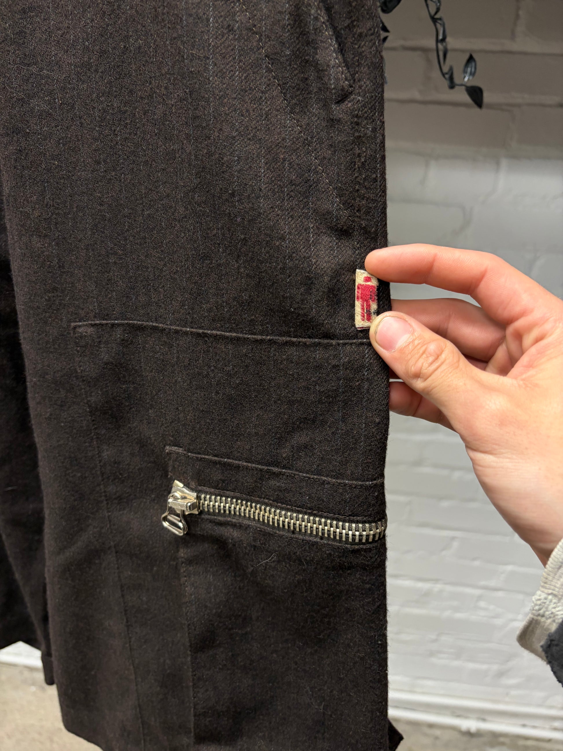 Vintage Jean Paul Gaultier Brown Pinstripe ‘Exposed Zip’ Shorts
