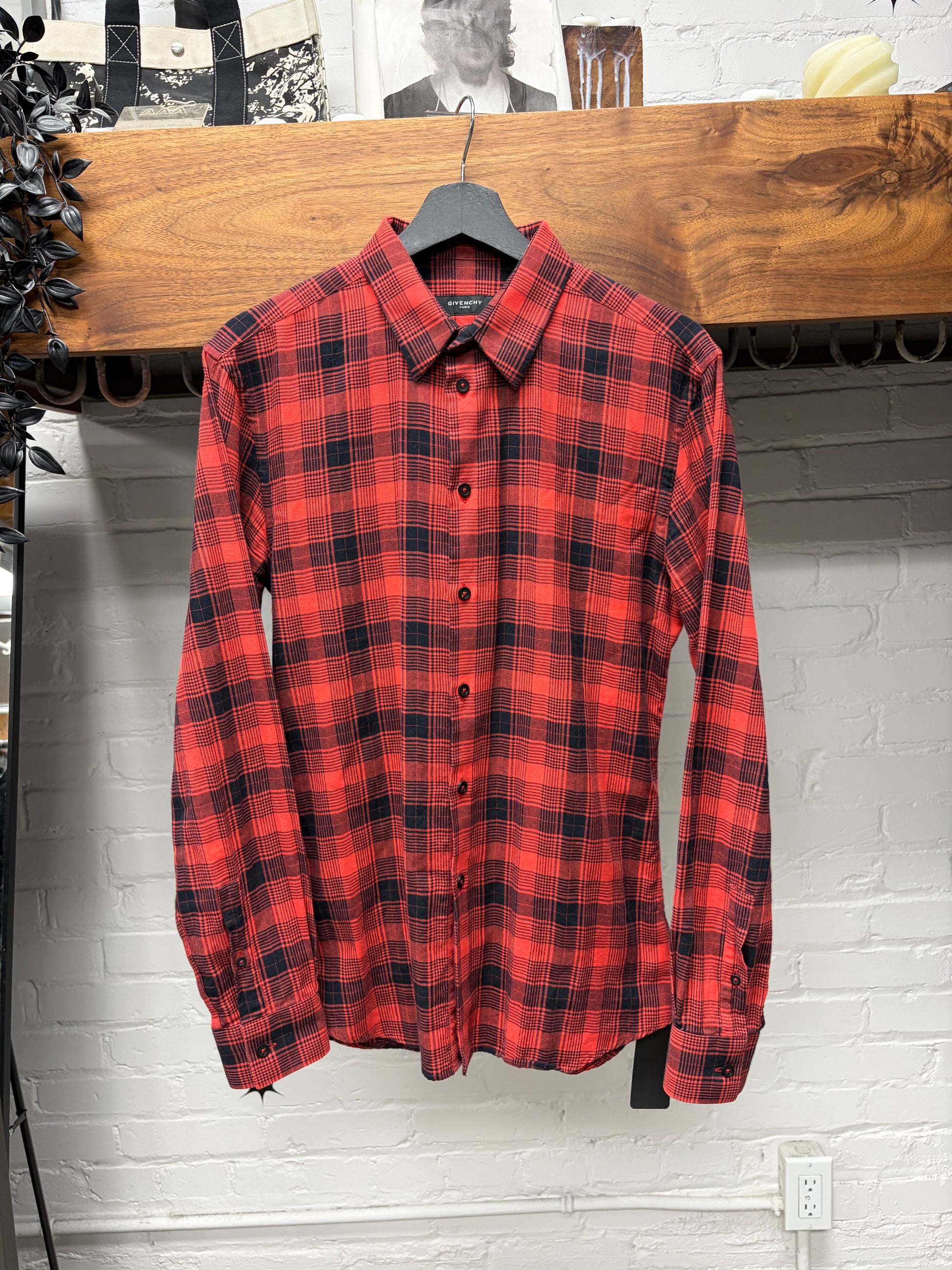 For sale is a Givenchy Tartan Plaid Black/Red Flannel Shirt