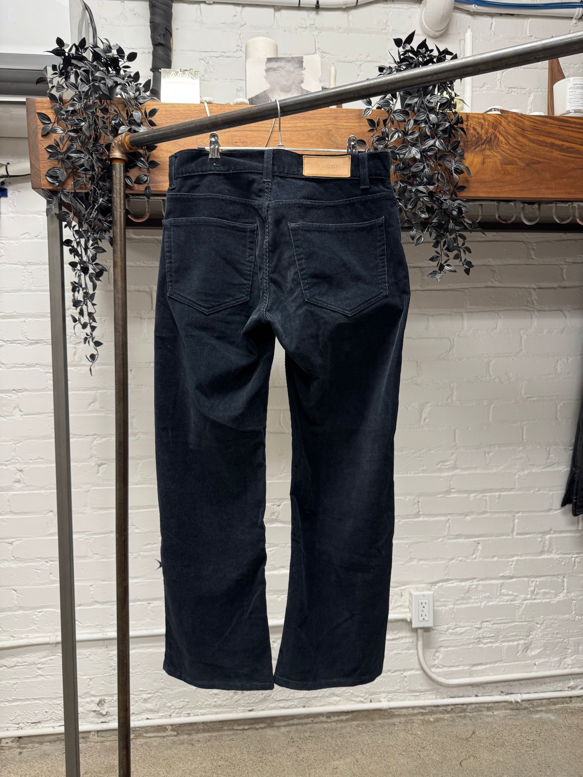 For sale is a pair of Mid 2000s Gucci Faded Blue Corduroy Flared Leg Pants