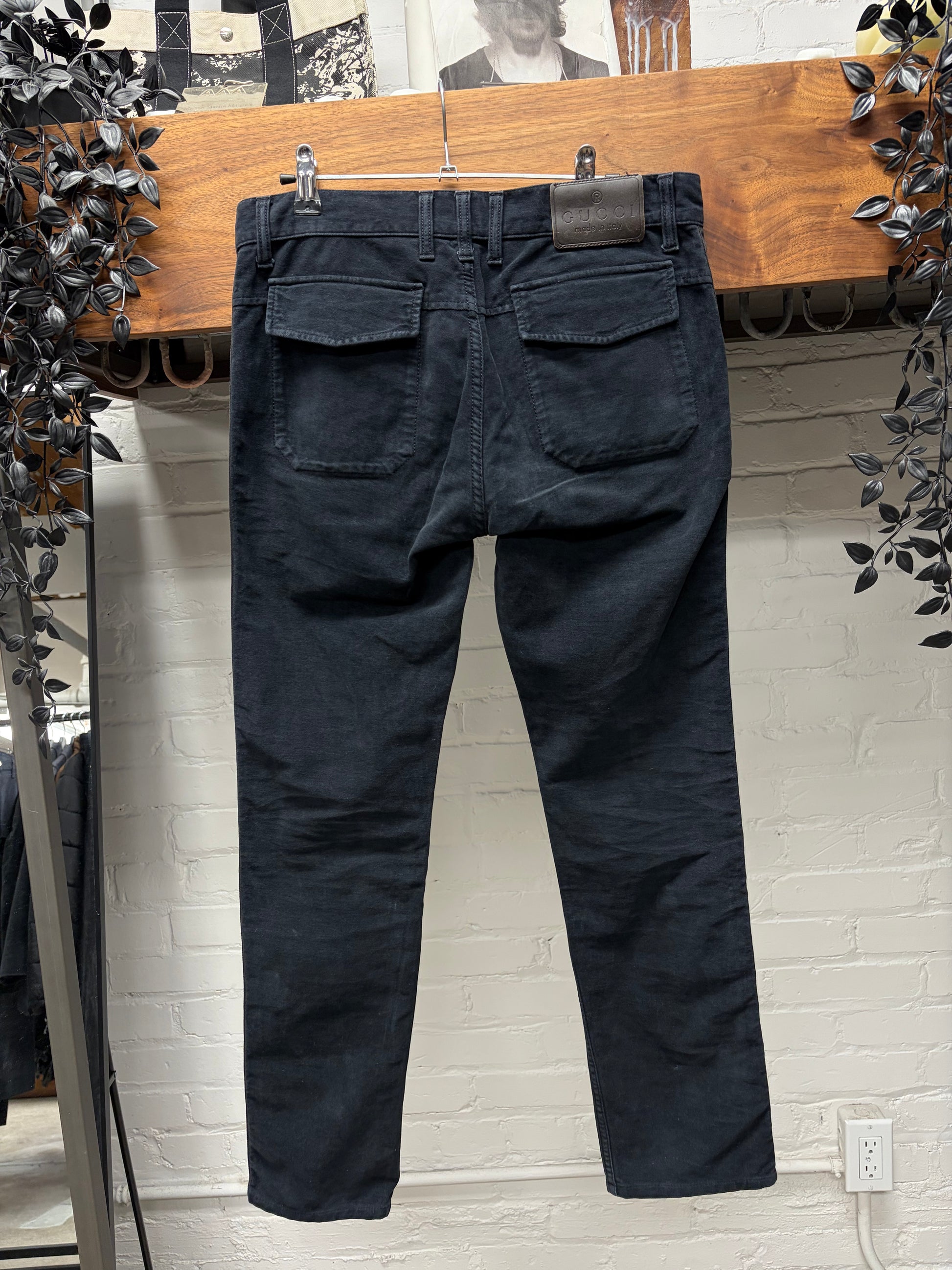 Vintage Gucci Brown Side Stripe Raw Blue Skinny Jeans
