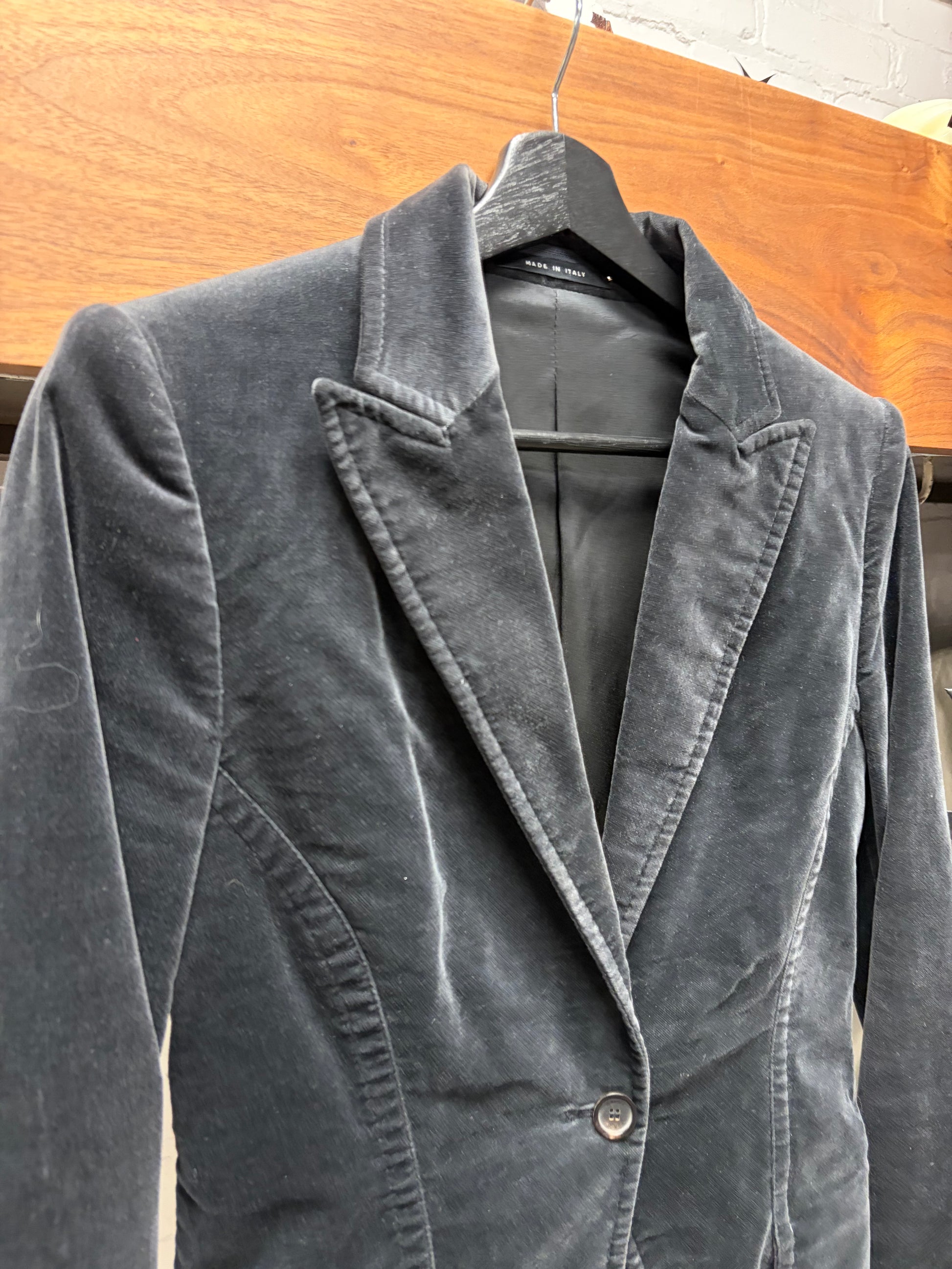 Vintage Gucci Tom Ford Black Velour Blazer with Sharp Lapel and Padded Shoulders