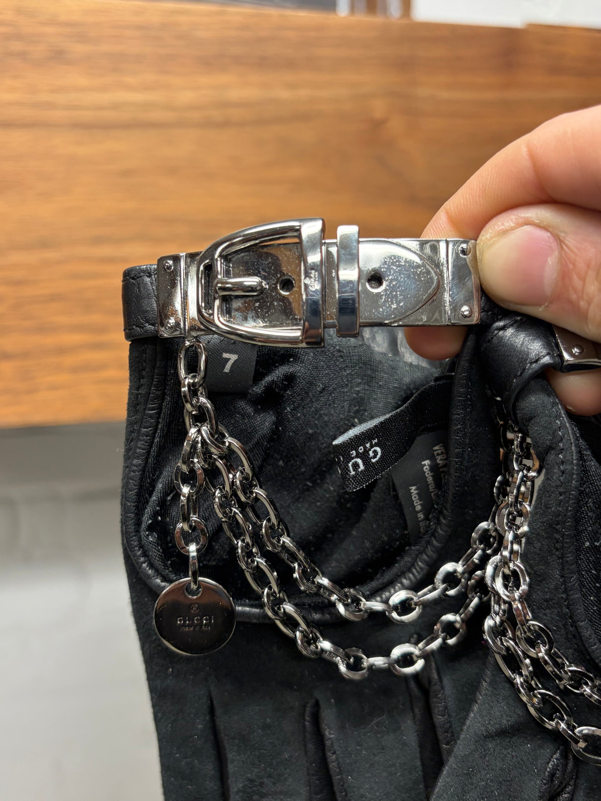 (FOR SALE) A pair of 2005 Gucci by Frida Giannini ‘Chain Wristlet’ Black Suede Driver’s Gloves