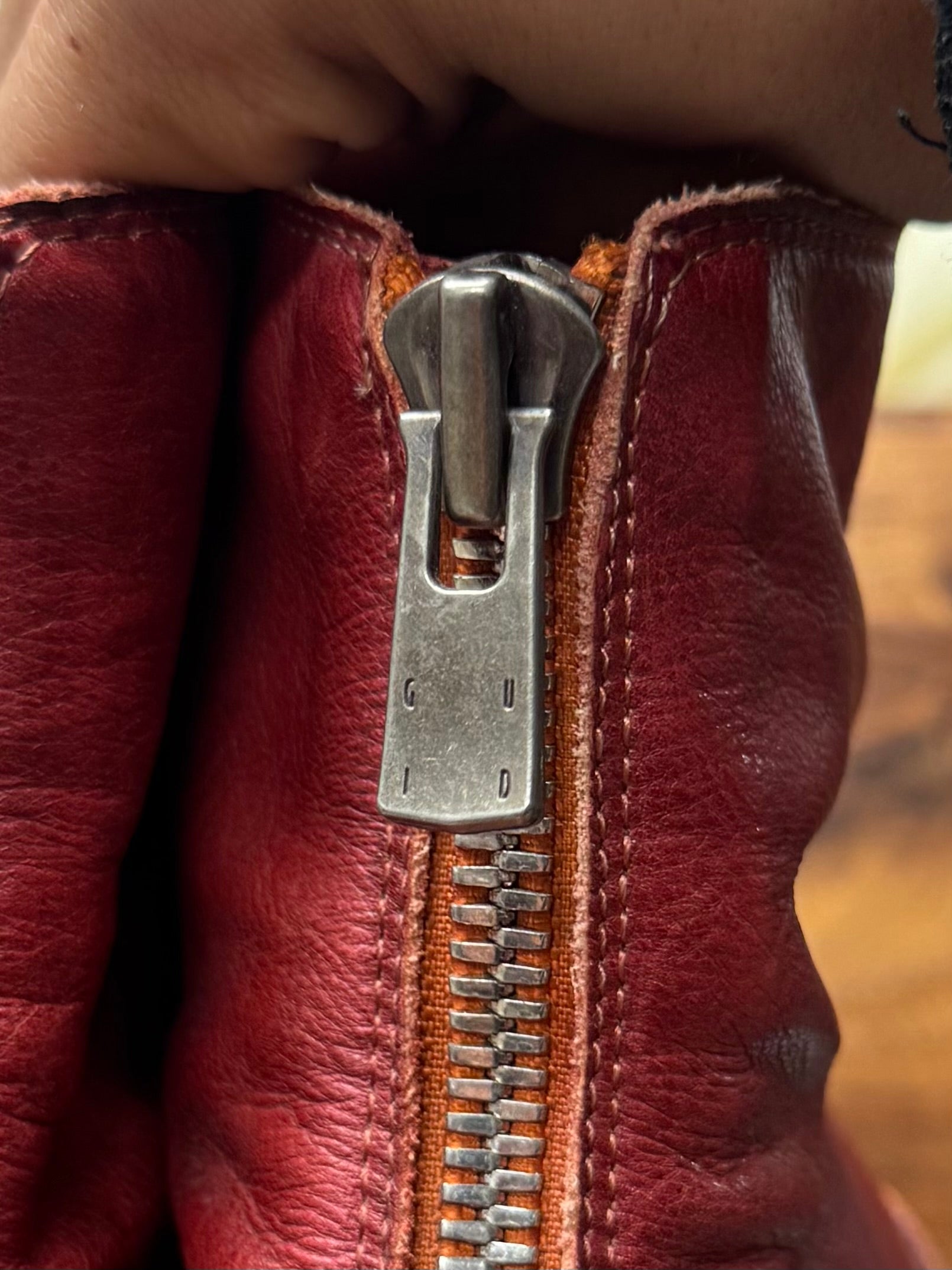 -classic PL1 Guidi front zip model, complete with original hardware and Guidi branded silver zipper pulls.