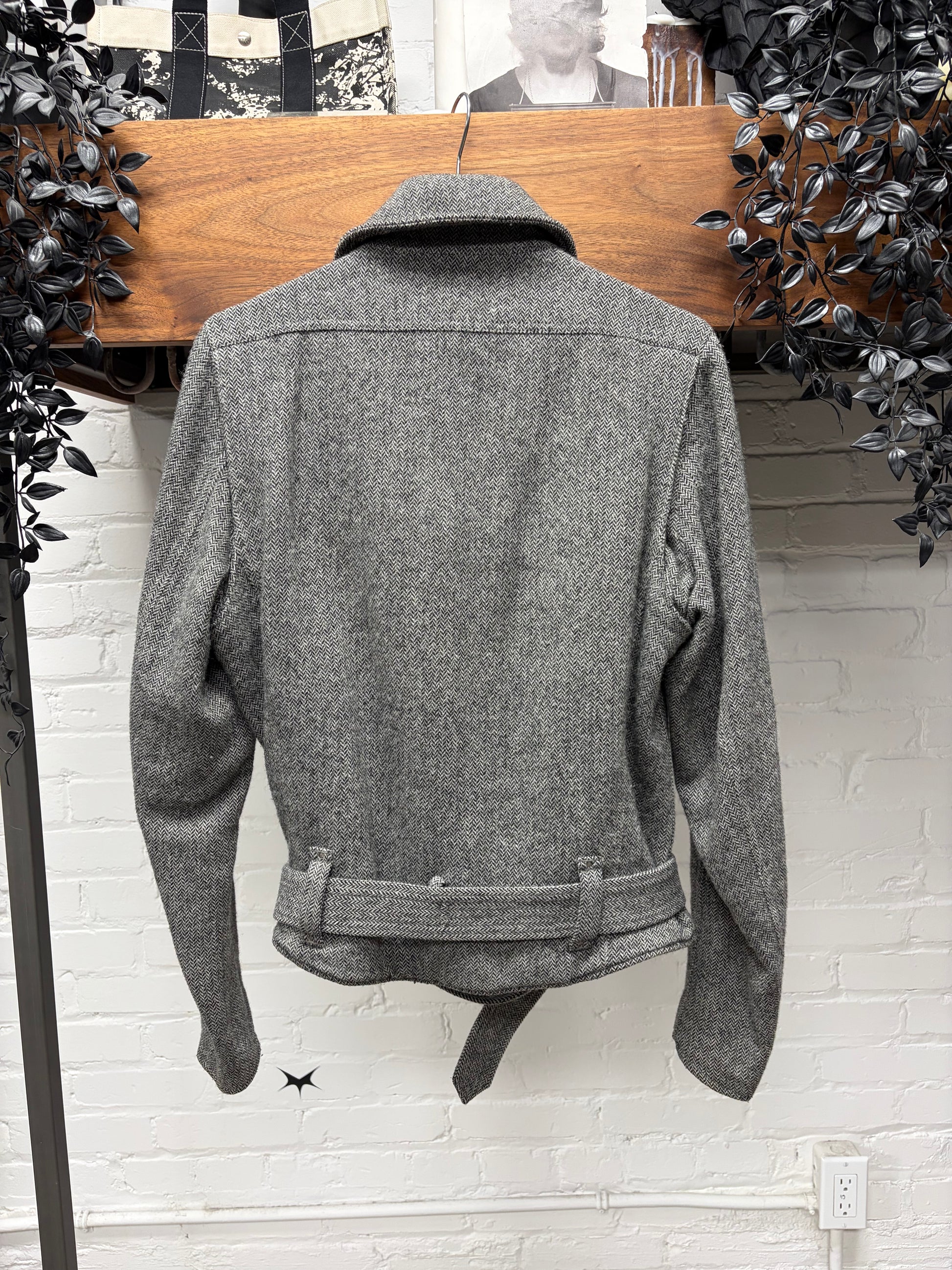 2000s Helmut Lang ‘Herringbone’ Wool Biker Coat with Belted Closure