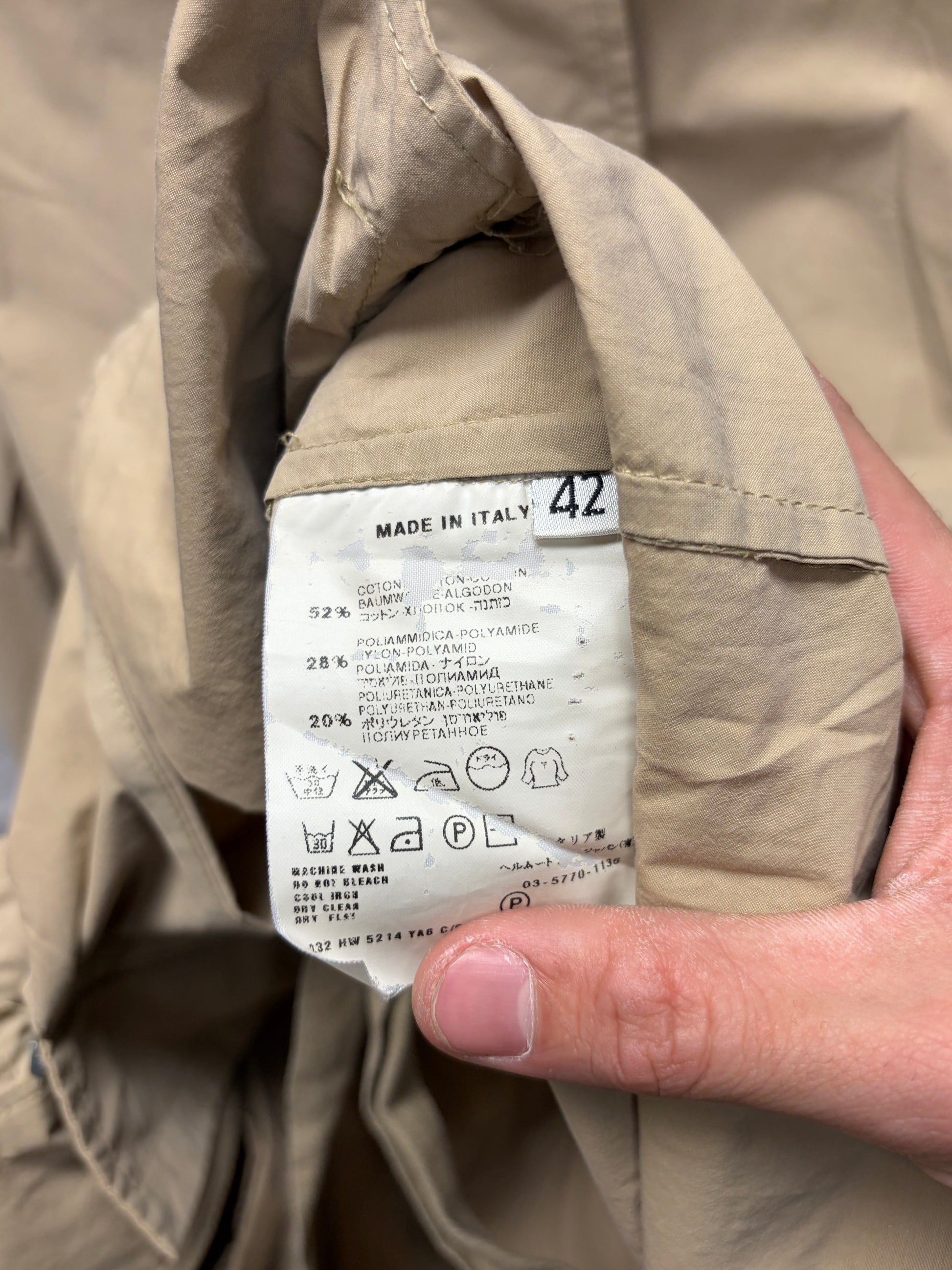 -signature Helmut Lang ‘backpack strap’ on the interior liner of the jacket allowing it to be worn off the shoulders.