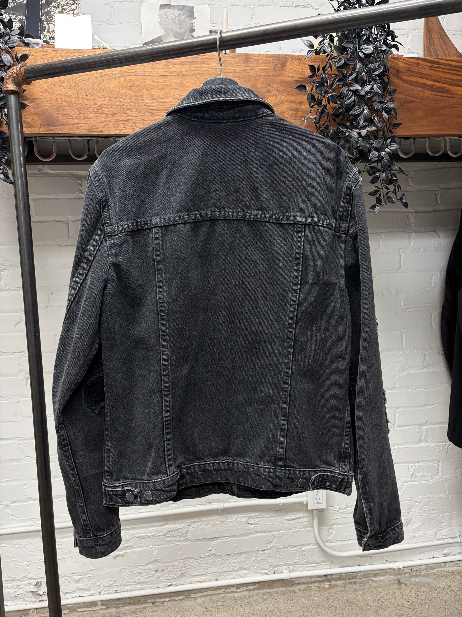 Helmut Lang Patch Repaired Black Distressed Denim Trucker Jacket