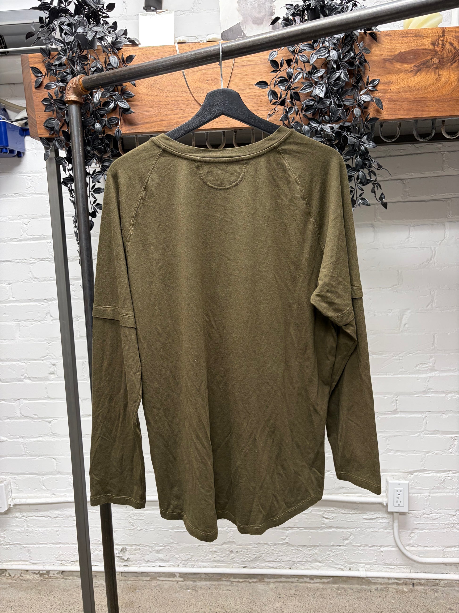 For sale is a Helmut Lang Double Layered Military Green Long Sleeve Shirt