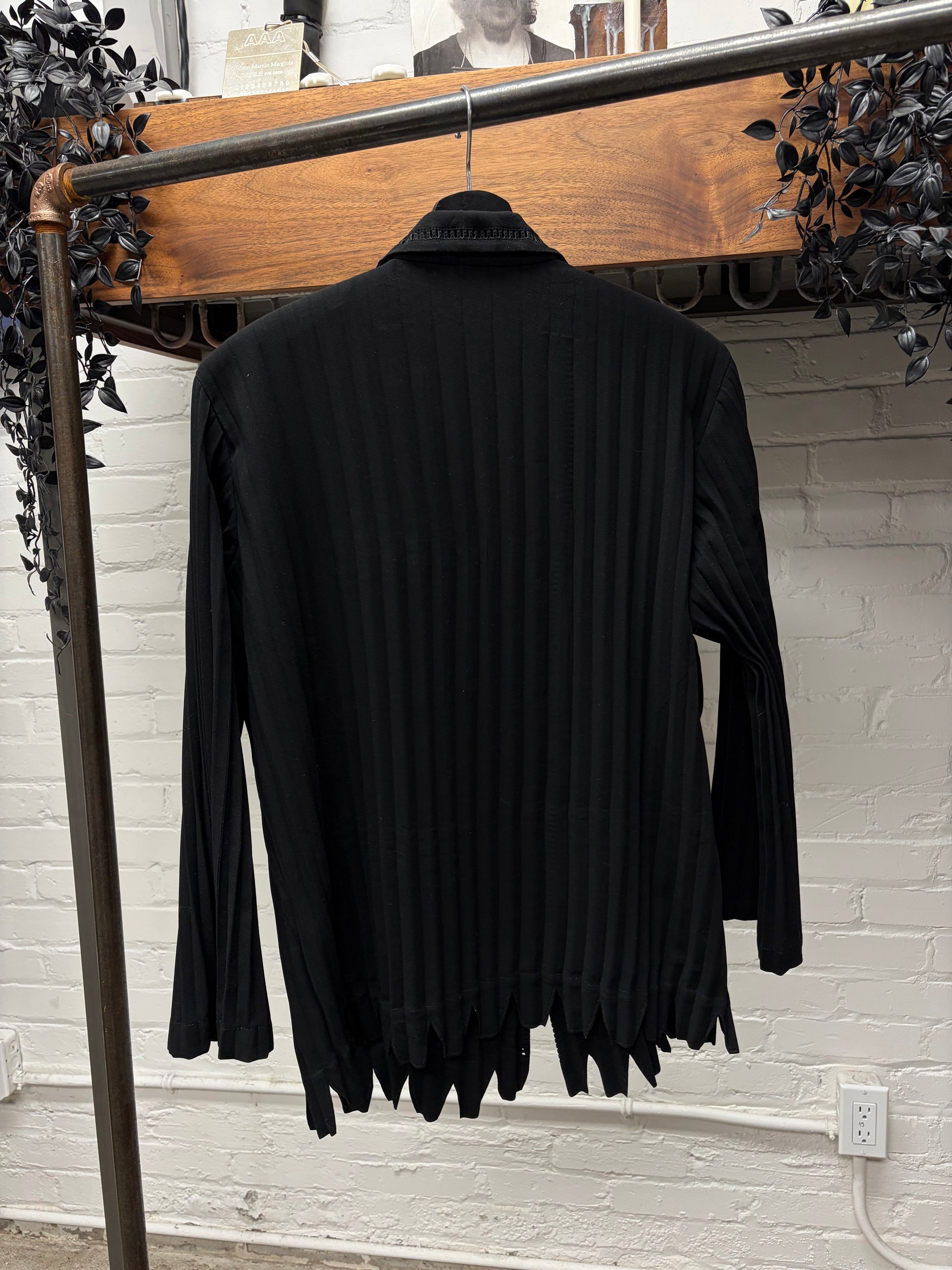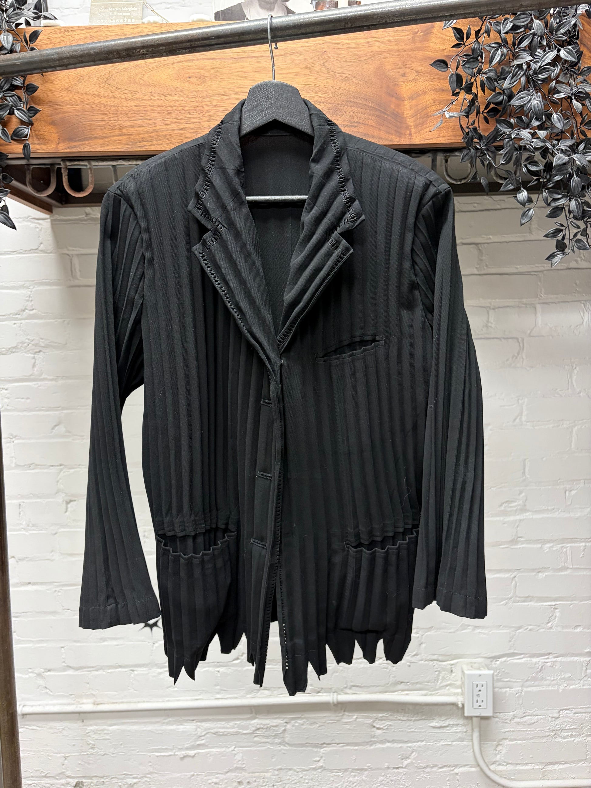 Issey Miyake Pleated Black Slim Cut Button Snap Blazer