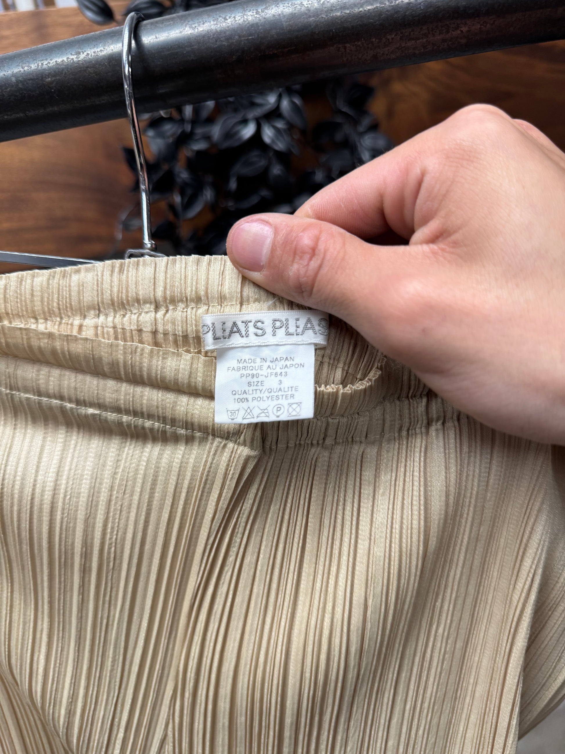 -Issey Miyake Pleats Please Cream Wide Leg Pants