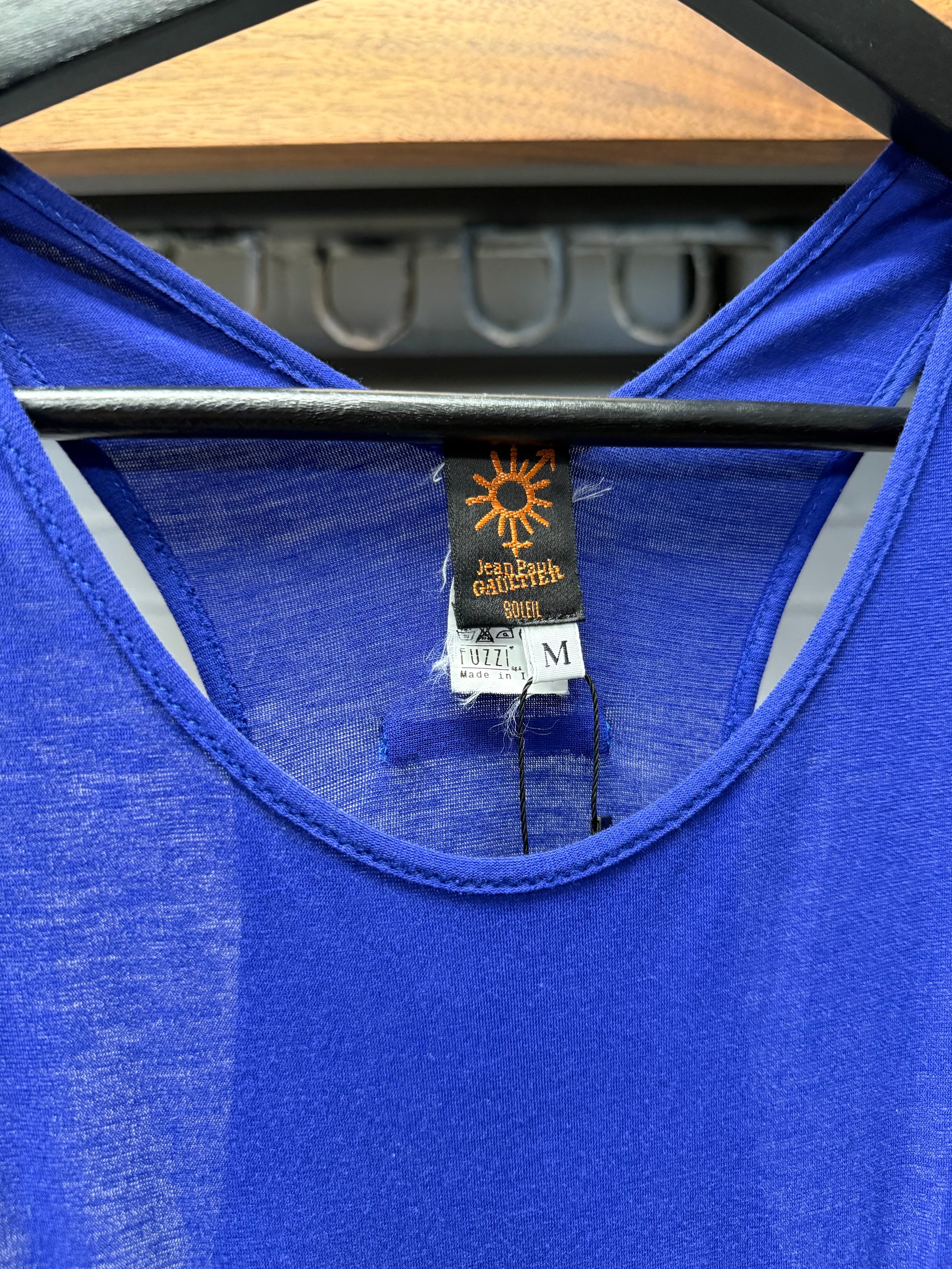 For sale is a Vintage Jean Paul Gaultier ‘Soleil’ Ruched Blue Drawstring Dress