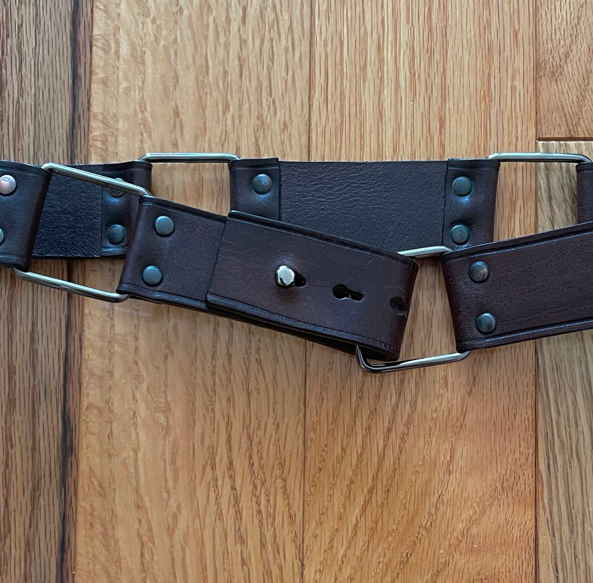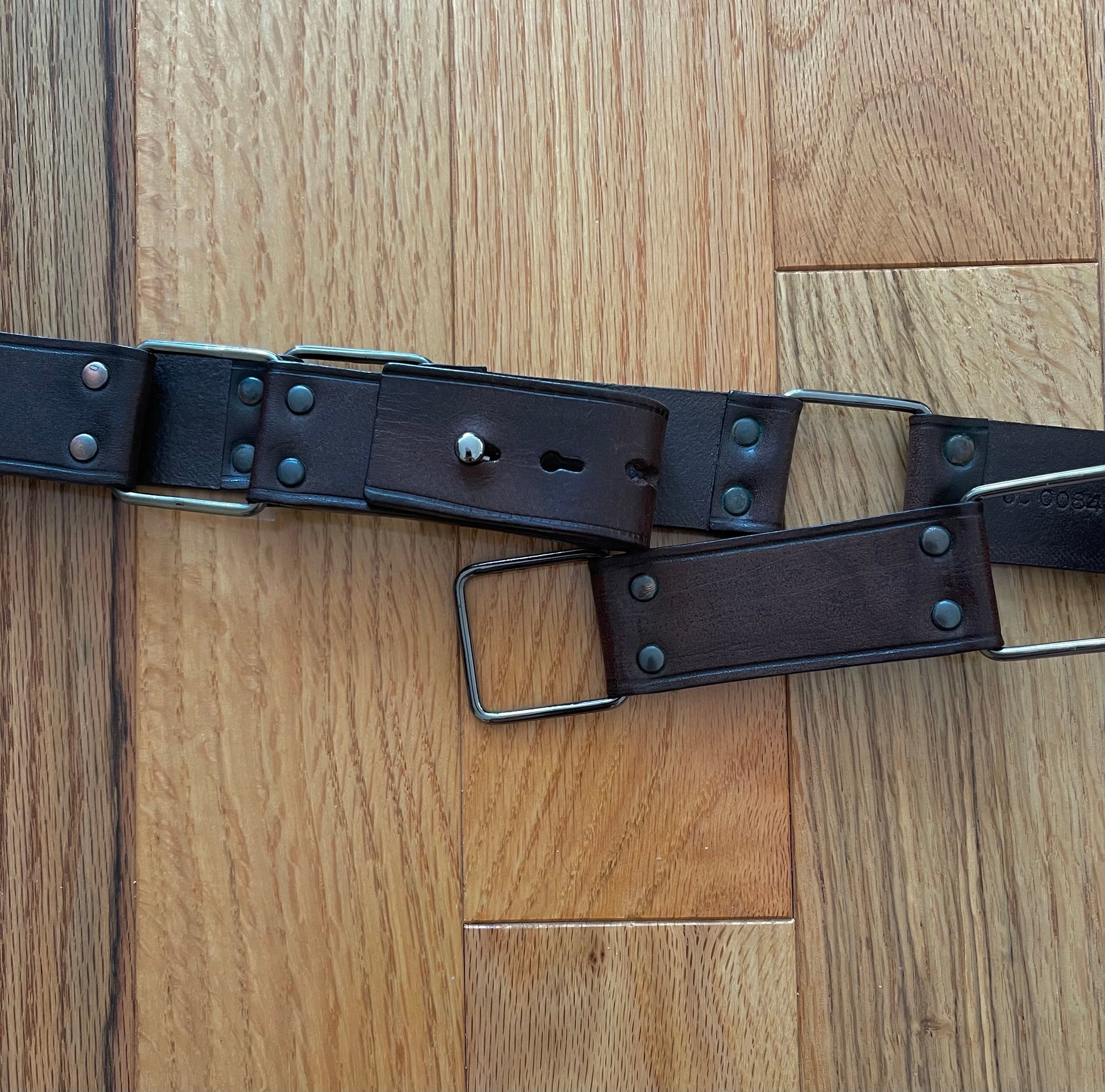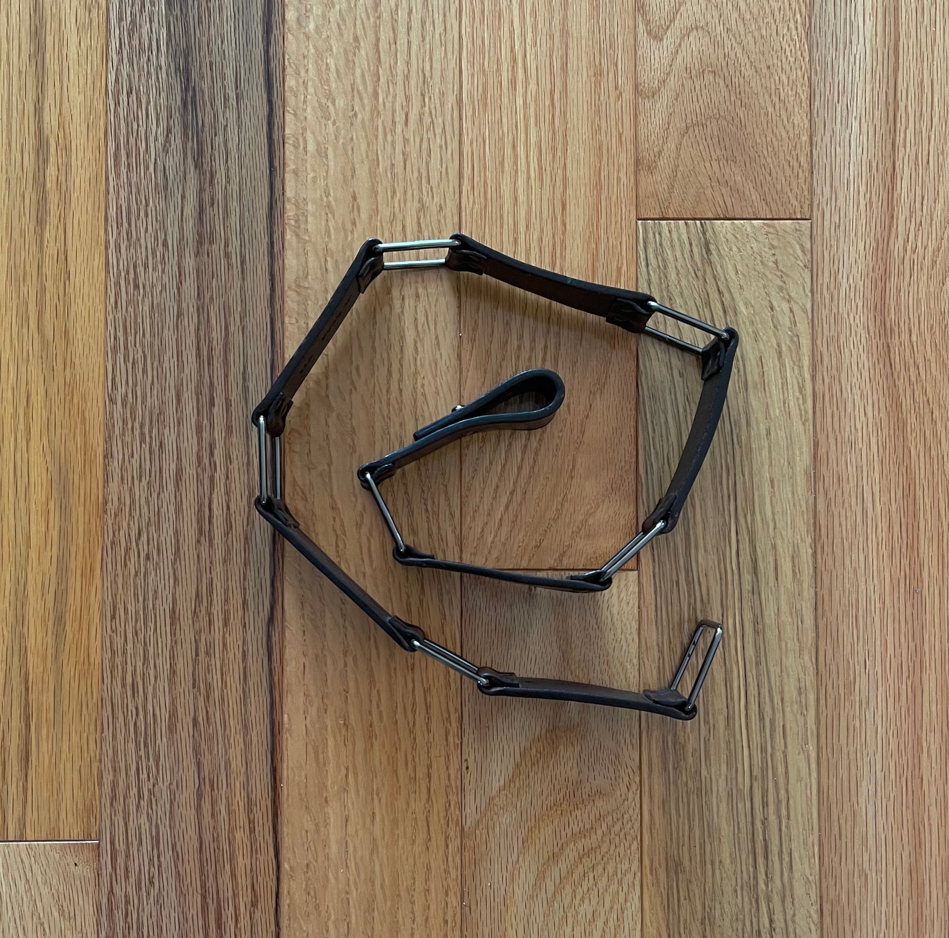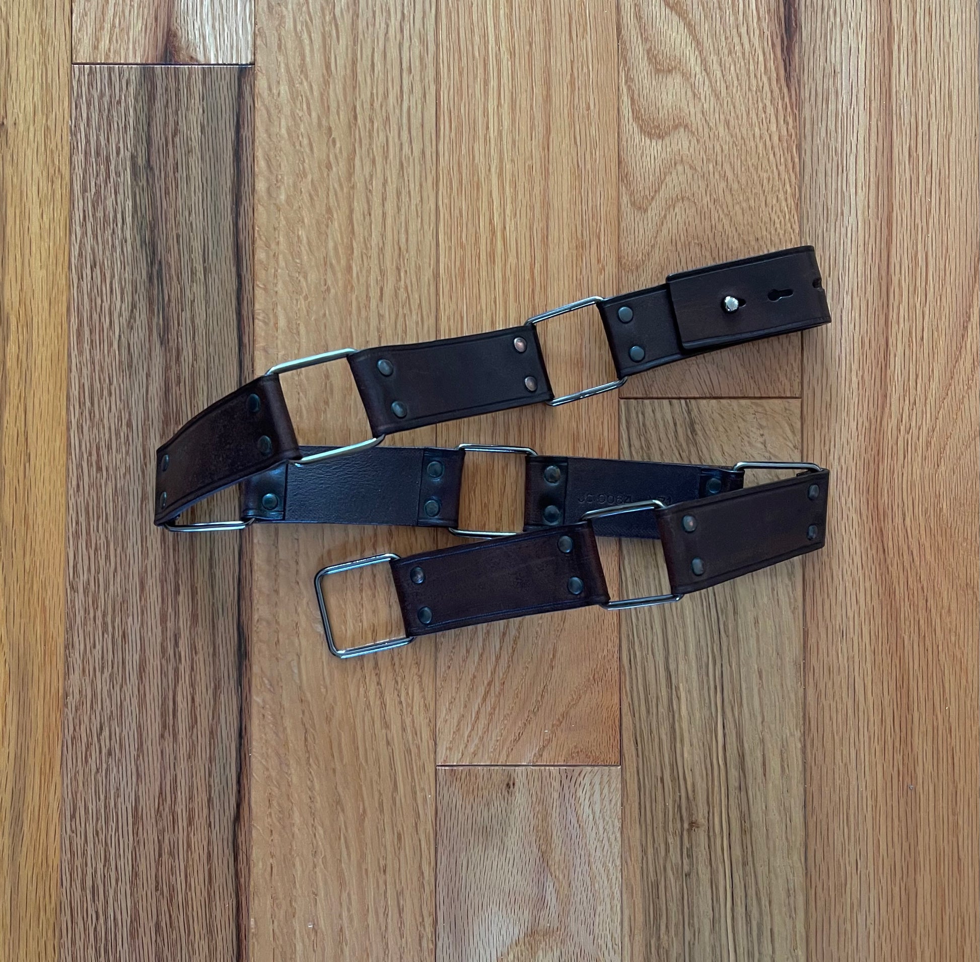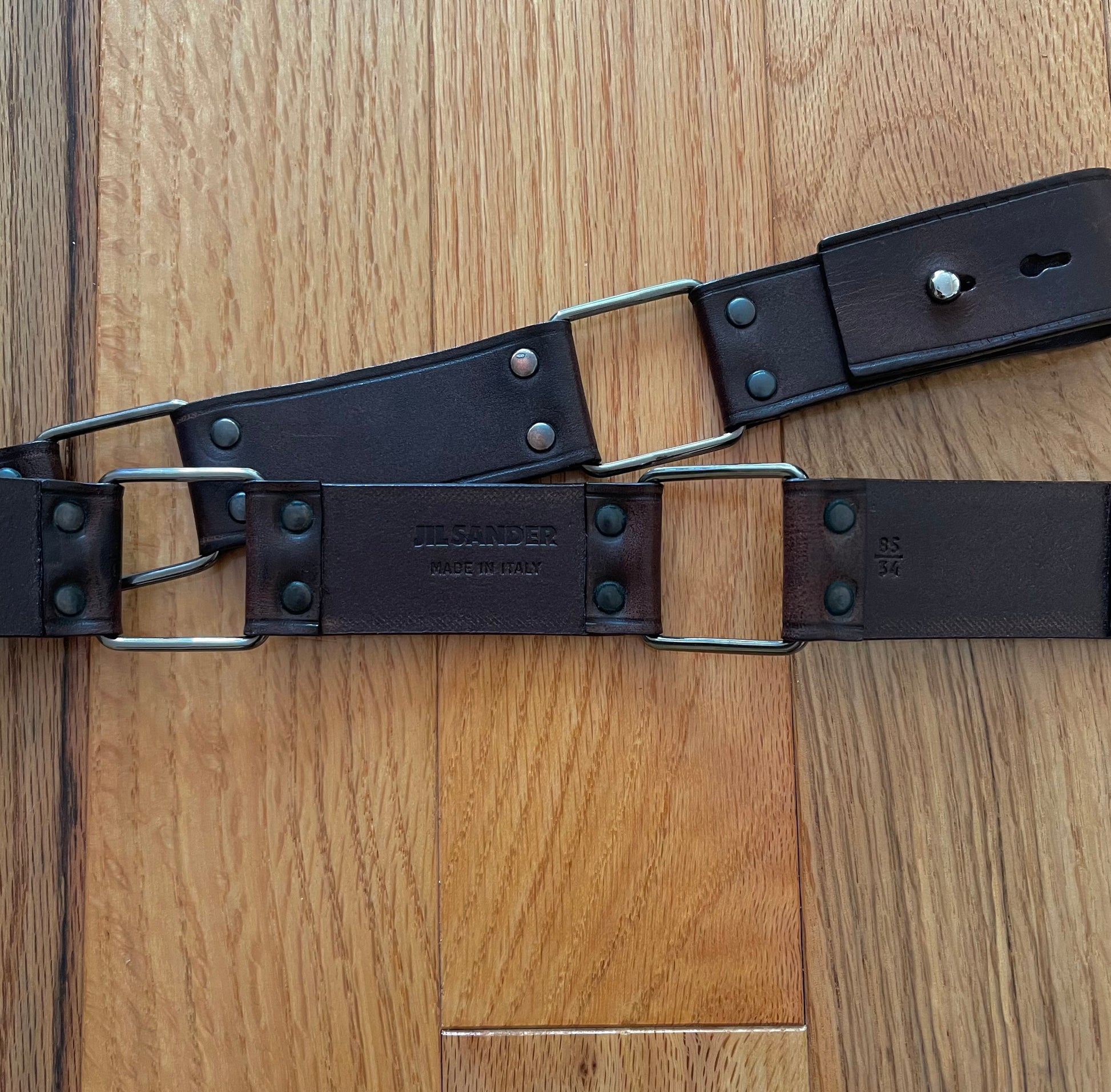 For sale is a Jil Sander Geometric Silver ‘Bar’ Brown Calfskin Leather Belt. Suitable for size 28-32 waist, this belt features silver bars that separate each brown leather strip, forming the band of this unique calfskin belt. In great overall condition with minimal wear, here is the opportunity to purchase a standout staple belt from Jil Sander.