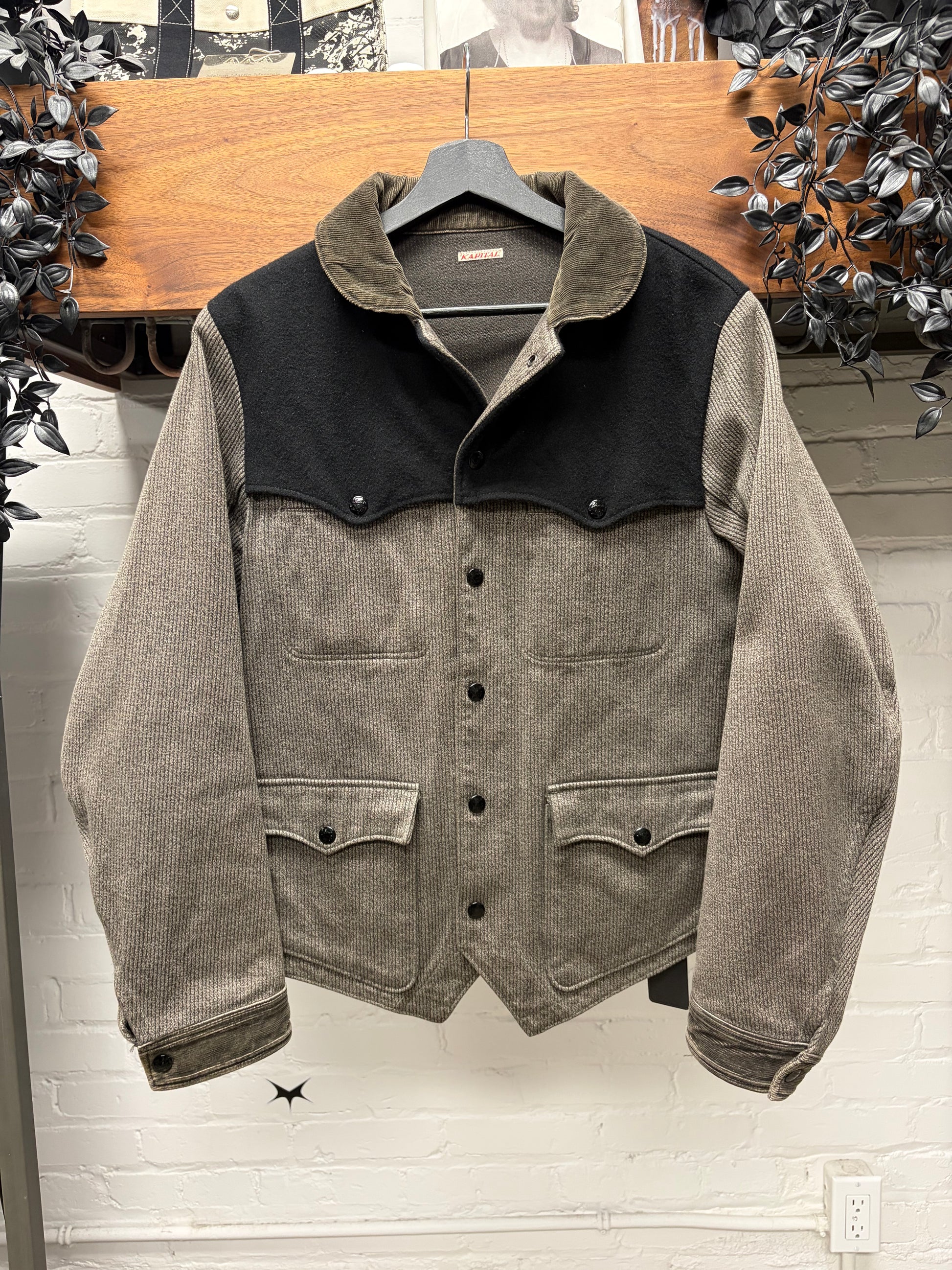Kapital Brown Wool & Corduroy Western Button Snap Trucker Jacket