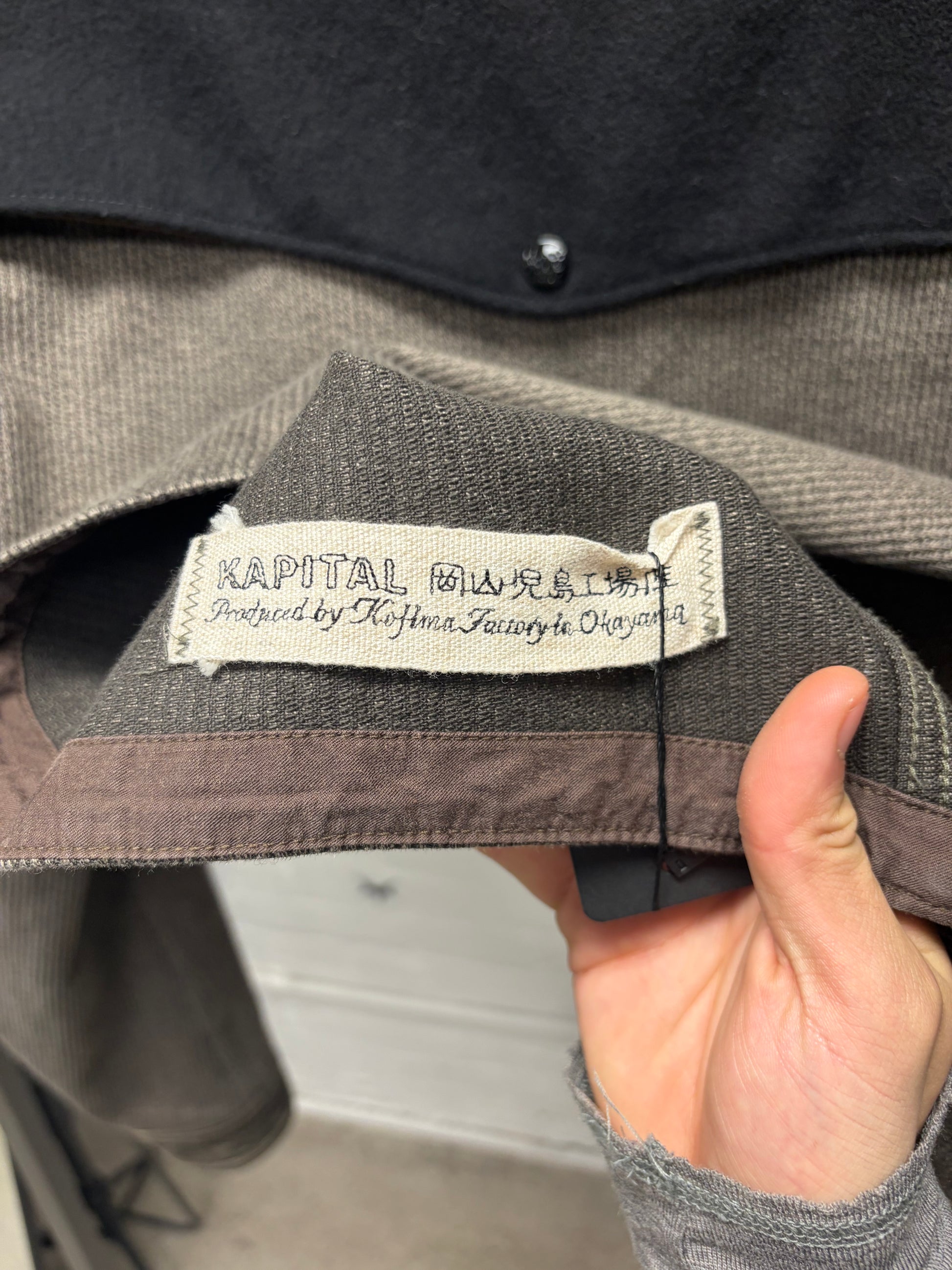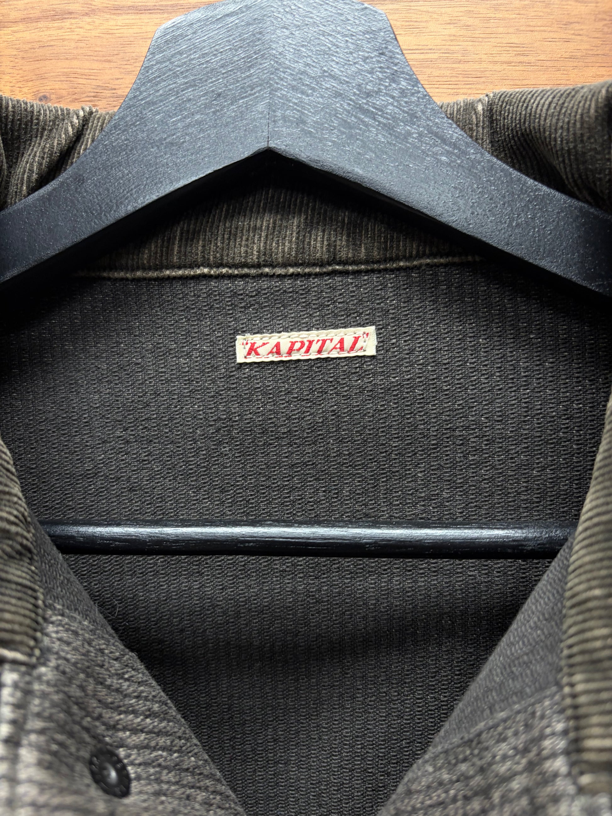 For sale is a Kapital Brown Wool & Corduroy Western Button Snap Trucker Jacket