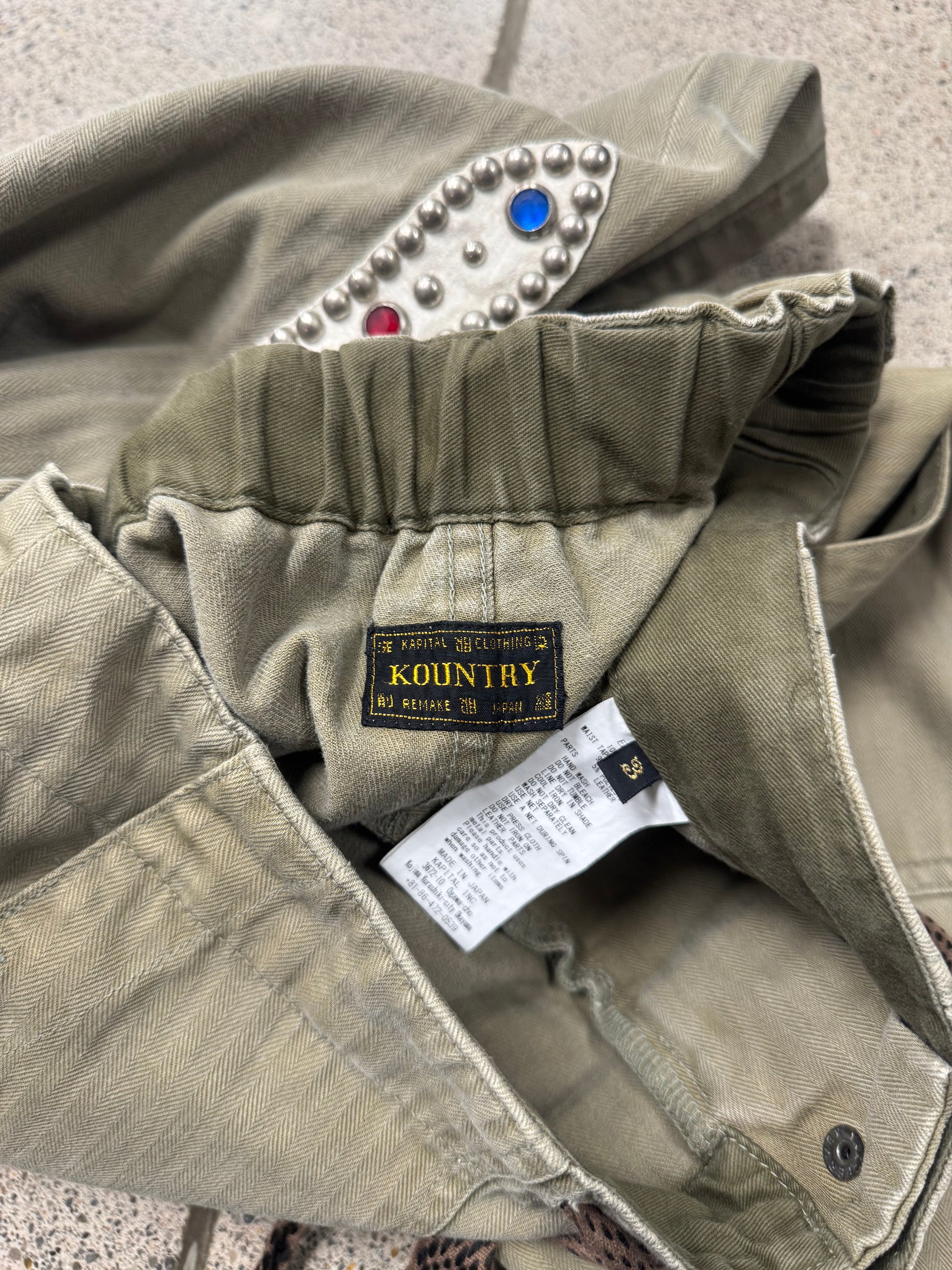 For sale is a pair of Kapital ‘Gemstone’ Studded Hickory Stripe Lounge Pants
