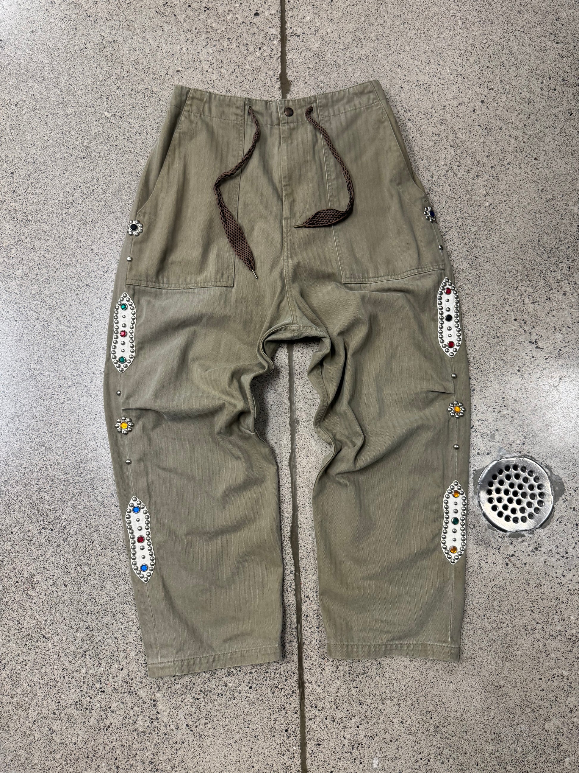 Kapital ‘Gemstone’ Studded Hickory Stripe Lounge Pants