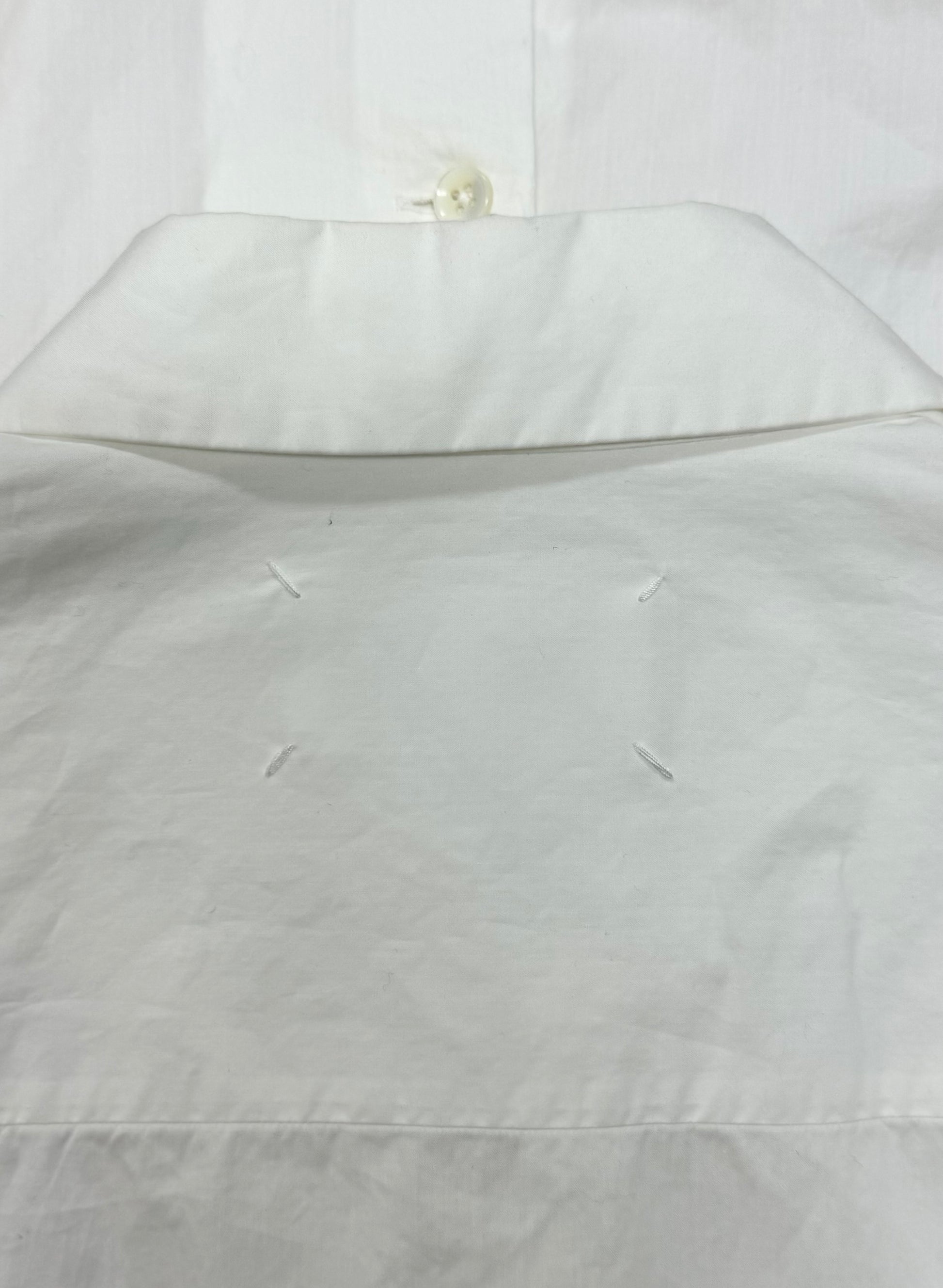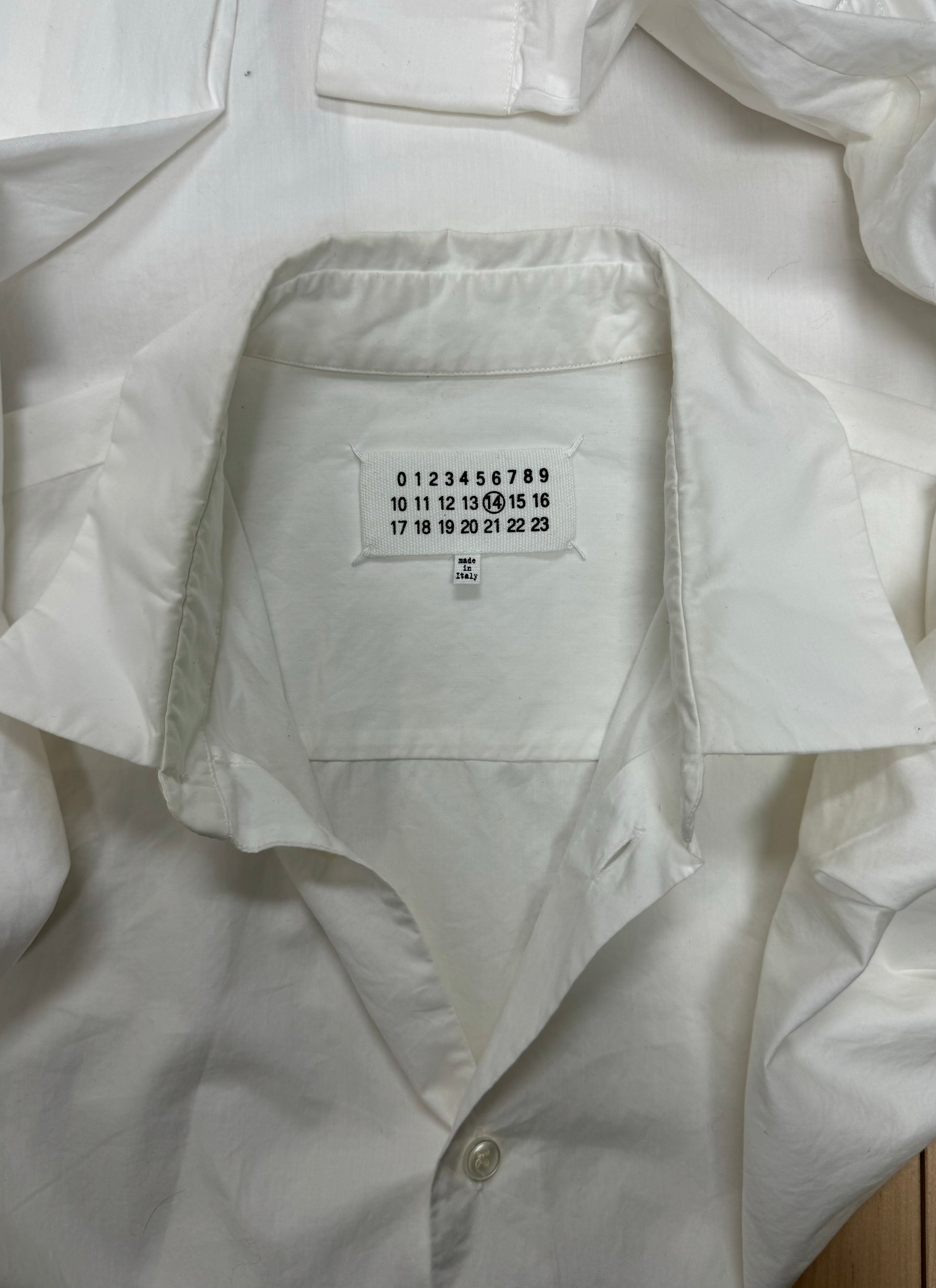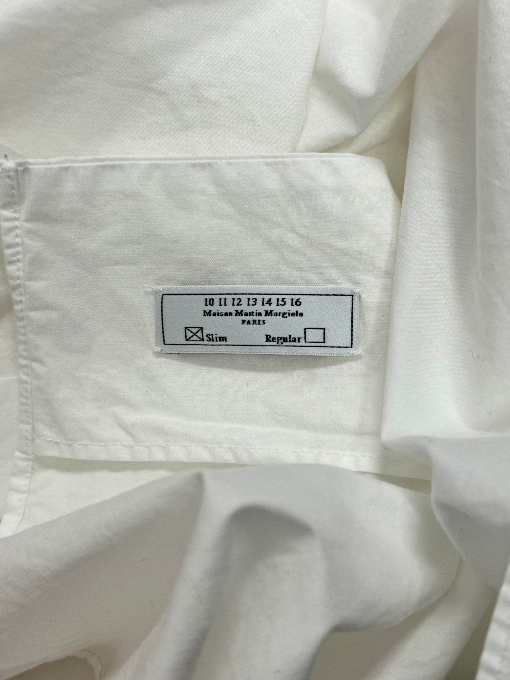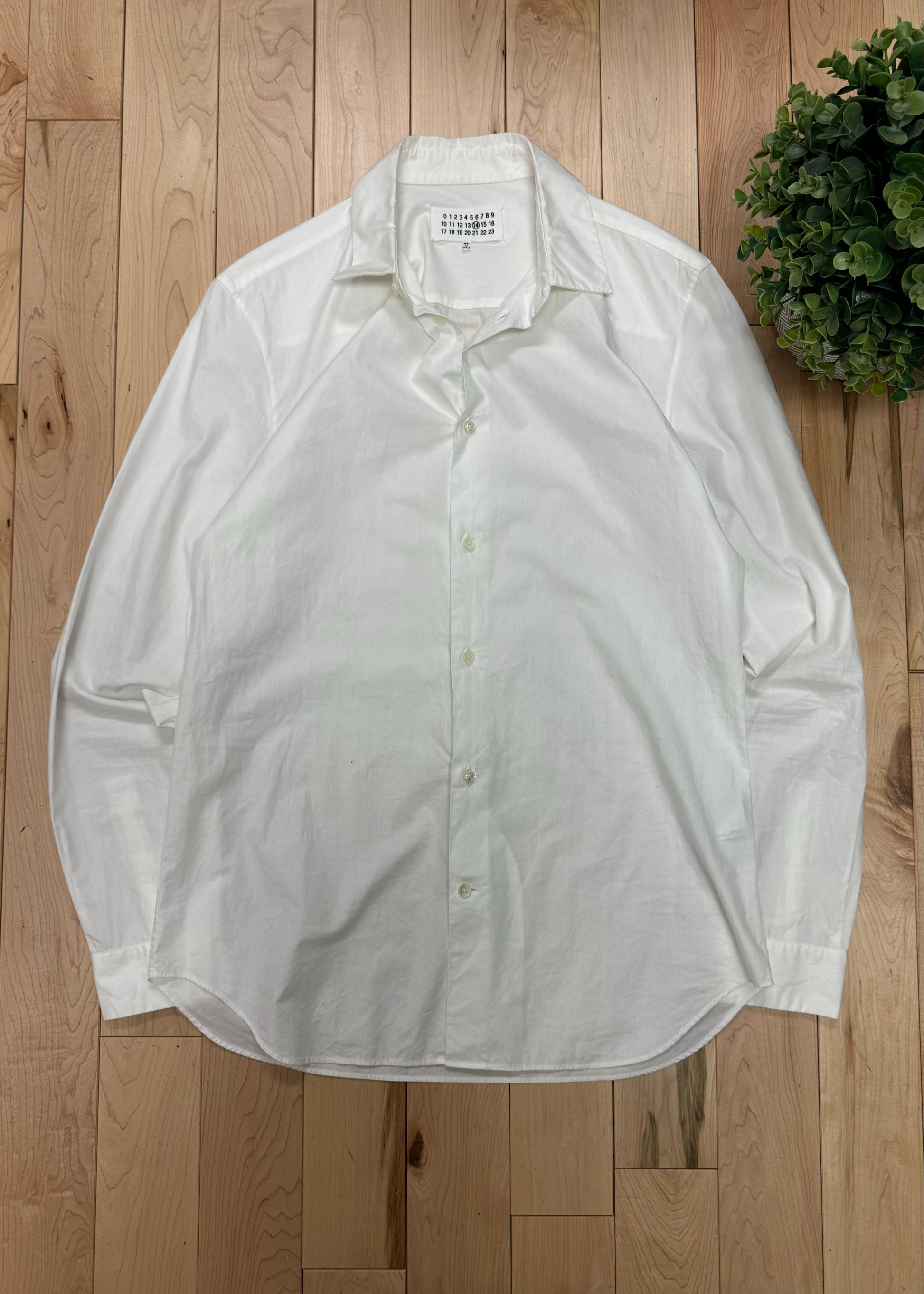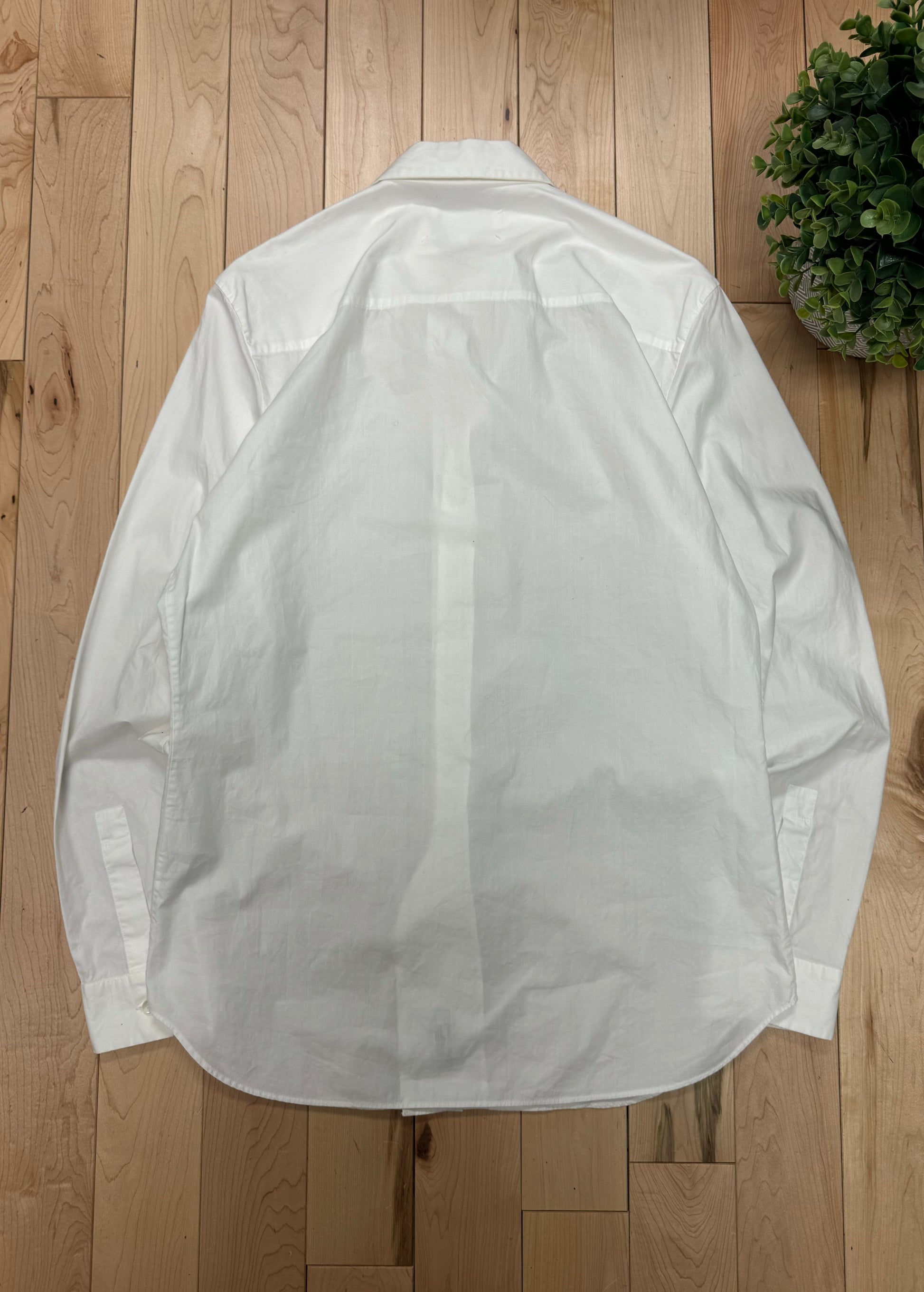 For sale is a classic Maison Margiela White Oxford Button Down Shirt. Beautifully tailored and cut to the body; this shirt features a simplistic button closure and great collar shape, with Margiela tag branding protruding through the back of the piece. Best suited for a size medium and in pristine overall condition with no flaws.