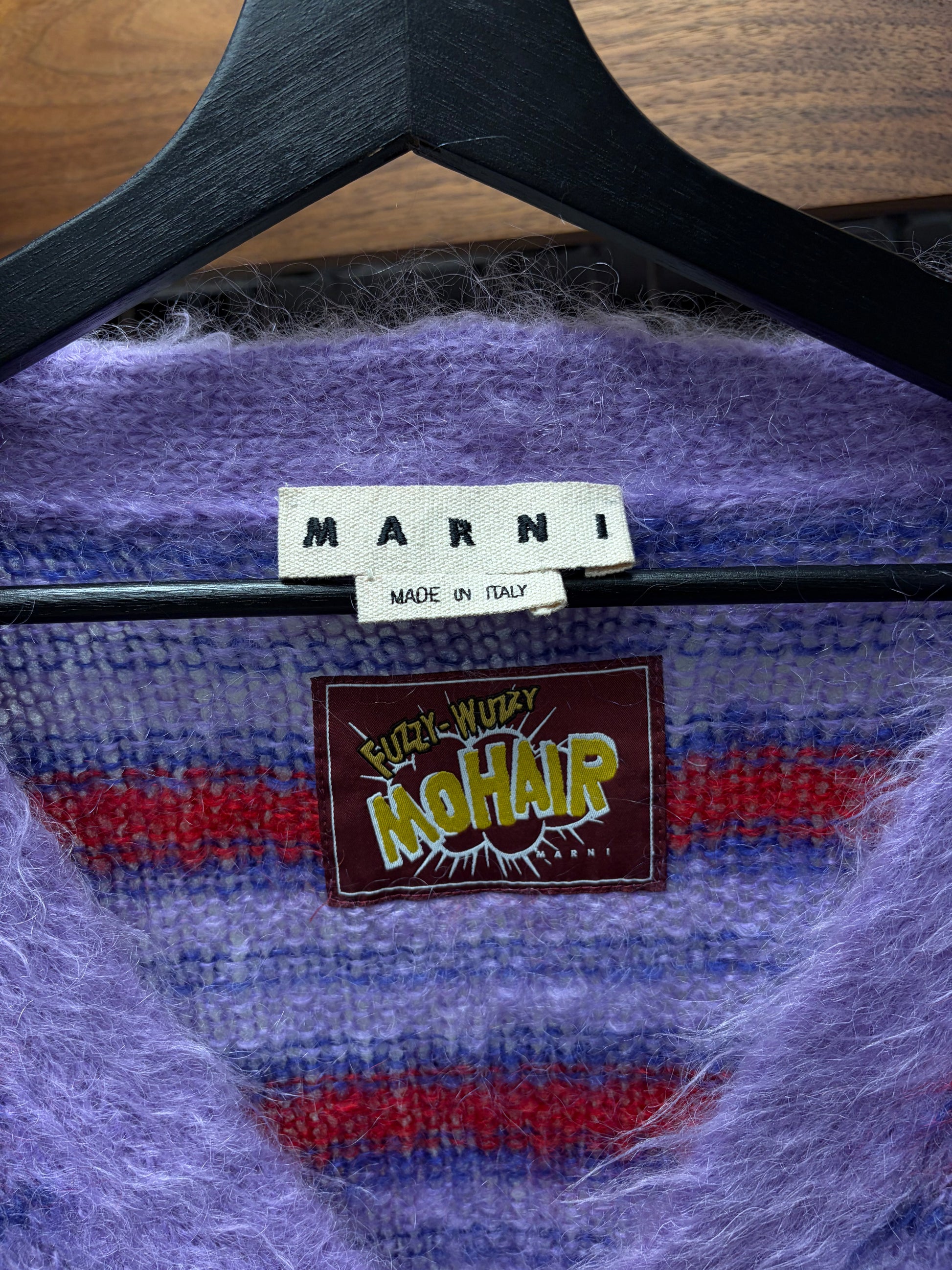 For sale is a Marni Striped Purple/Red Mohair Cardigan
