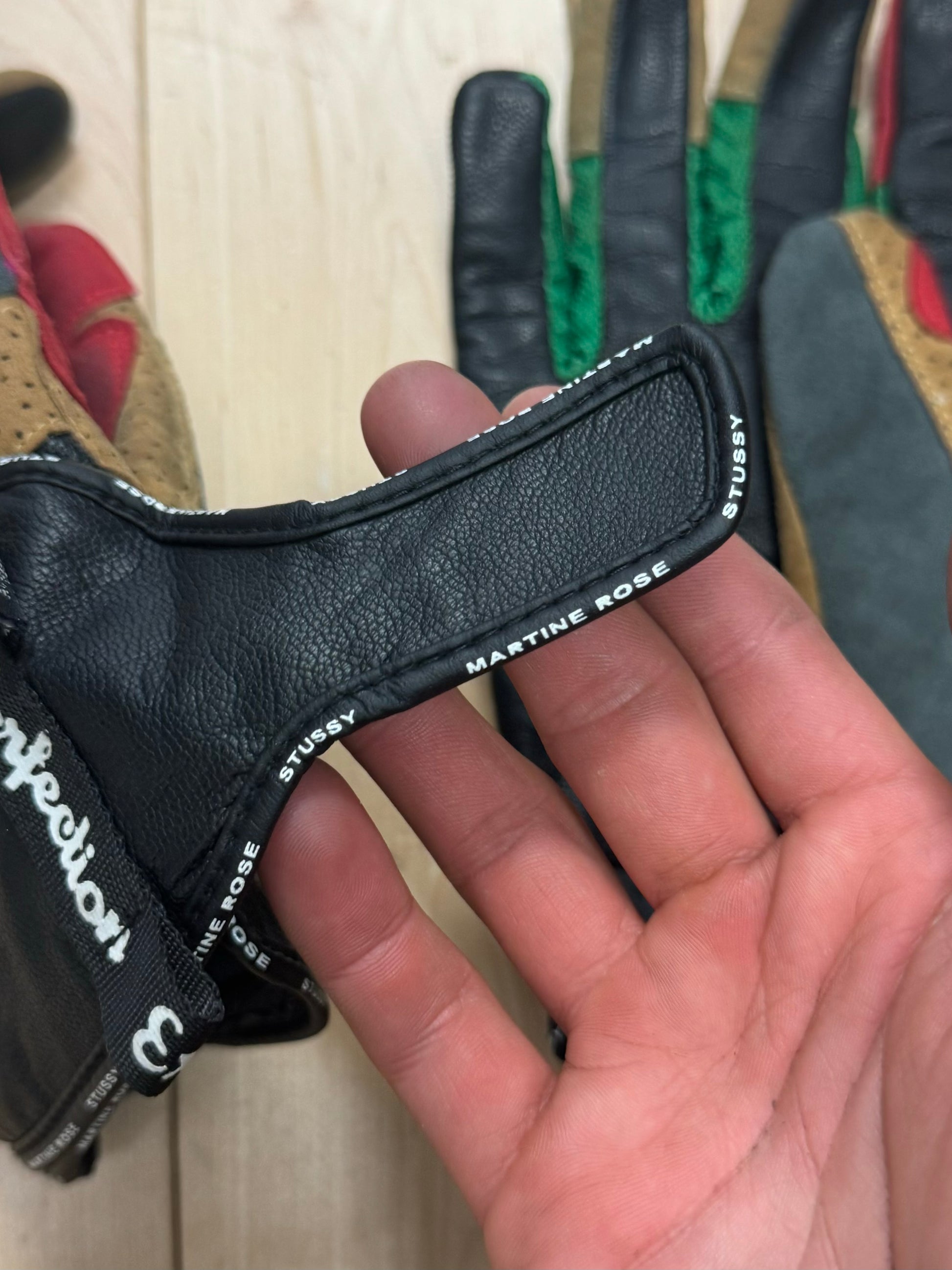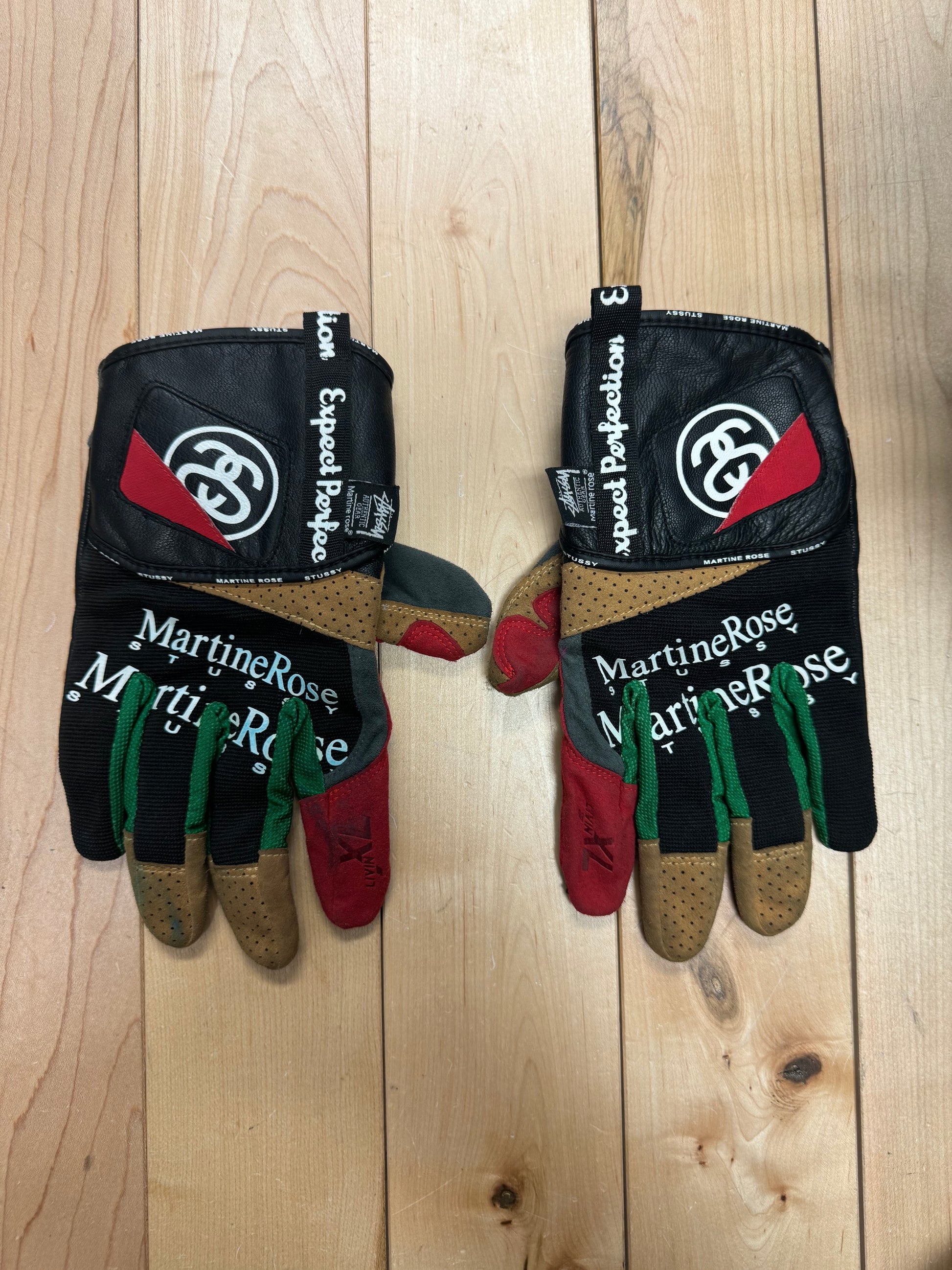 For sale is a pair of Martine Rose x Stussy Leather Driving Gloves. The gloves feature Martine Rose and Stussy collaborative branding on the front with leather padding beneath, ensuring the gloves are both functional and fashionable. Some general wear throughout.