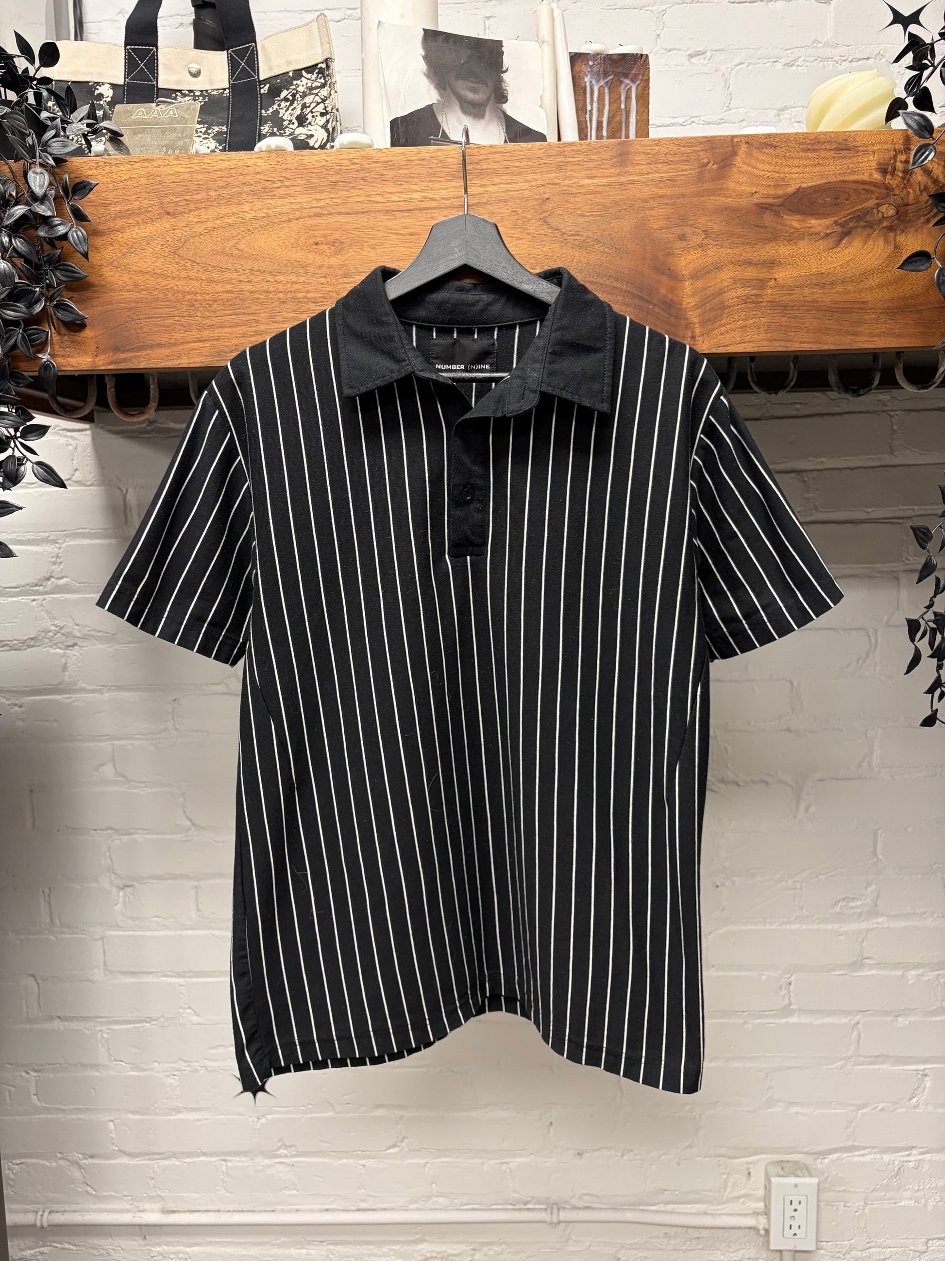 For sale is a Number (N)ine Black/White Vertical Striped Polo