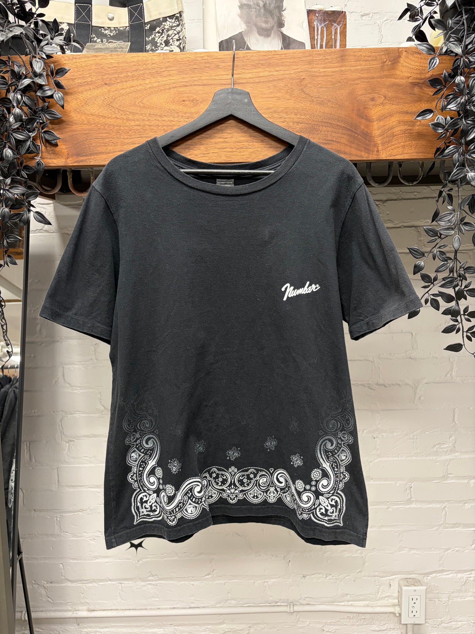 For sale is a Number (N)ine ‘Fender Logo’ Black Paisley Graphic T-Shirt