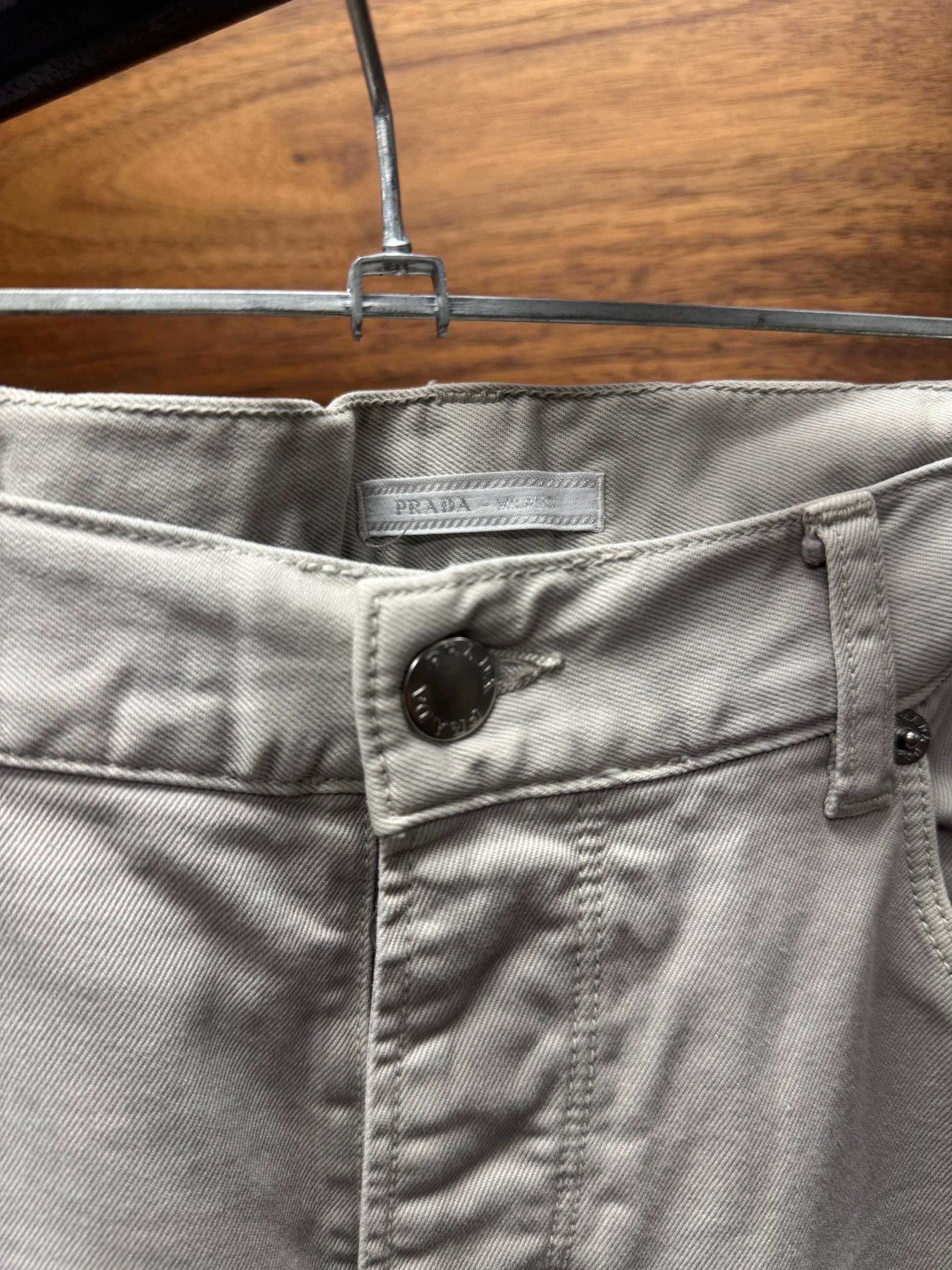 For sale is a pair of 2009 Prada Tan Khaki ‘Button Fly’ Bootcut Pants