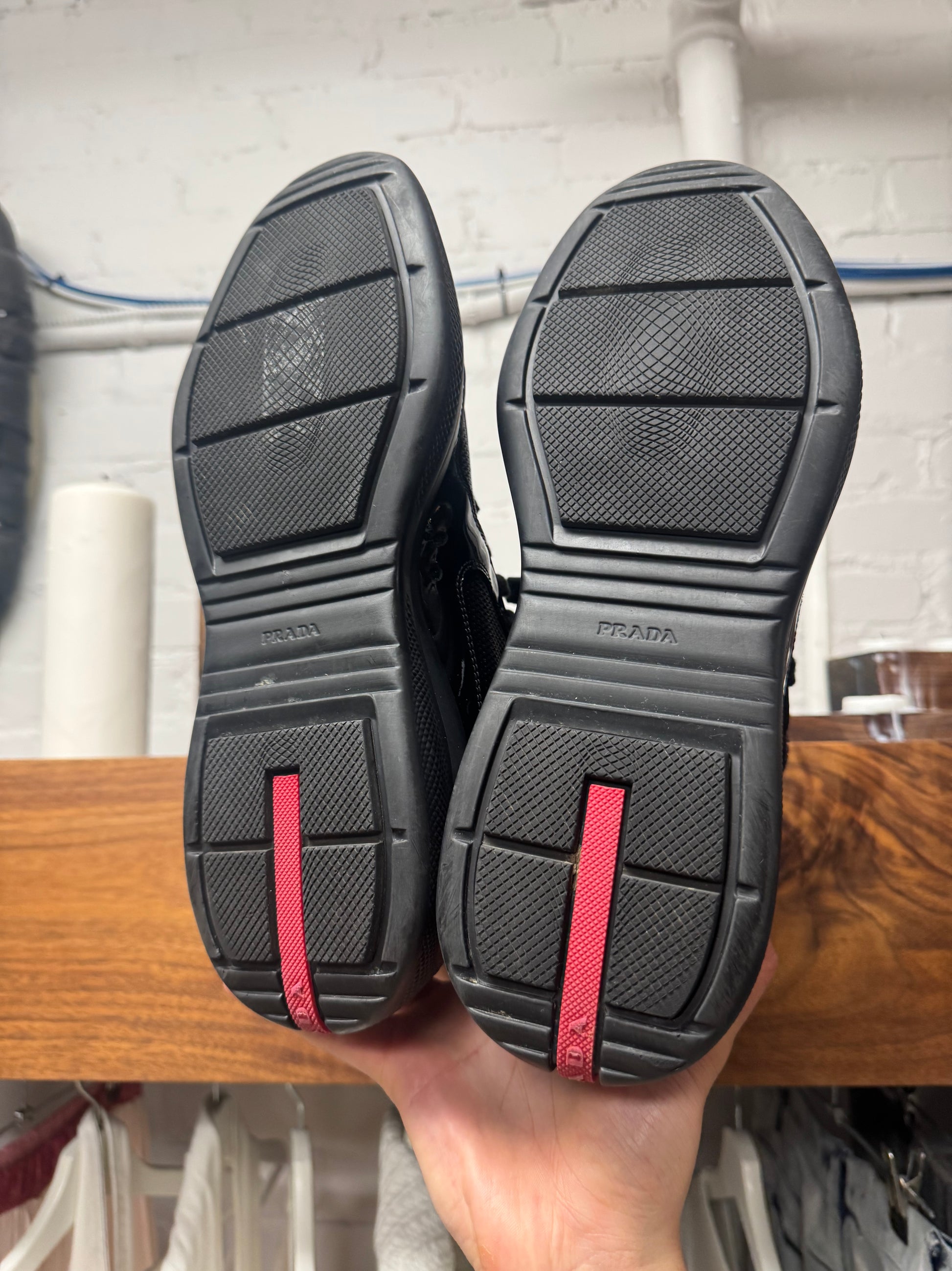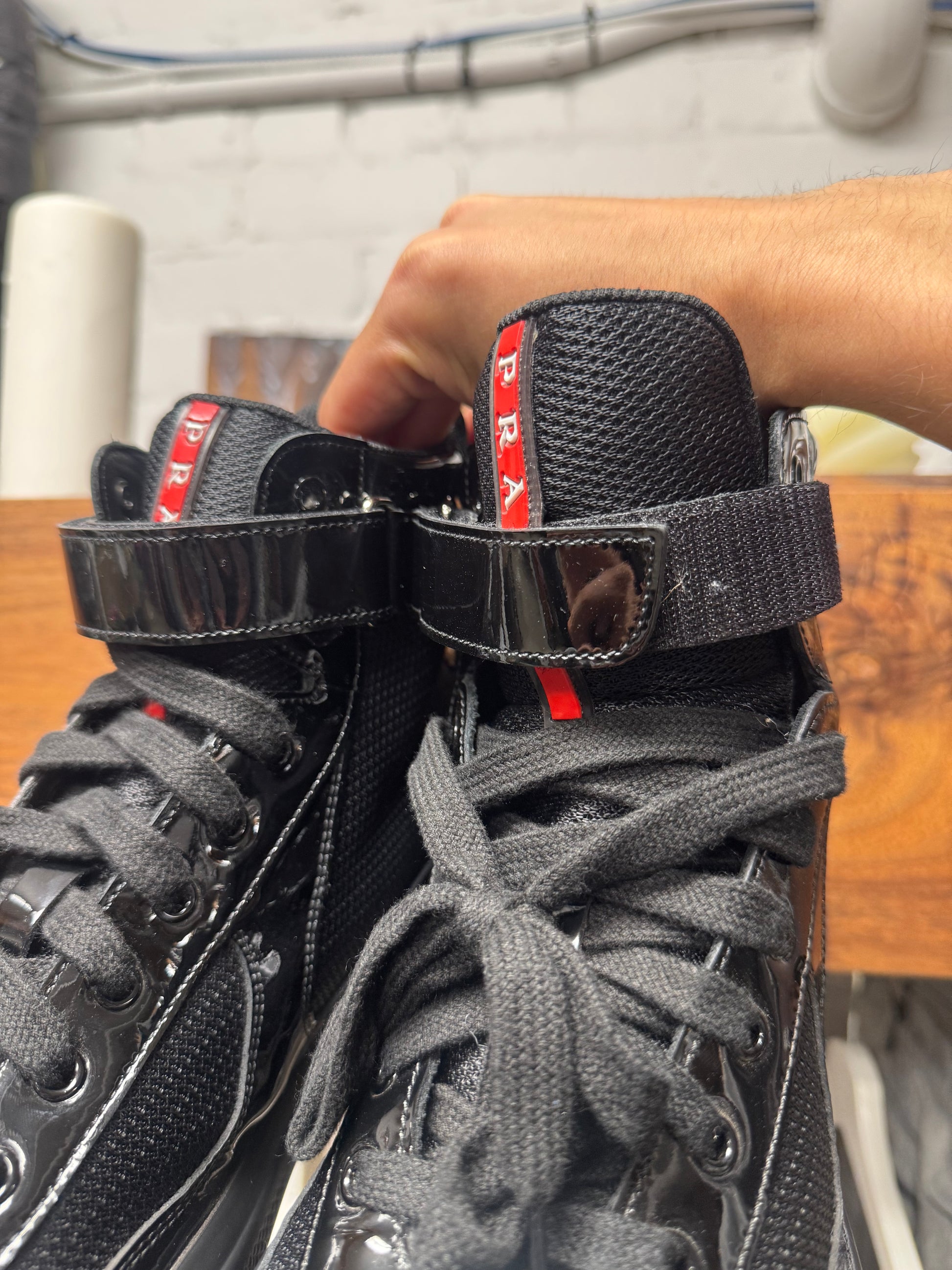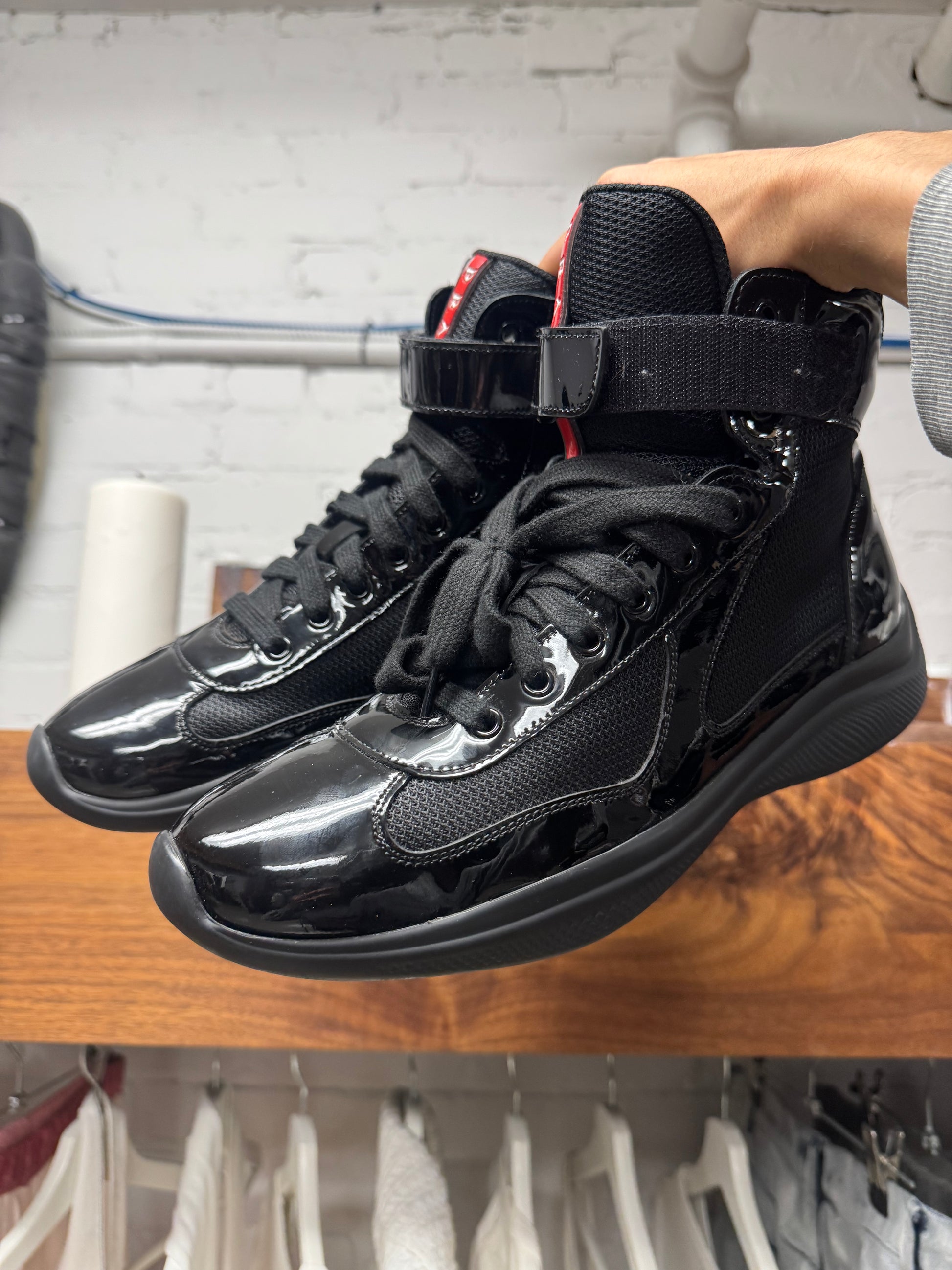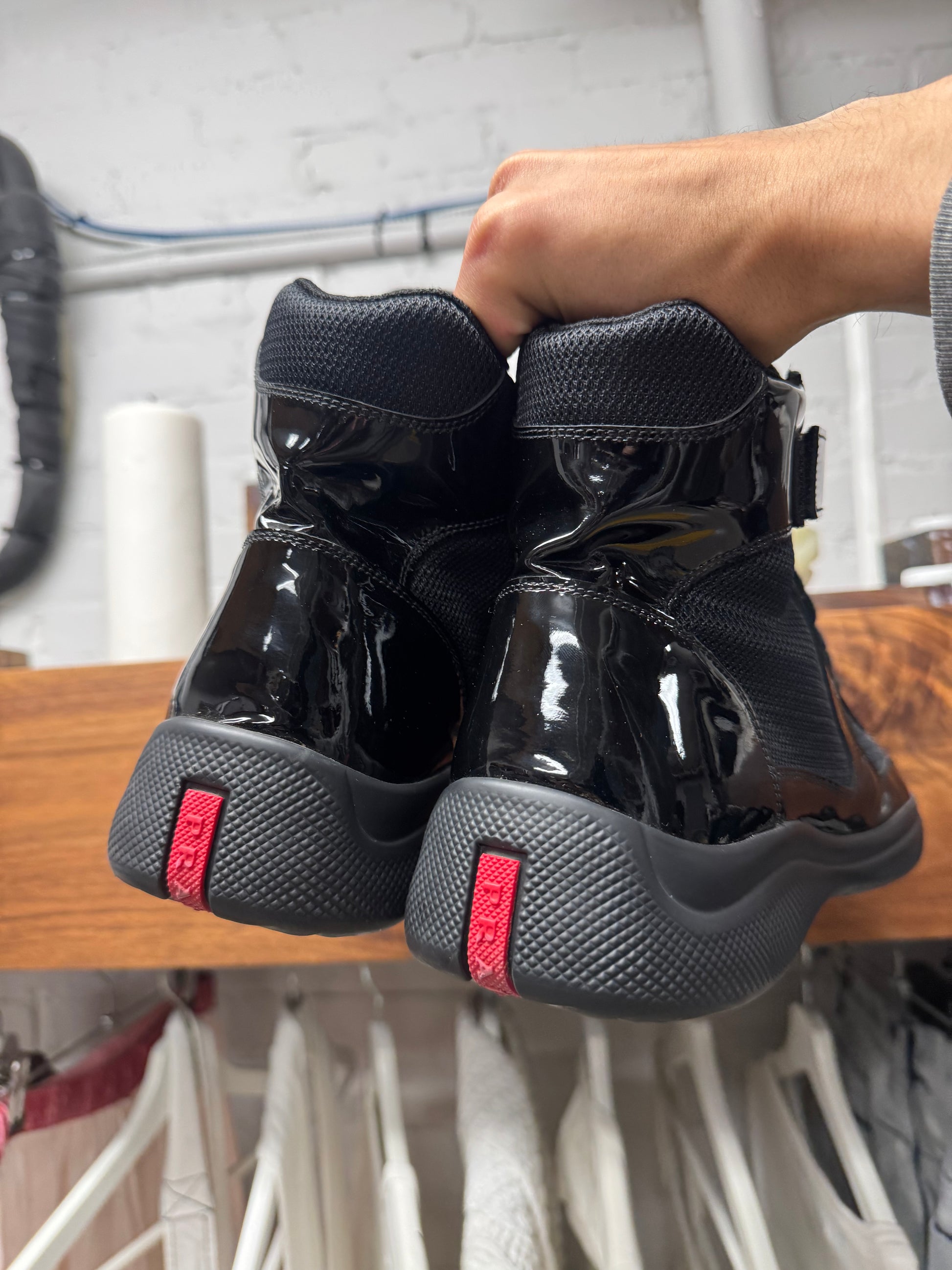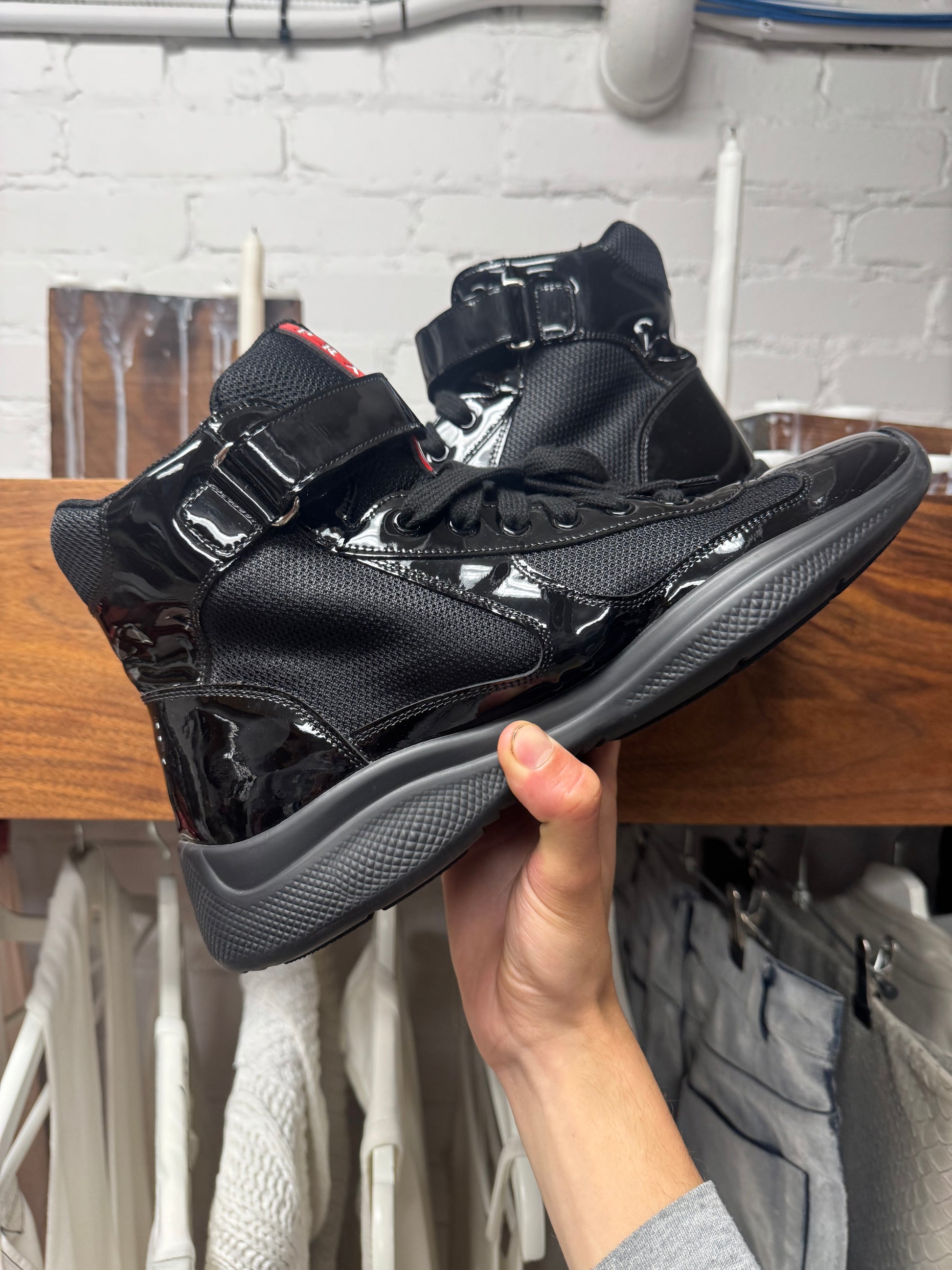 Prada ‘Americas Cup’ Black Patent Leather High Top Sneakers