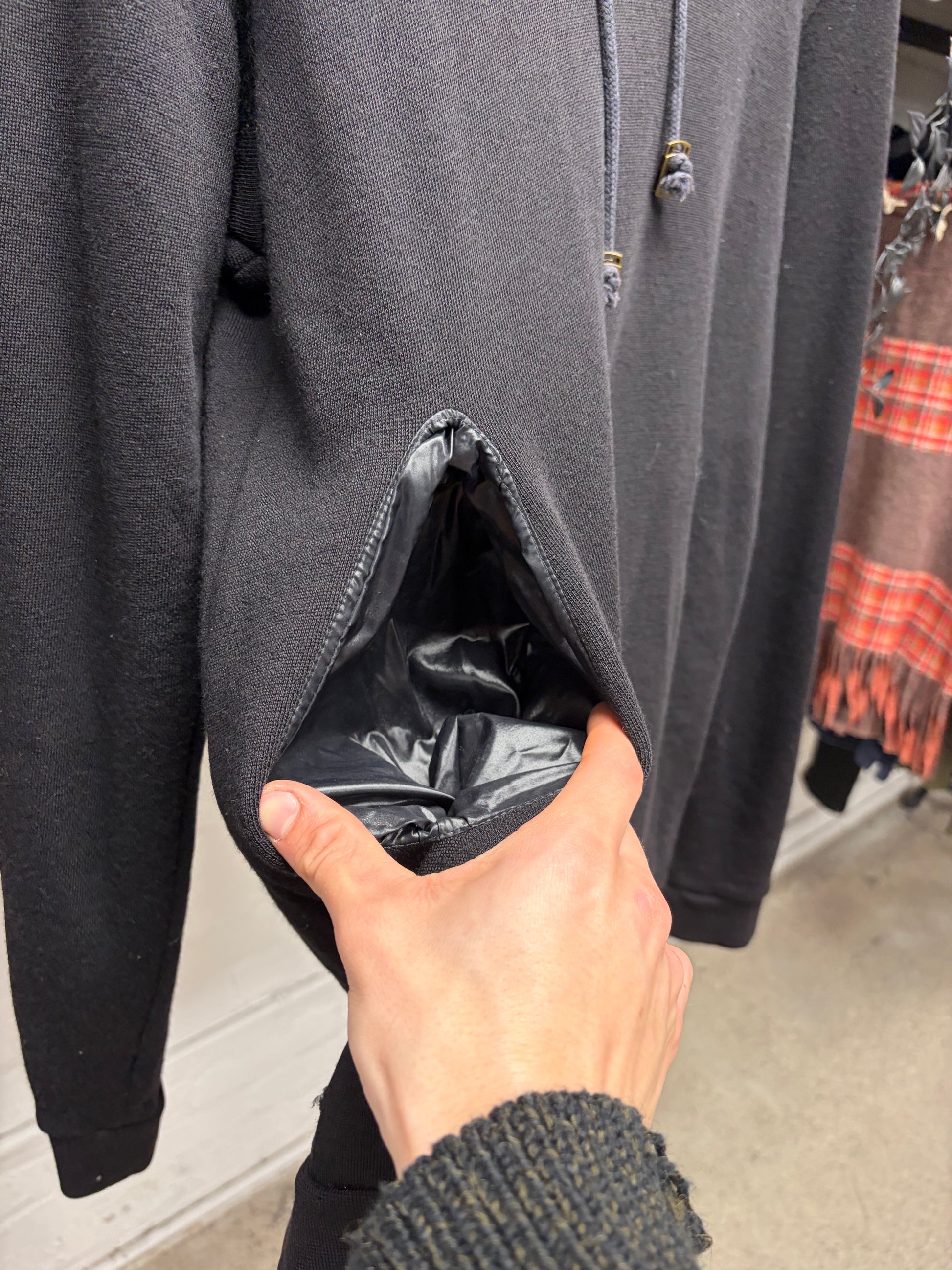 AW2007 Raf Simons Black Wool Hoodie with Waxed Nylon Interior Liner