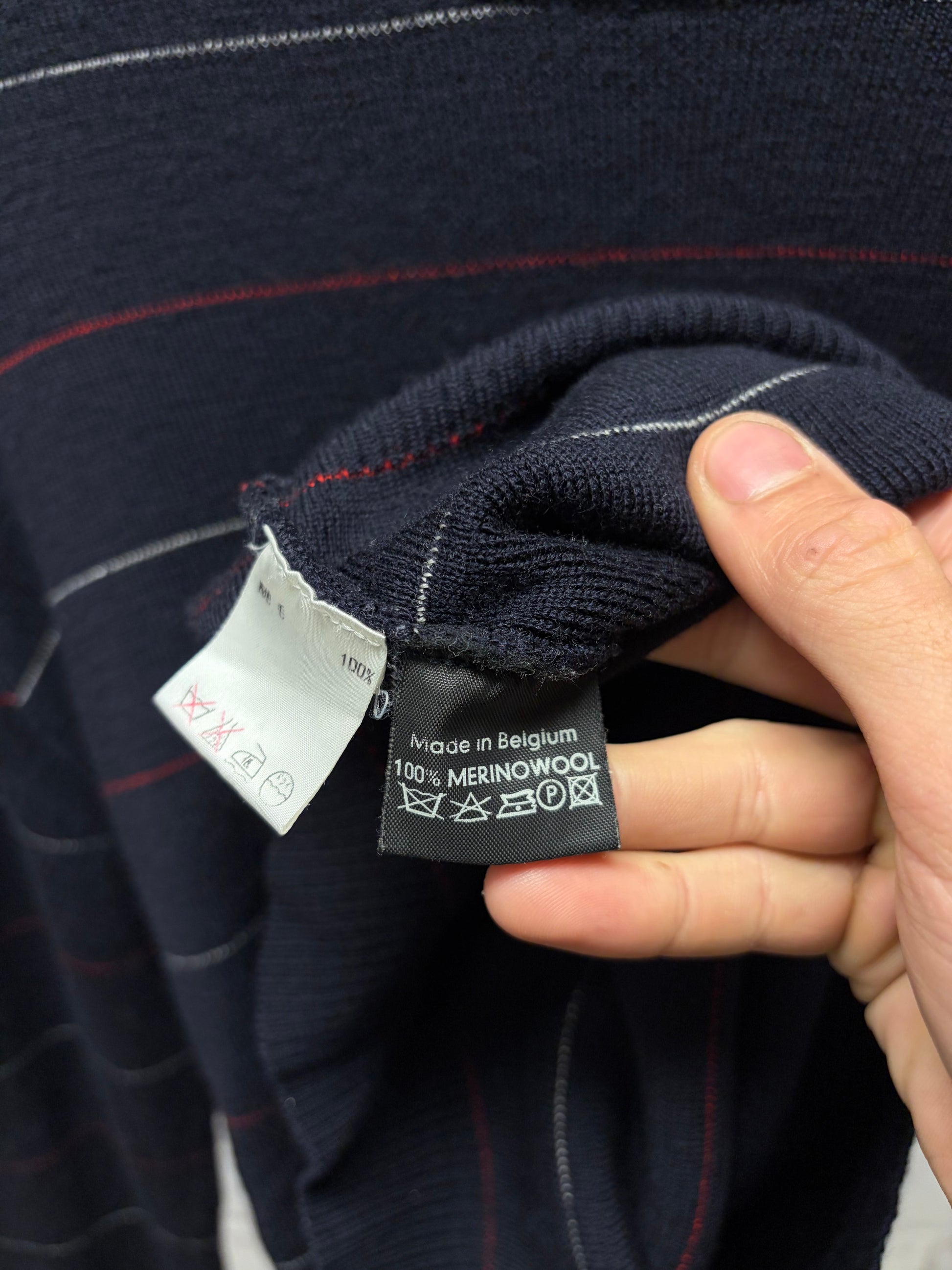 (FOR SALE) AW2001 Raf Simons ‘Riot Riot Riot’ Merino Wool Striped Knit Sweater