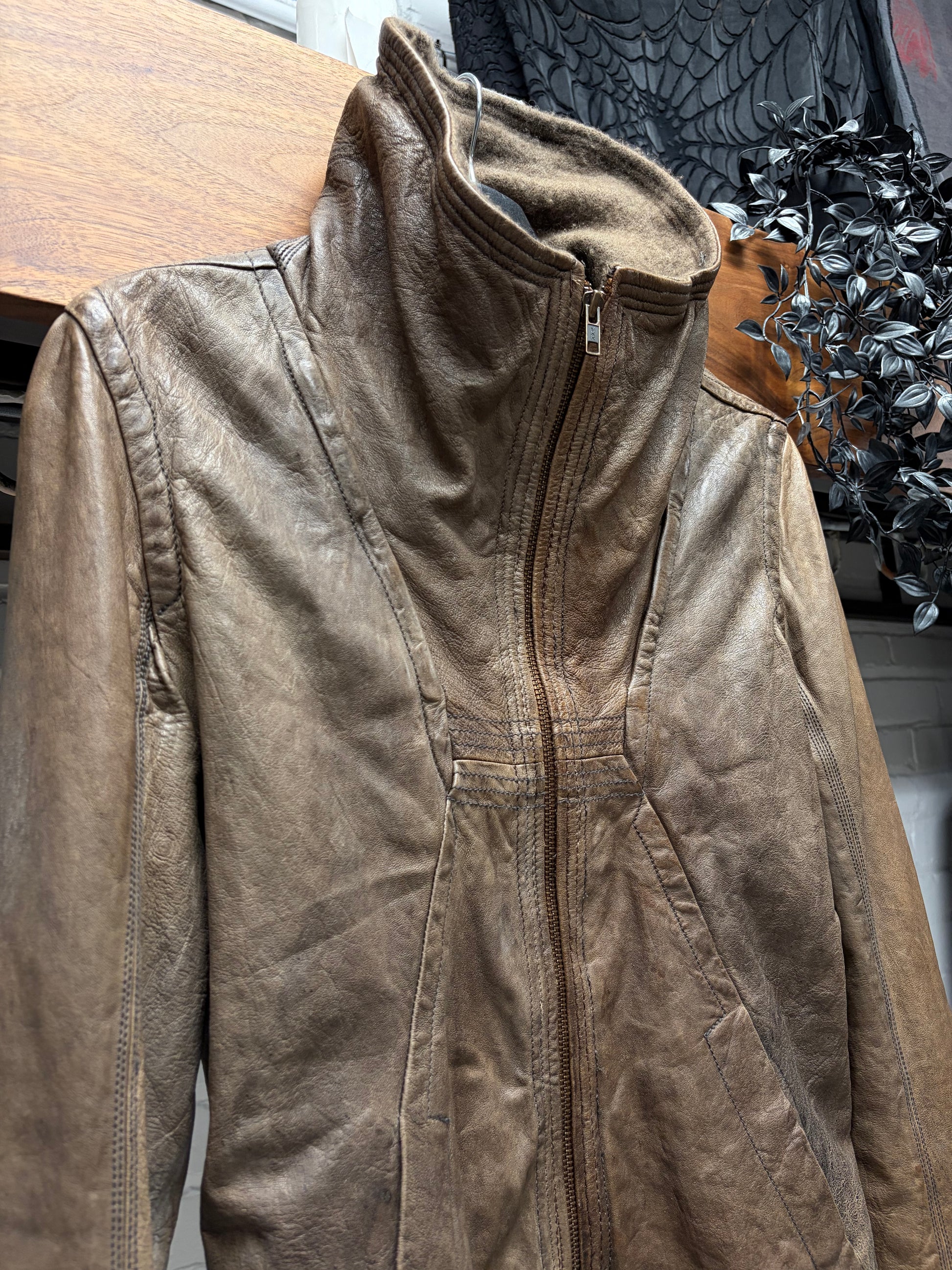 (FOR SALE) A 2000s Rick Owens ‘Dust’ Brown Leather ‘Exploder’ O&M Era High Neck Jacket