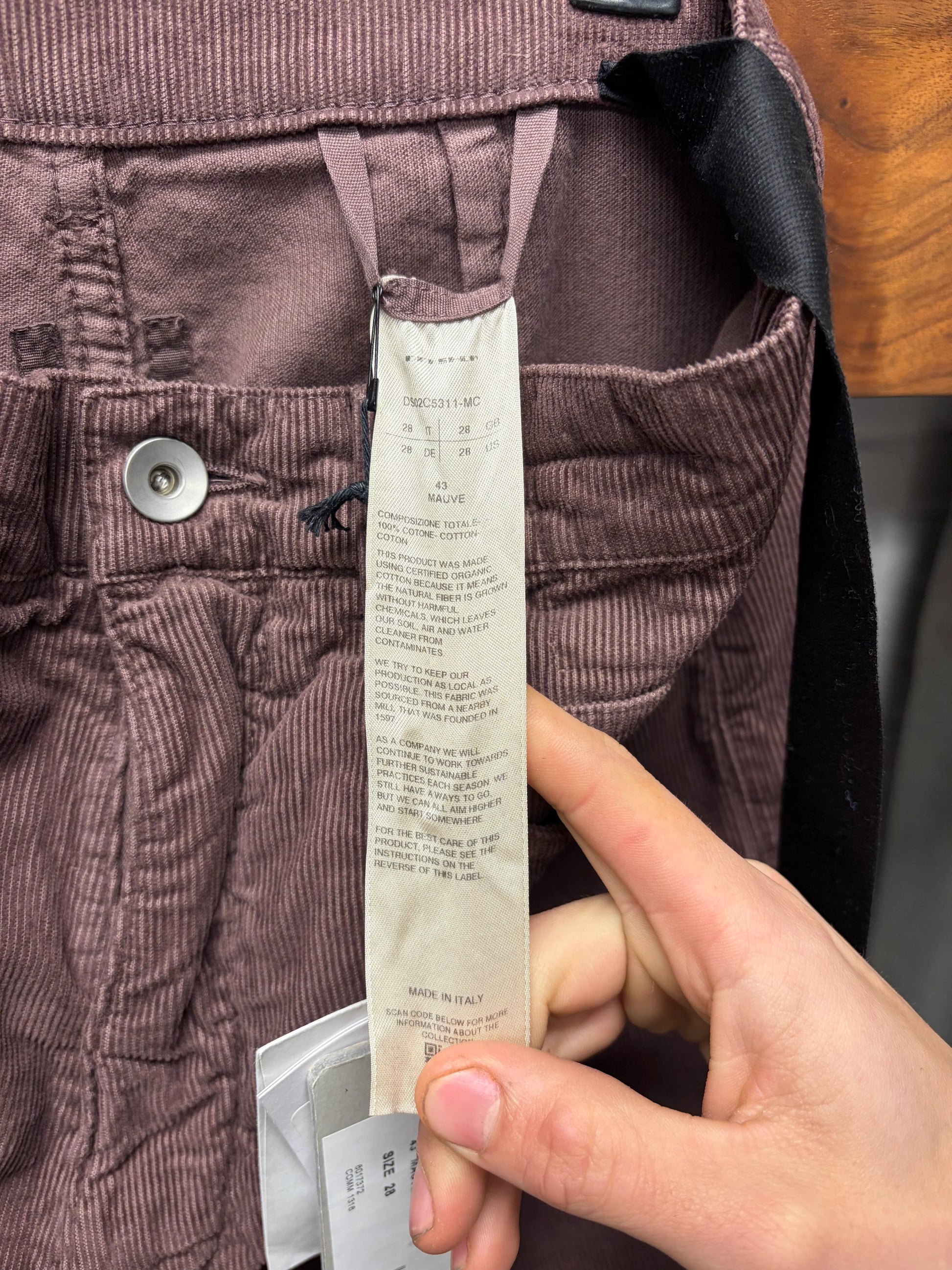 For sale is a Rick Owens ‘Bolans’ Mauve Corduroy Flared Leg Pants