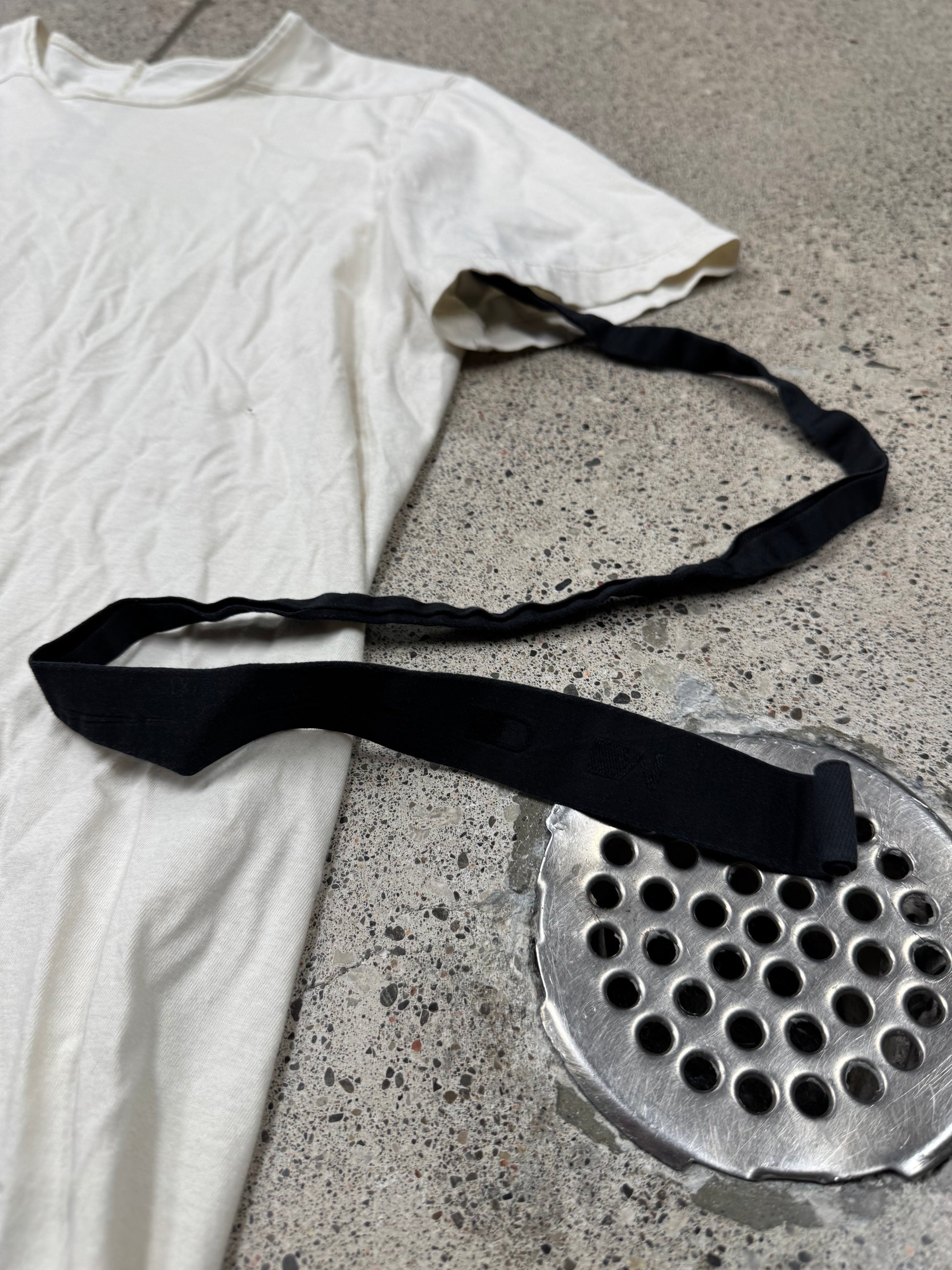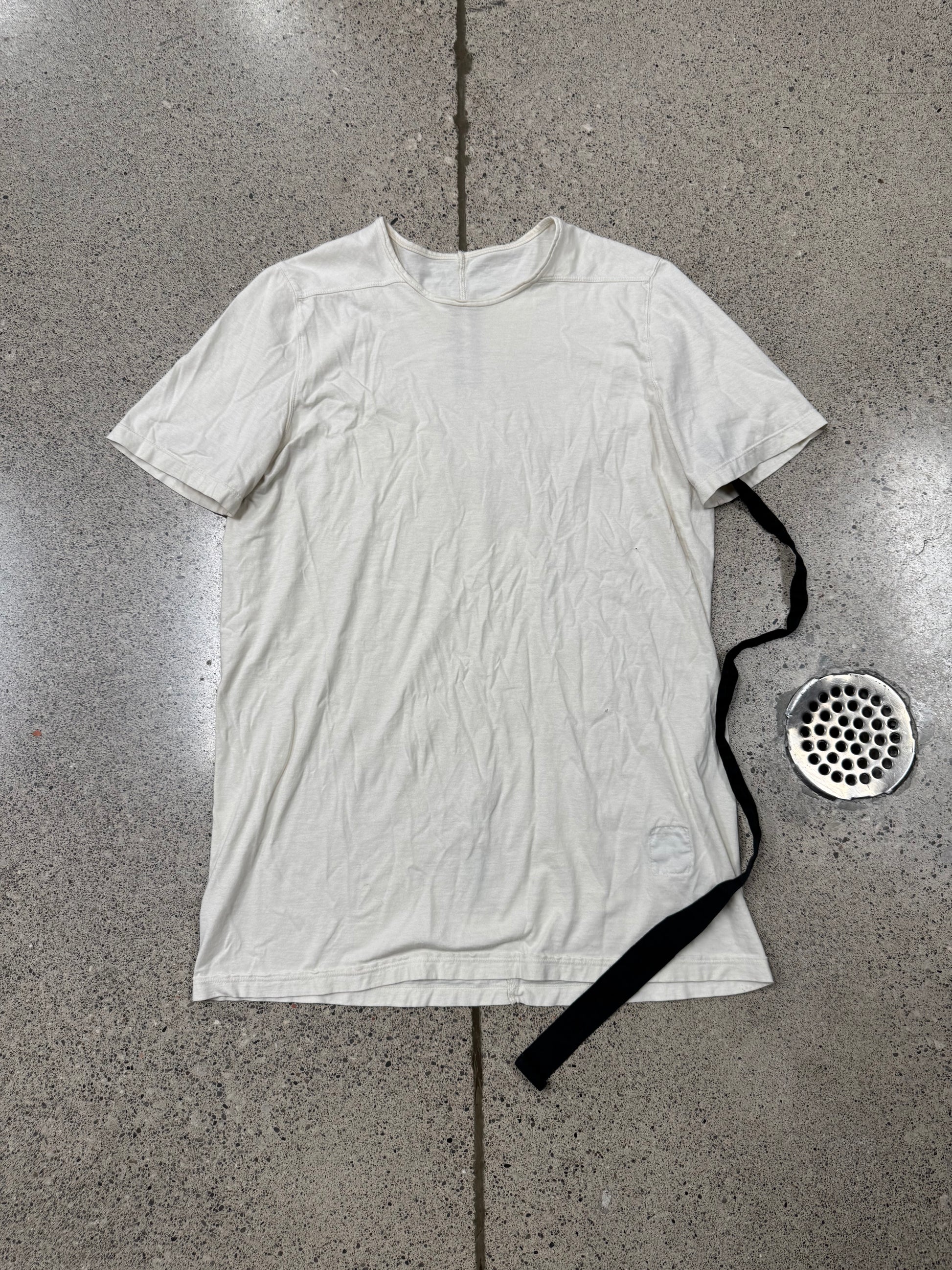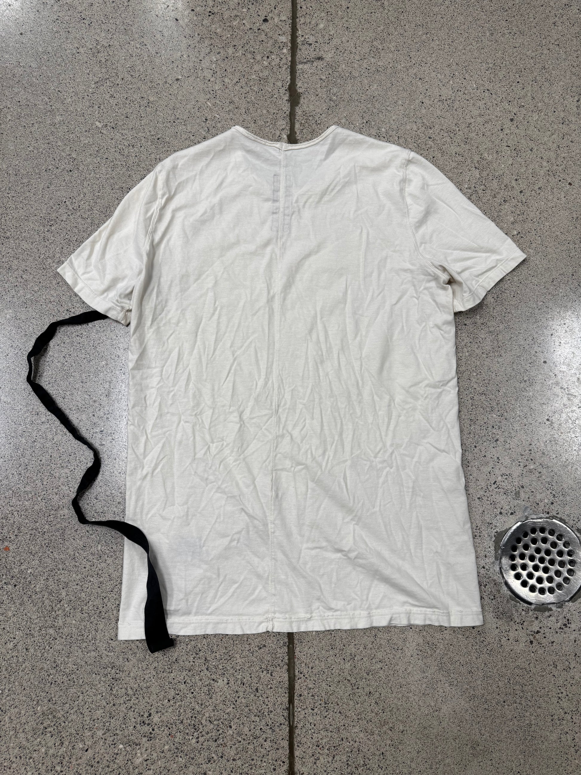 -classic natural white color Rick Owens short sleeve shirt with DRKSHDW strap coming out of the arm