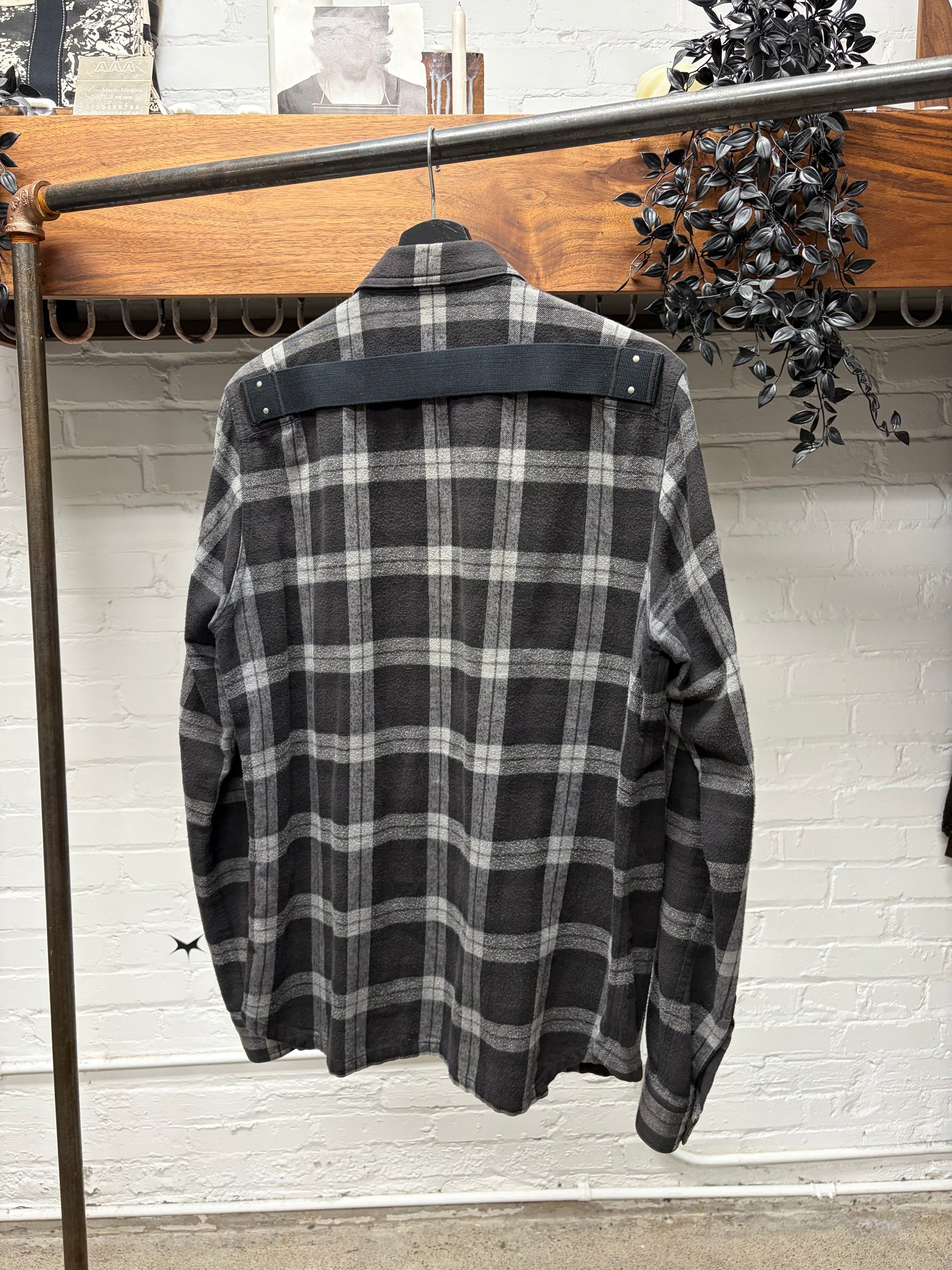 For sale is a SS2019 Rick Owens ‘Babel’ Plaid Flannel Shoulder-Strap Work Shirt