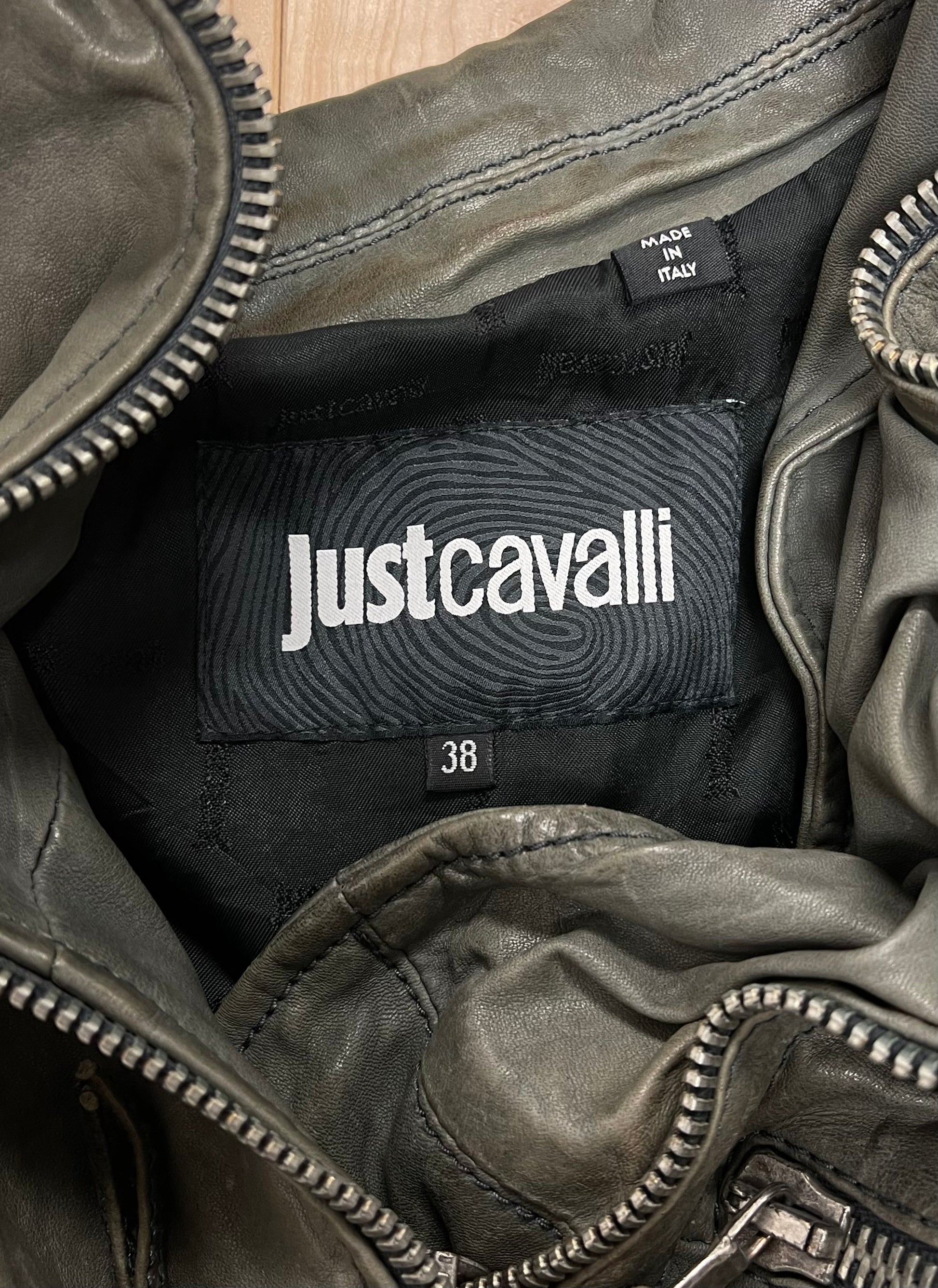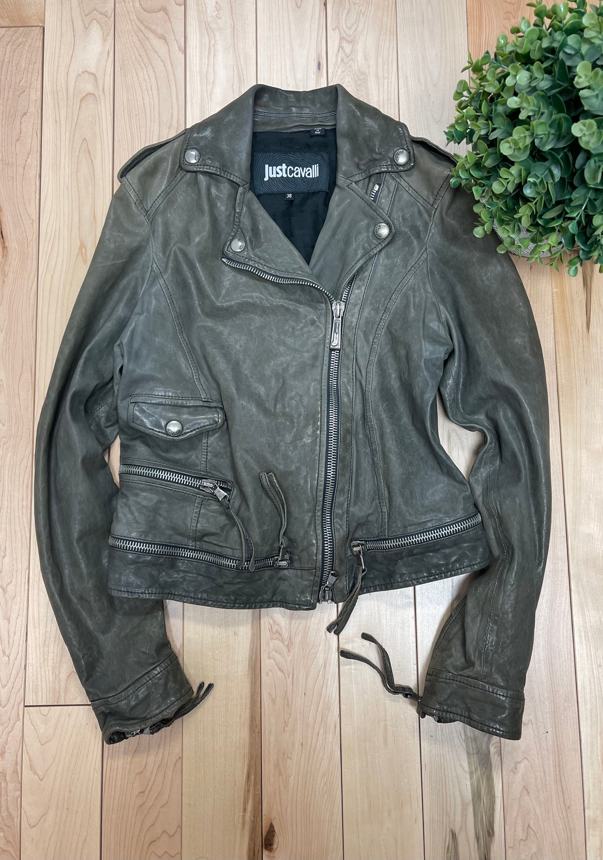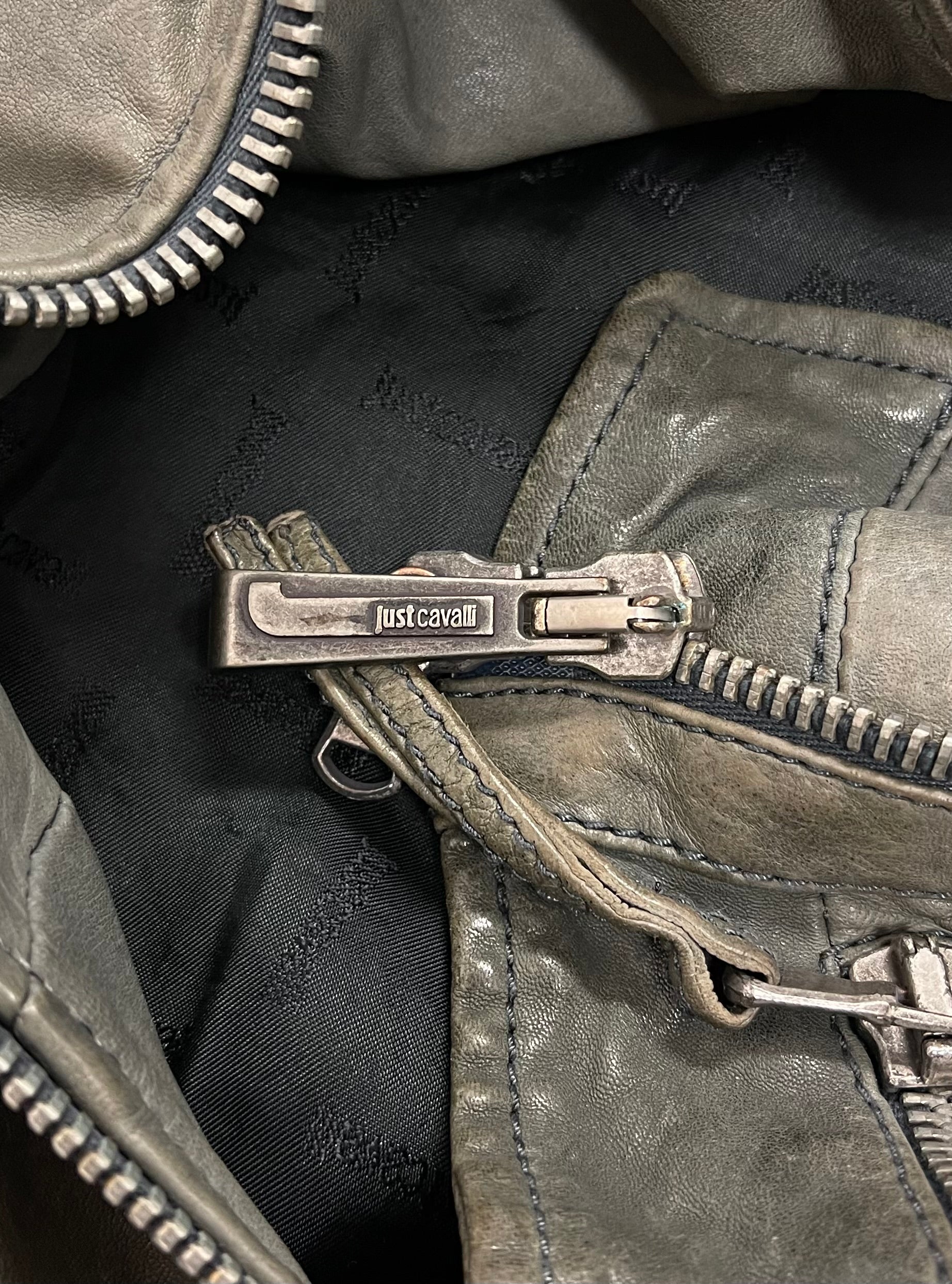 Roberto Cavalli Grey Calfskin Leather Perfecto Zip Biker Jacket