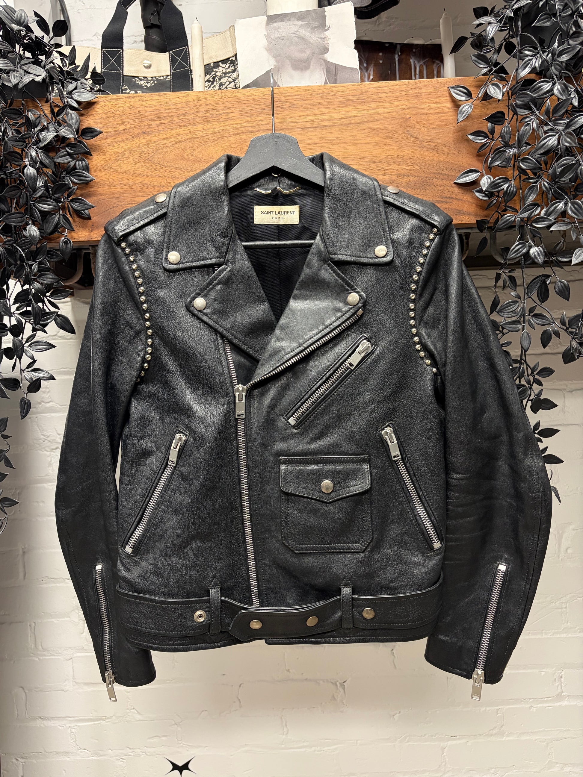 SS2014 Saint Laurent by Hedi Slimane ‘L17’ Rivet Studded Black Leather Biker Jacket