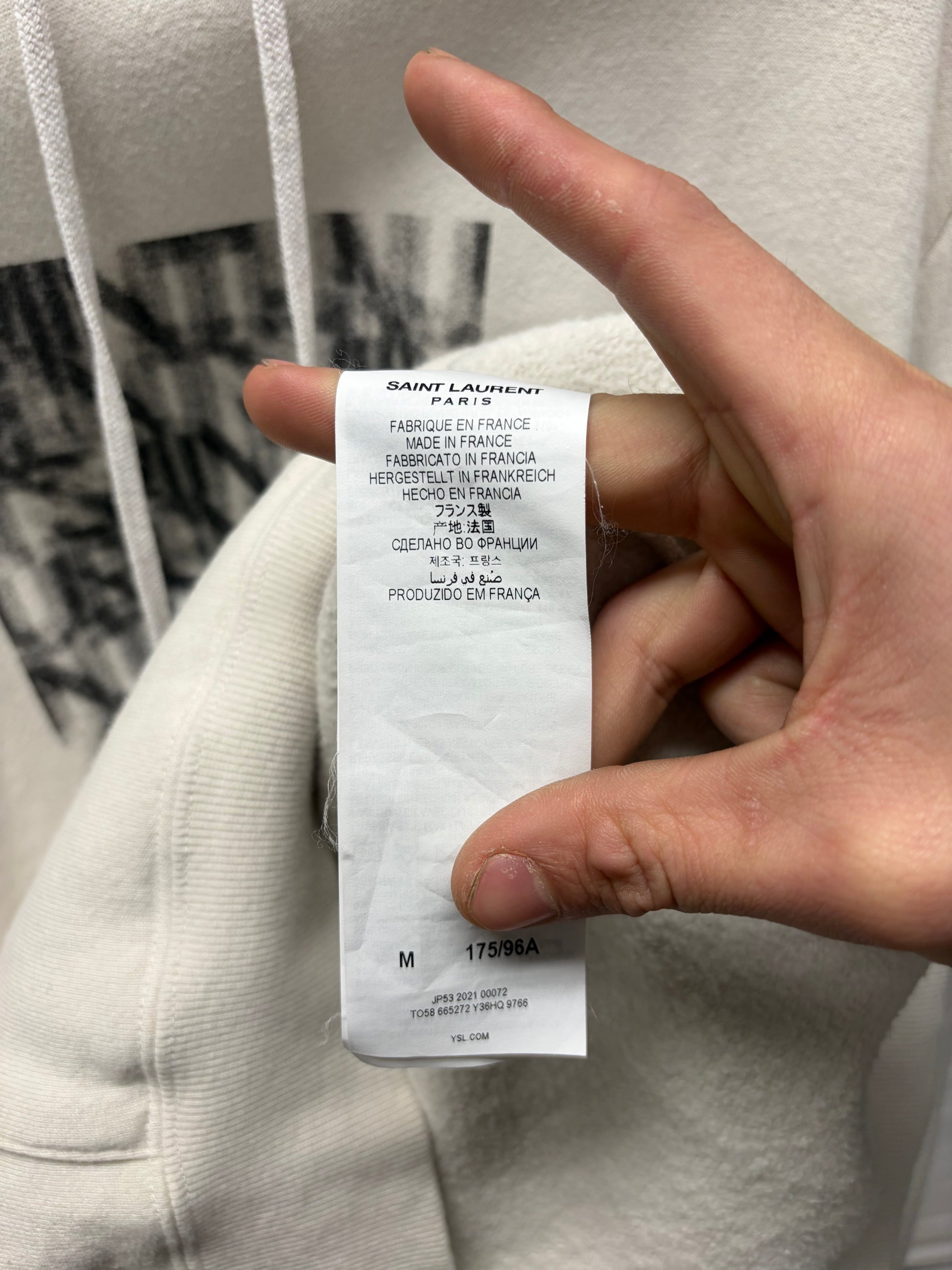 For sale is a 2021 Saint Laurent ‘Block Logo’ Grey Cotton Pullover Hoodie