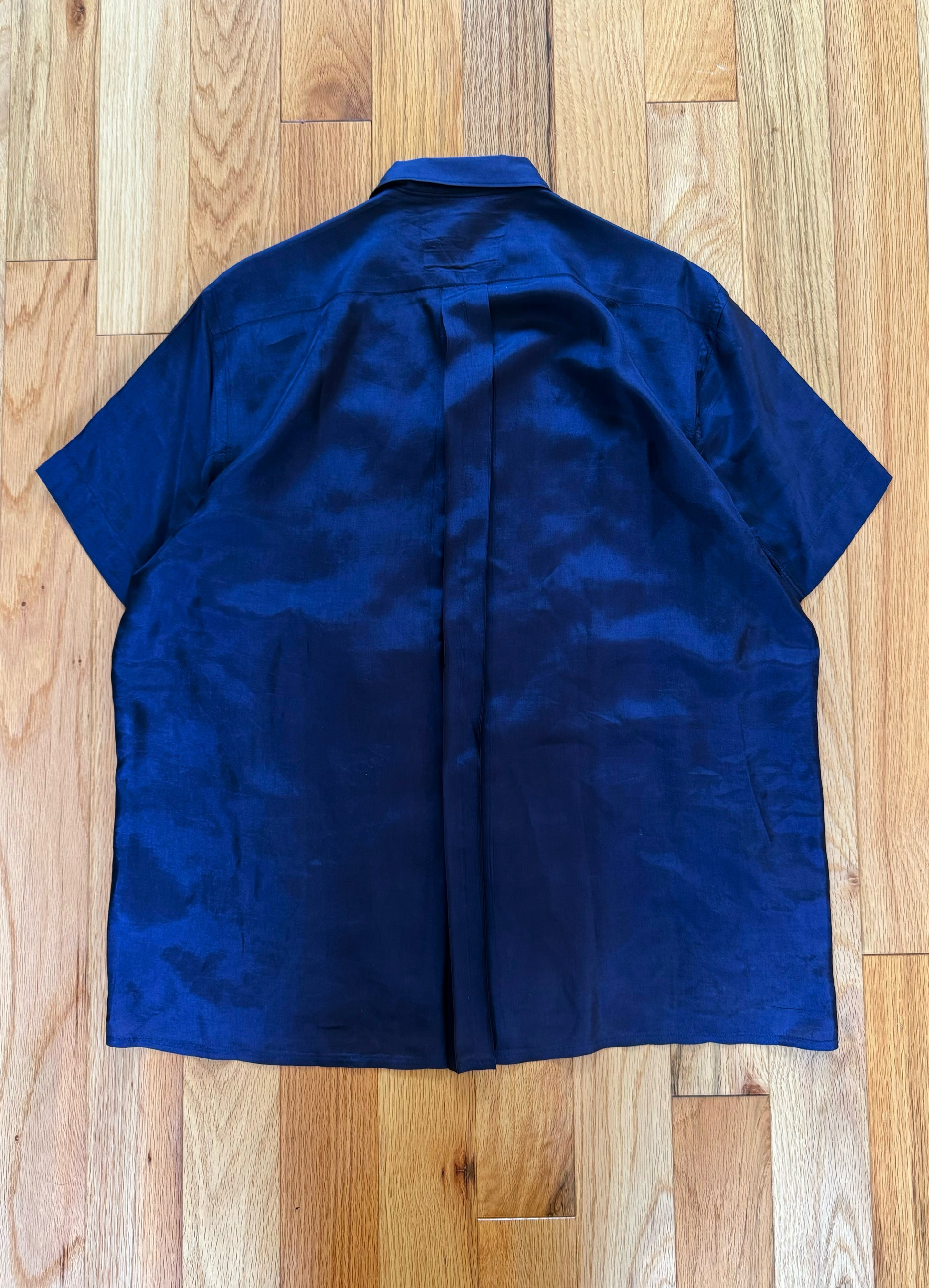 This patchwork button down shirt features a collage of photos of Queen’s Guards, dressed in full uniform marching in unison. Coming in a navy blue colorway, this piece is a tagged size medium and has a boxy cut fit, a perfect top for the summertime. Here is the opportunity to purchase a beautiful Comme Des Garcons top for an outstanding price.