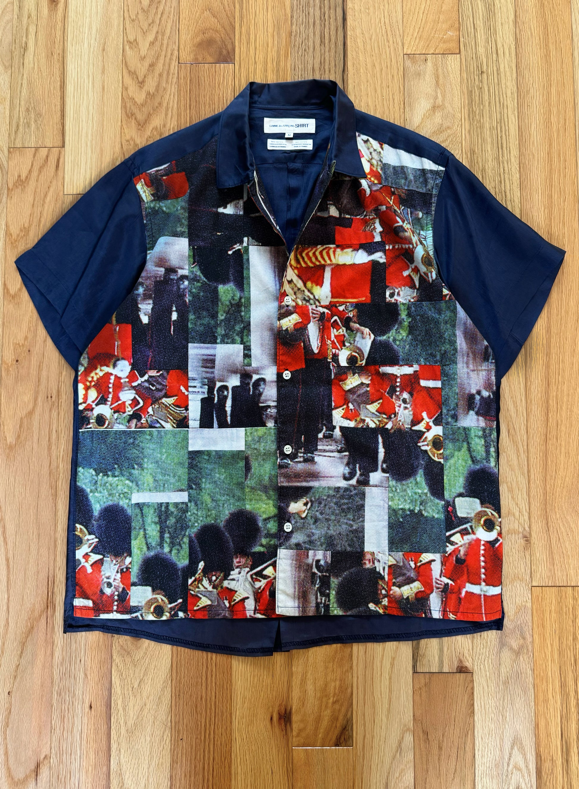 (FOR SALE) A Spring Summer 2008 Comme Des Garcons Shirt ‘Queen’s Guards’ Collage Patchwork Button Down Top.