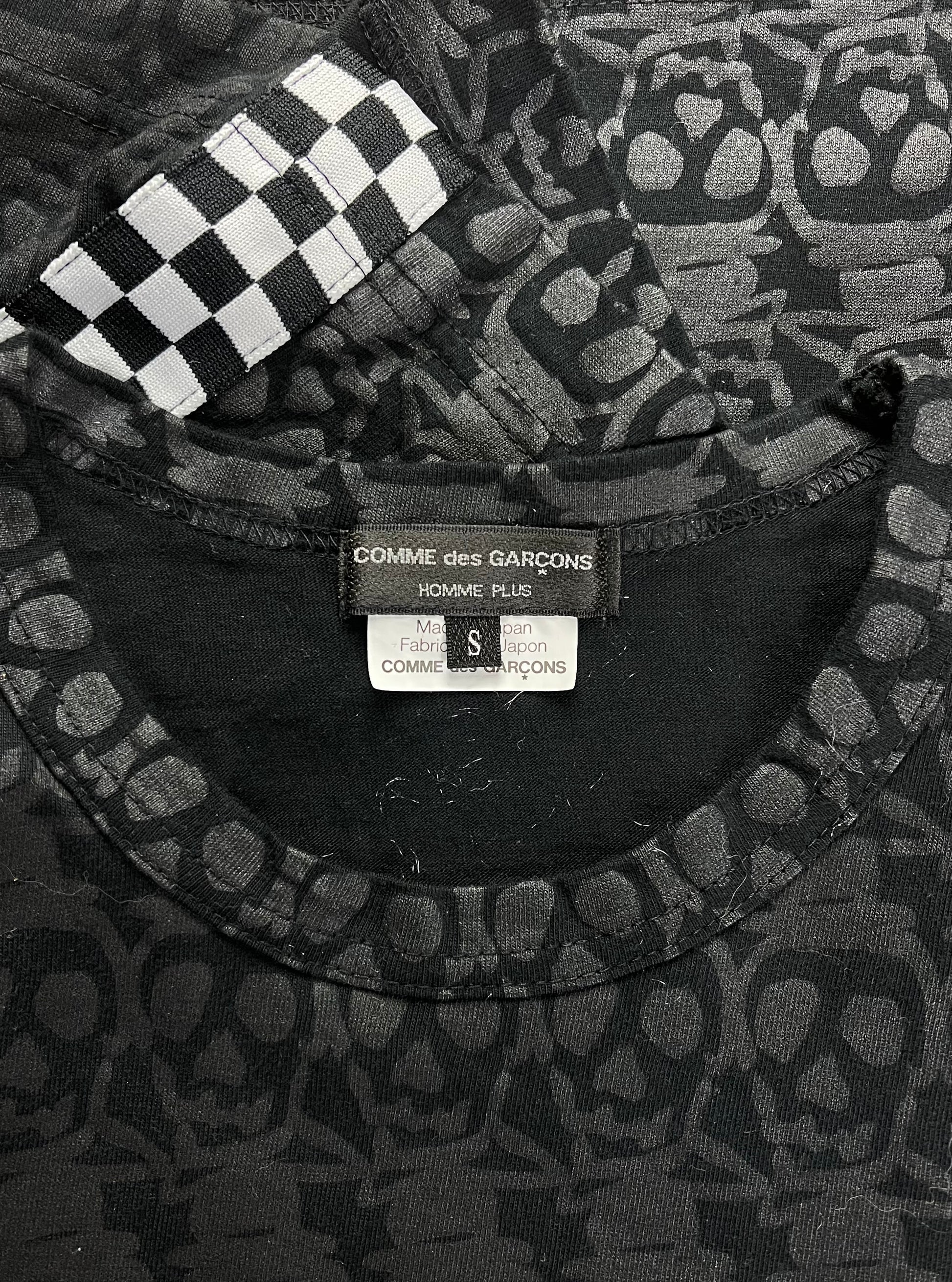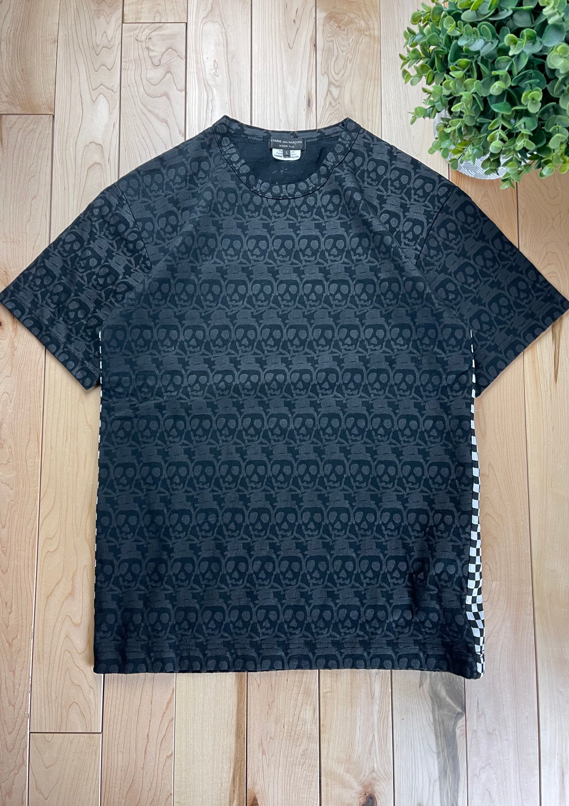 For sale is a Spring Summer 2011 Comme Des Garcons Skull Print T-Shirt. Featuring a full print pattern with skulls running throughout, this shirt is accented with checkerboard detailing on each side. Coming in a size small, this shirt has a boxy cut fit. Here is the opportunity to purchase a rare CDG Homme graphic t-shirt for a fantastic price.
