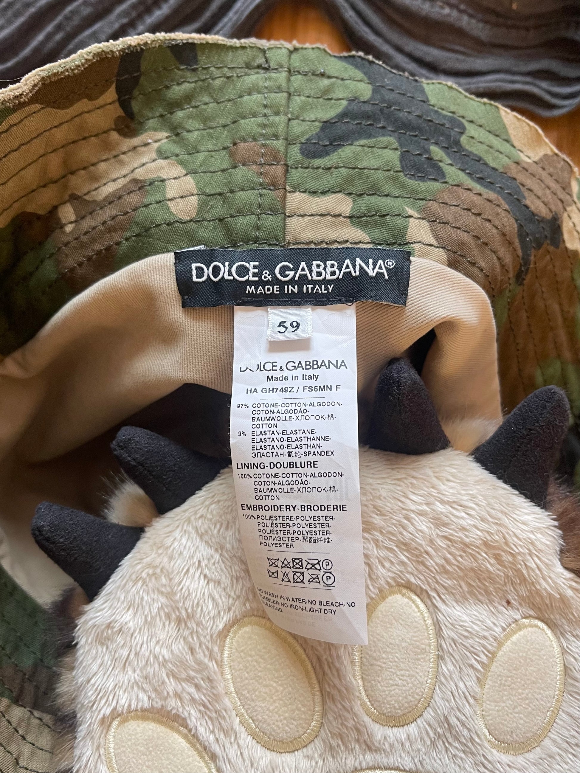 Spring Summer 2017 Dolce & Gabbana Leopard Stuffed Animal Bucket Hat. Comes with a little homie attached. Distressing runs all along the brim and panelling. In perfect overall condition, one size fits most.