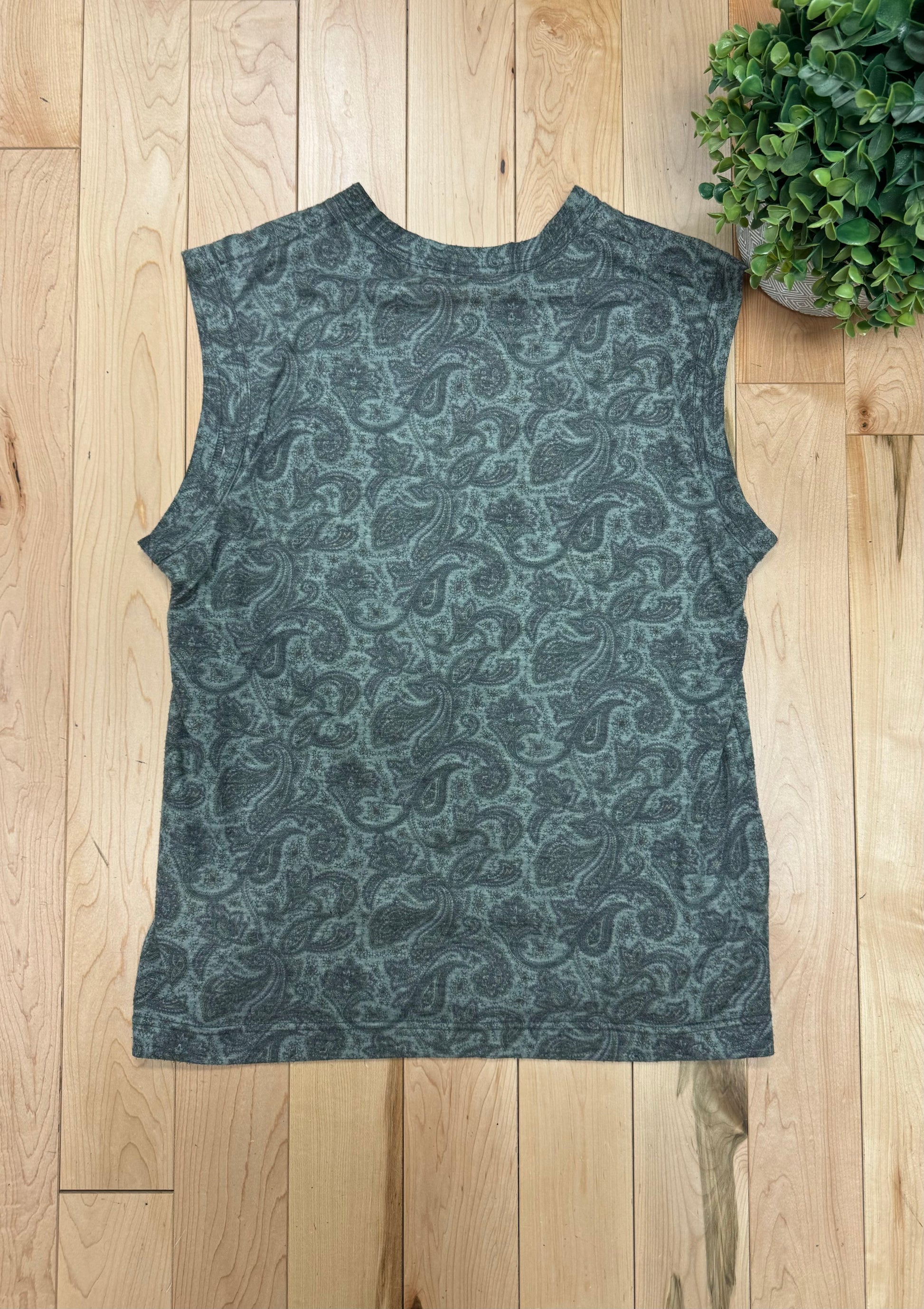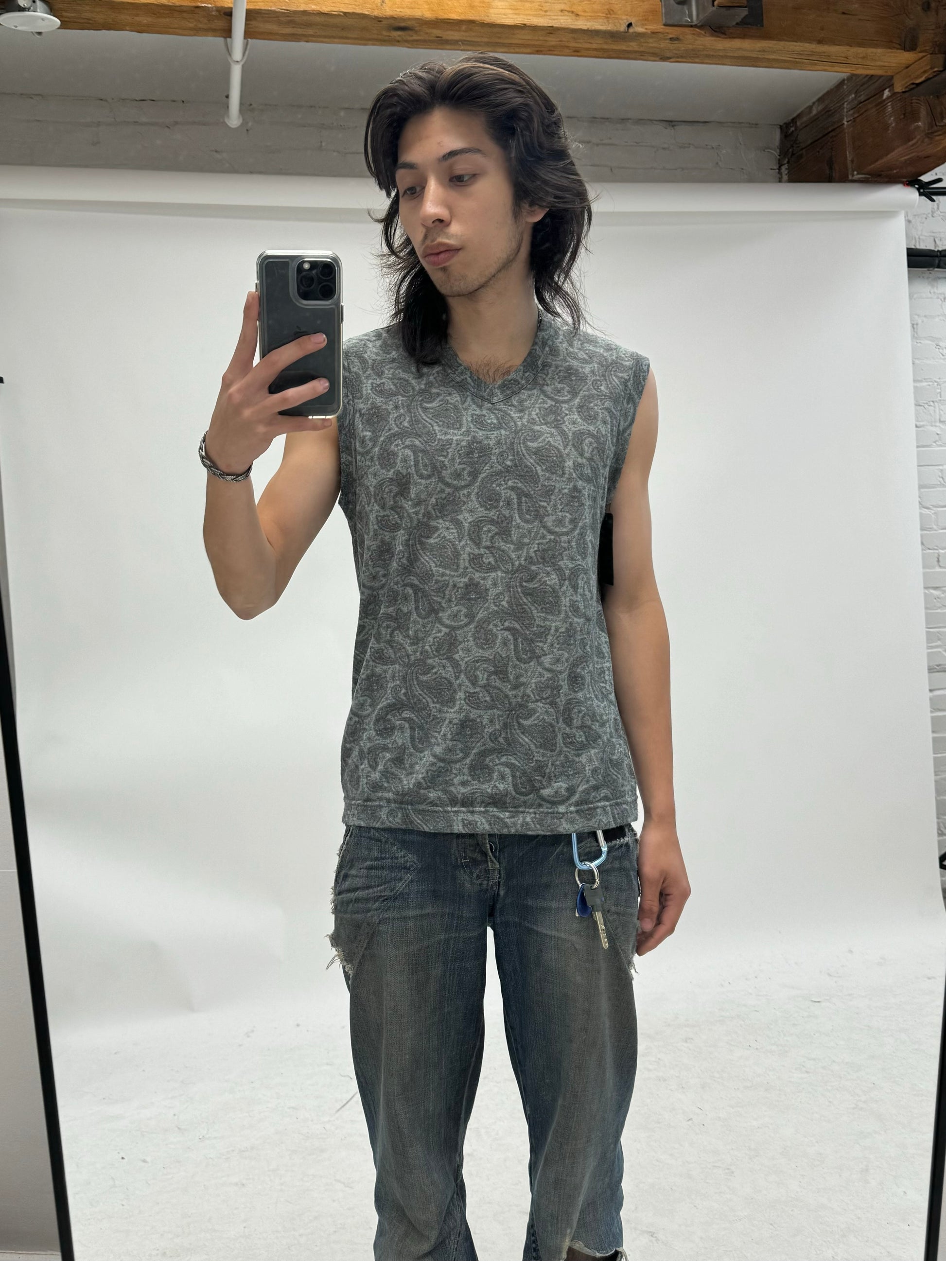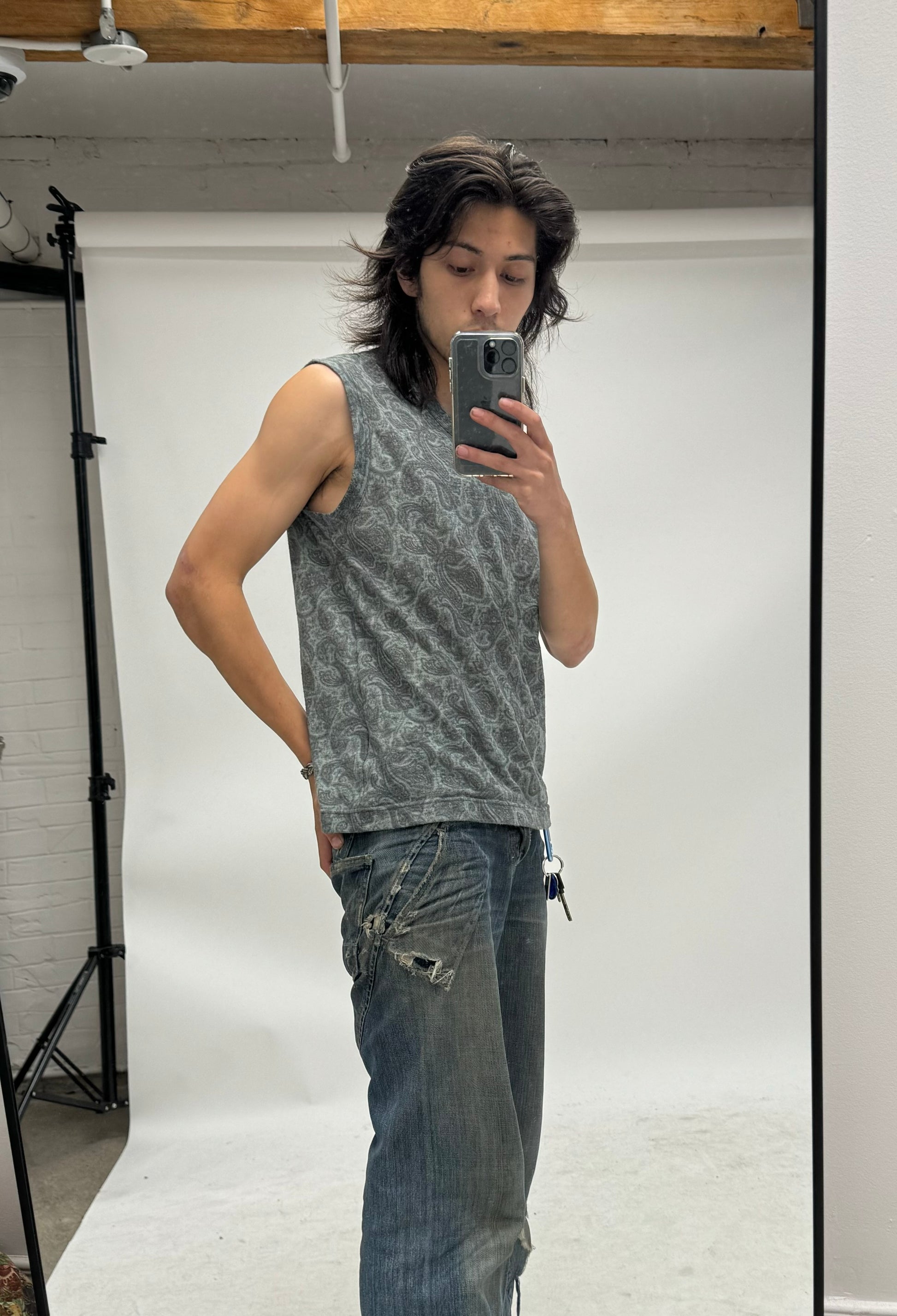 For sale is a Spring Summer 1996 Comme Des Garçons Homme Plus Paisley Print Tank Top. Coming in a muted blue, this shirt has a full paisley patterned print that runs throughout. Coming in a size large this piece is in pristine overall condition with no flaws. Here is the opportunity to purchase a gorgeous summer piece from Comme Des Garçons Homme Plus.