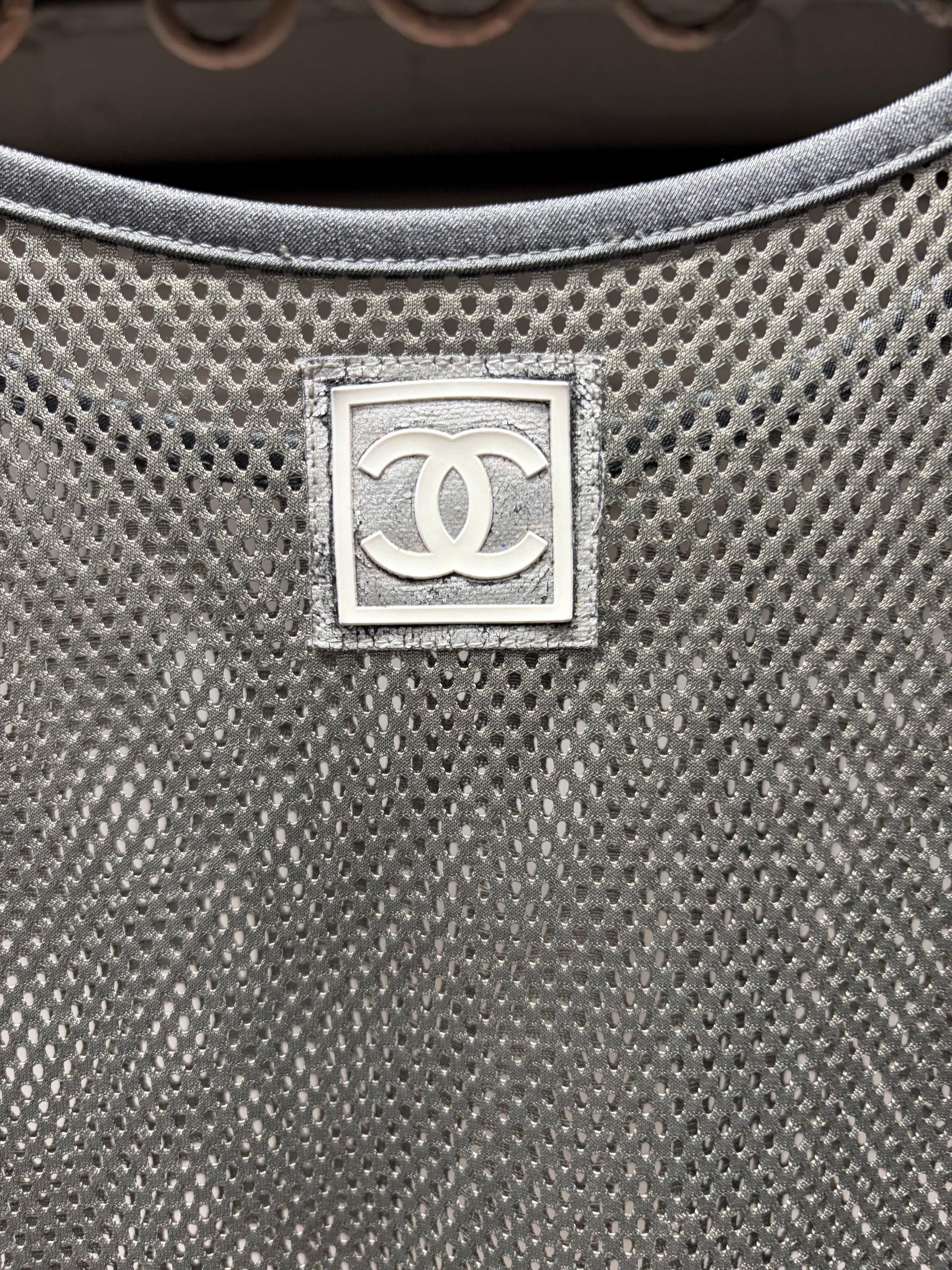 SS2003 Chanel ‘Identification’ Grey Mesh Basketball Jersey Sleeveless Top