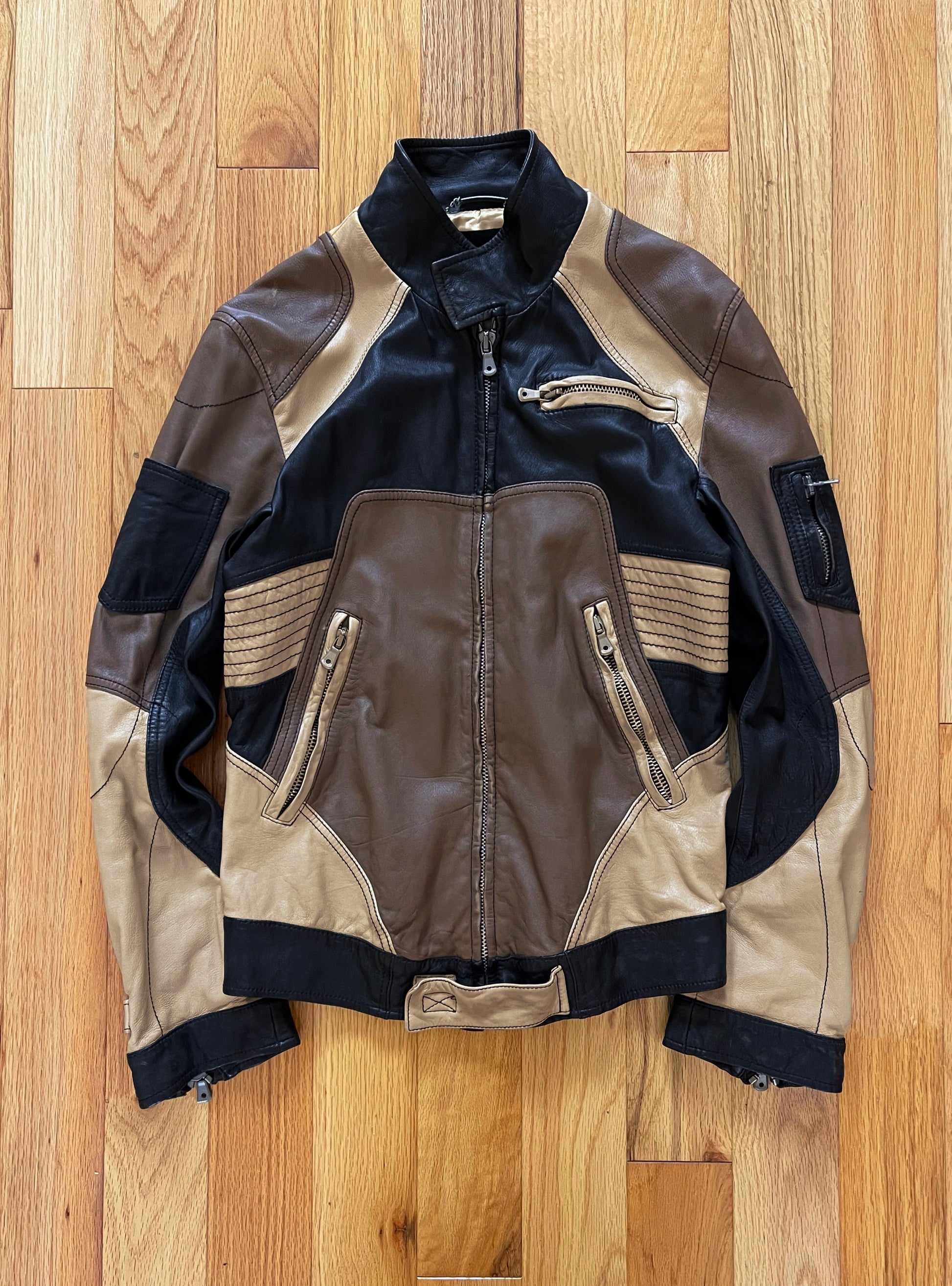 (FOR SALE) A Spring Summer 2004 Dolce & Gabbana Panelled Calfskin Leather Moto-Jacket