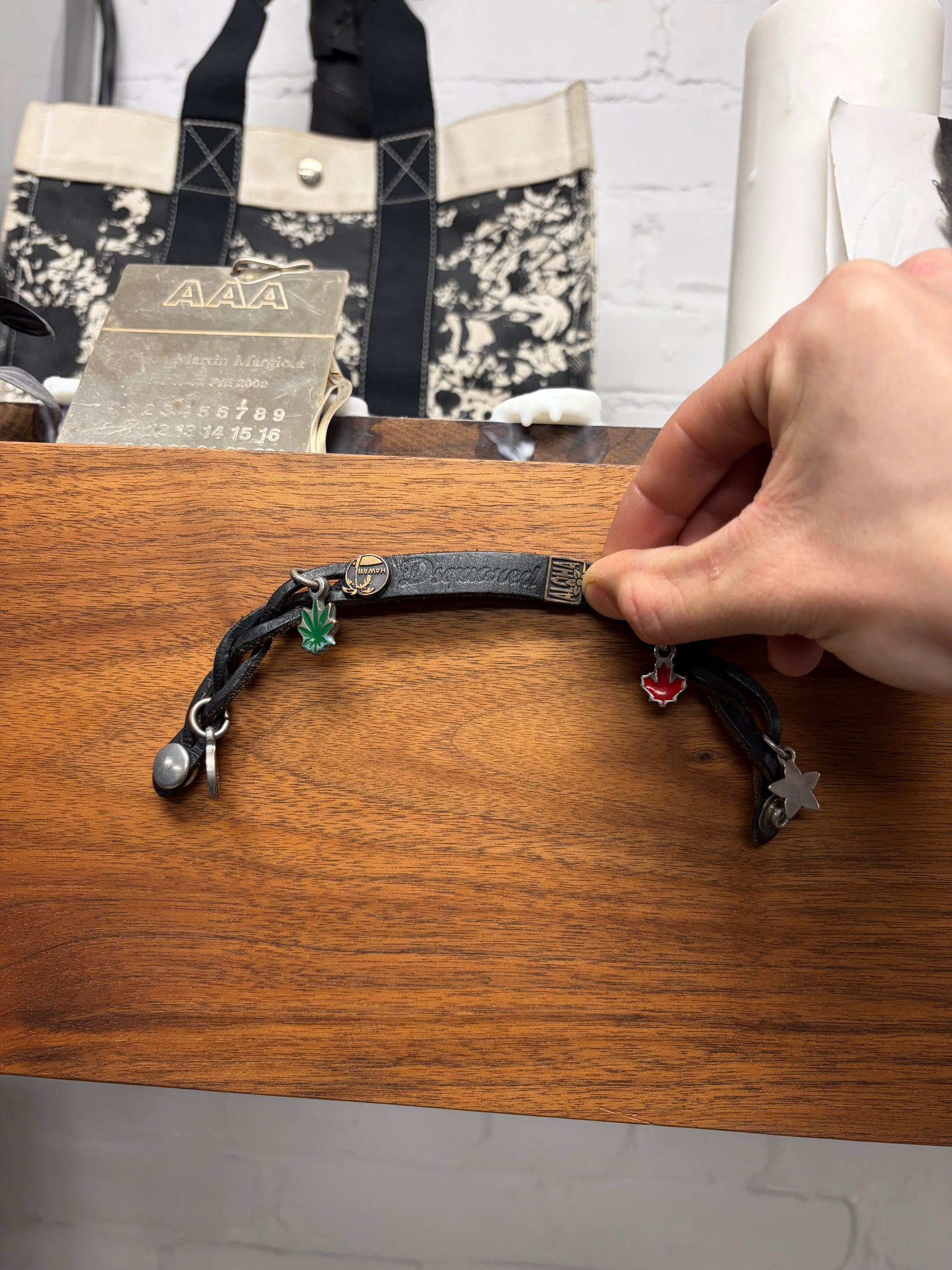 SS2005 Dsquared2 ‘Weed Charm’ Braided Leather Bracelet