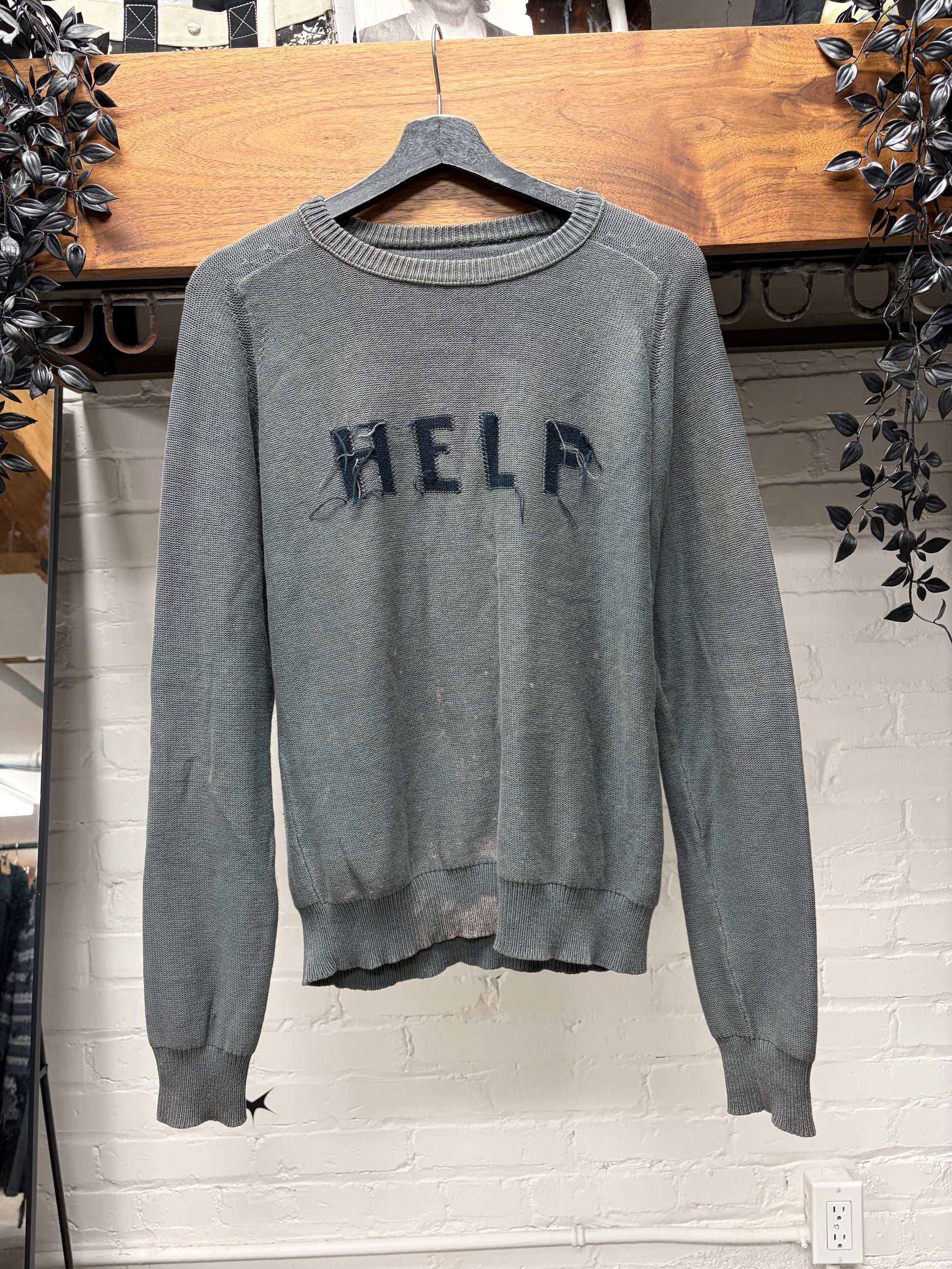 For sale is a SS2006 Maison Martin Margiela ‘Help’ Distressed Grey Knitted Sweater