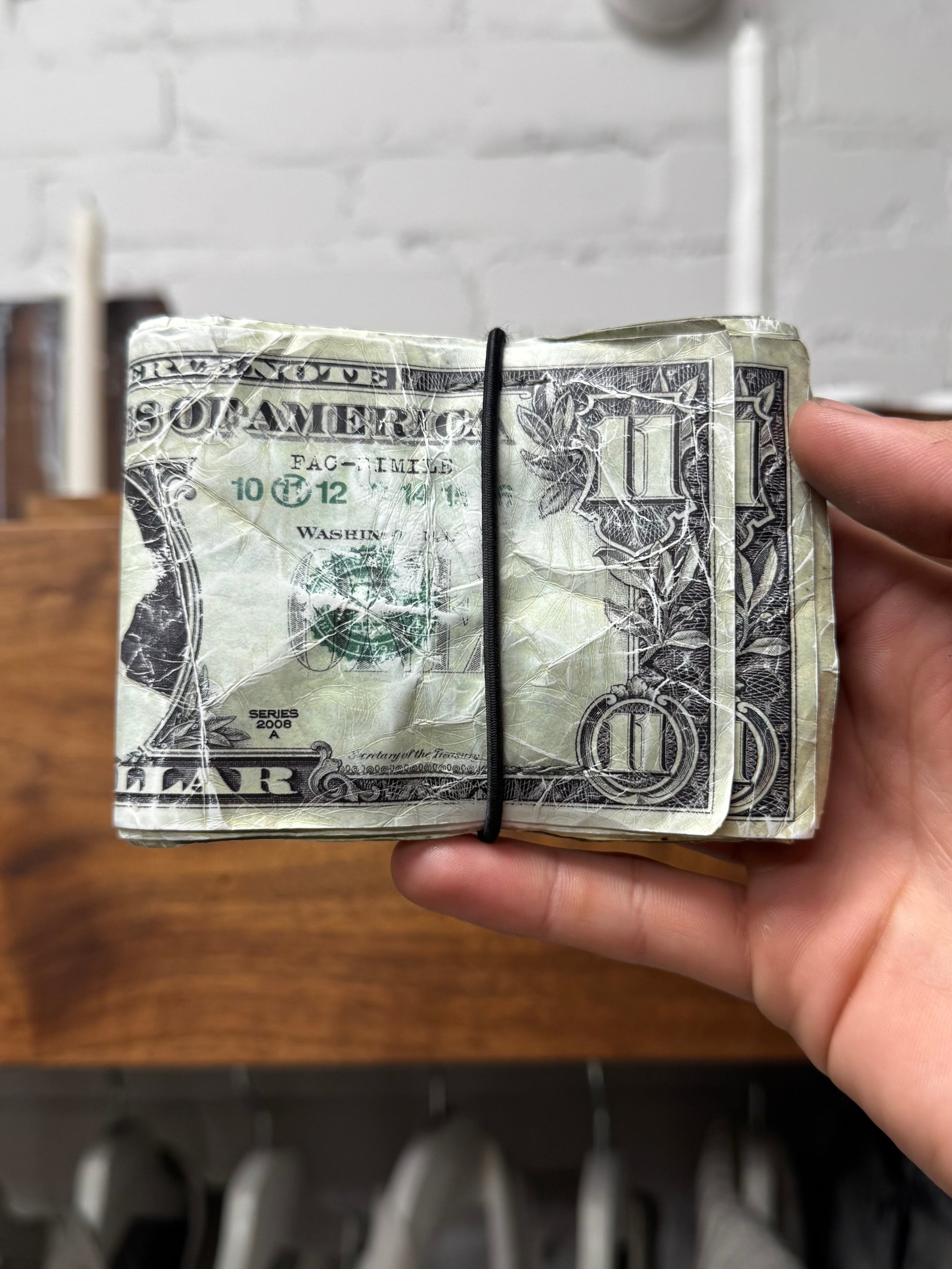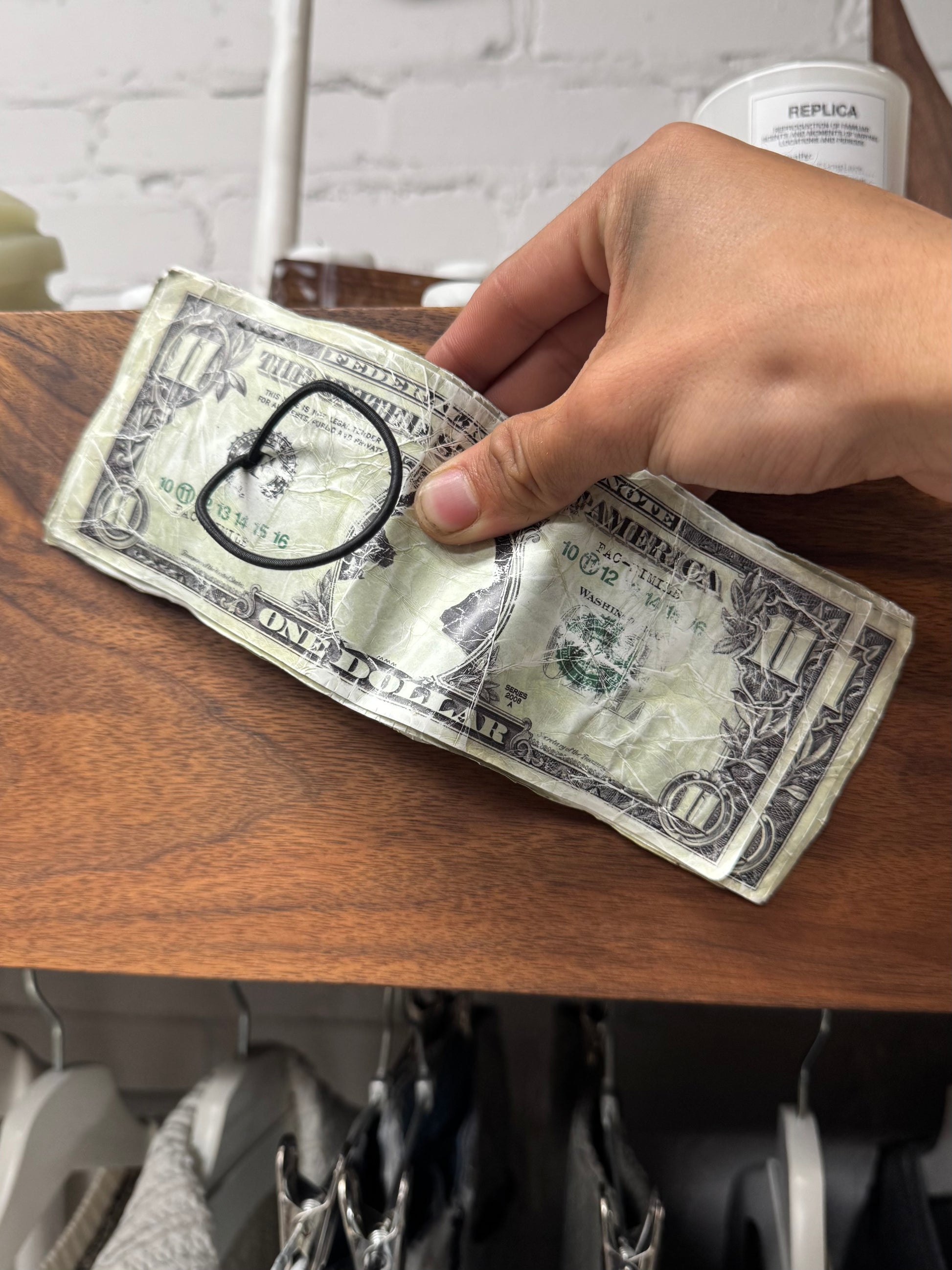 -one of the most iconic Margiela pieces of all time, the infamous 11 dollar bill wallet. American currency iteration, which is the most sought after of the few variations. Well preserved and kept in great overall condition throughout the years.