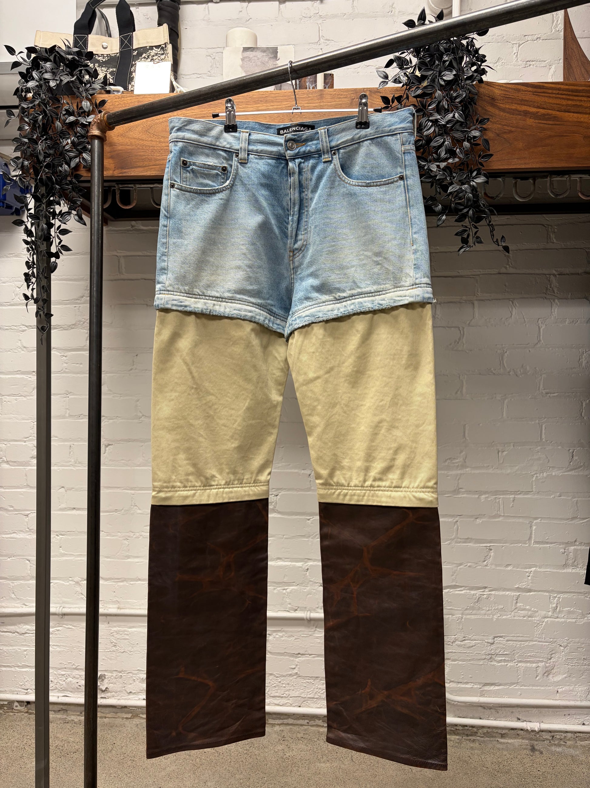 SS2018 Balenciaga Runway ‘Convertible’ 3/1 Zip Leather/Denim Pants