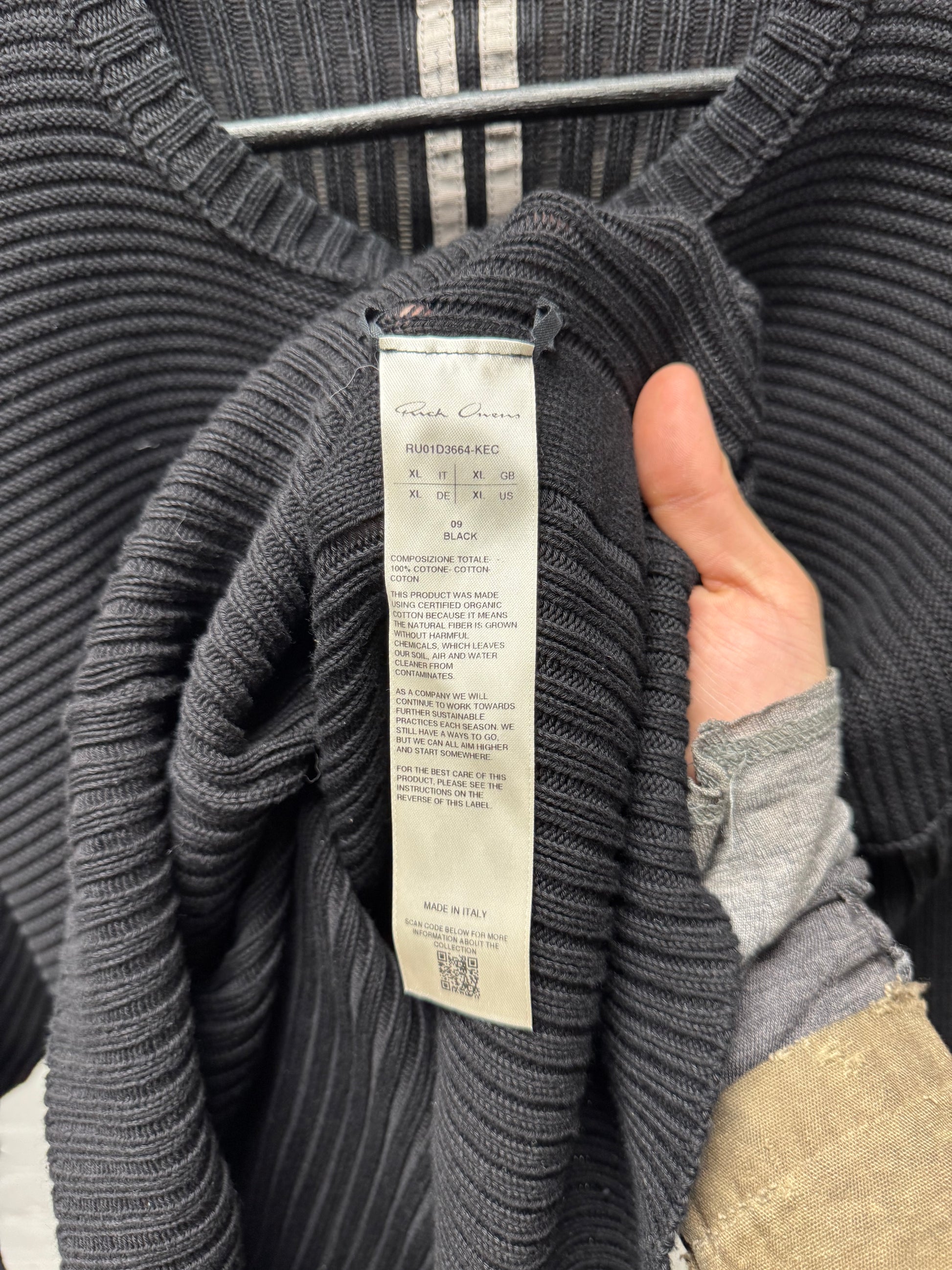 For sale is a SS2024 Rick Owens ‘Lido’ Ribbed Black Geometric Knit Sweater